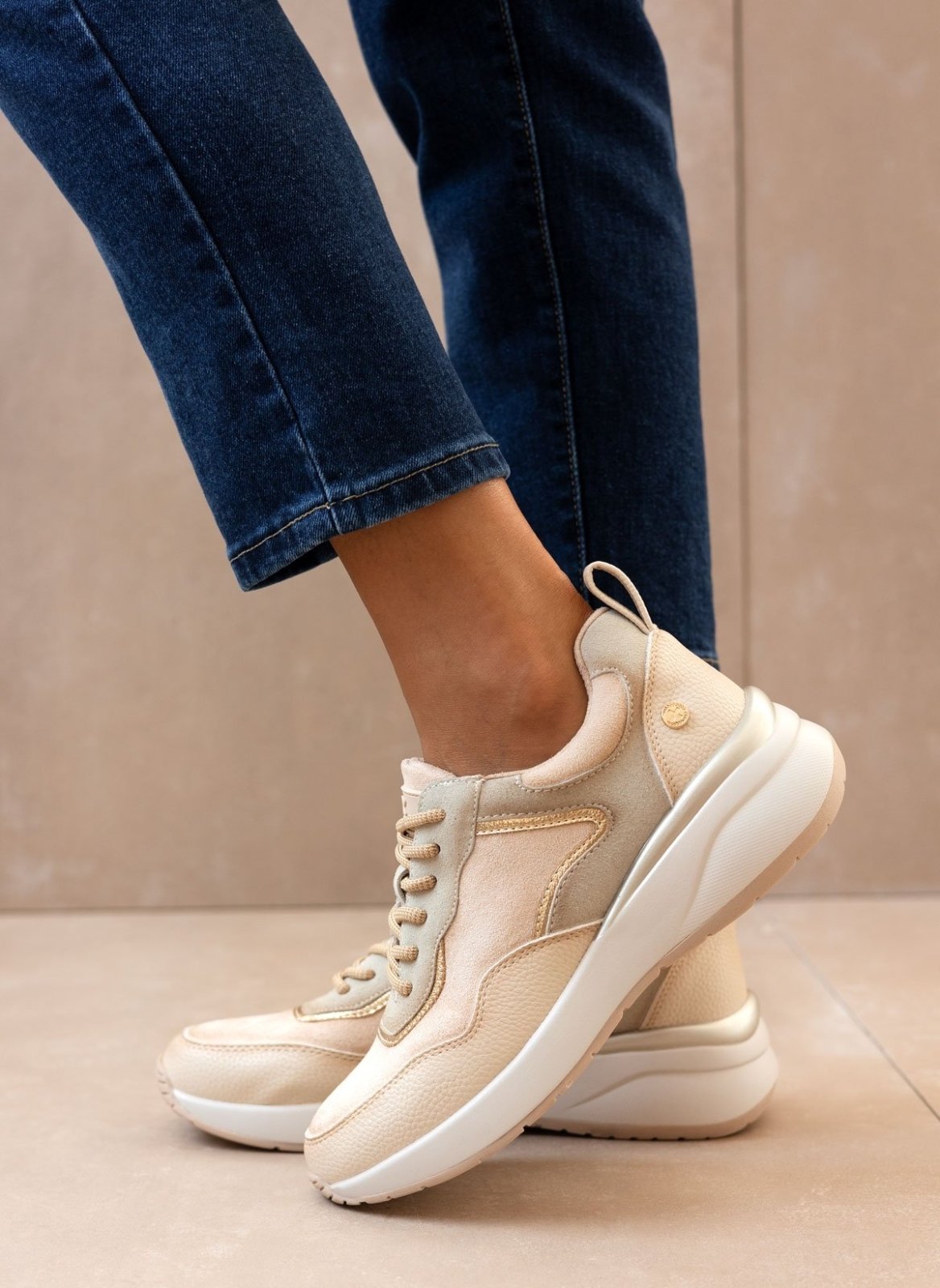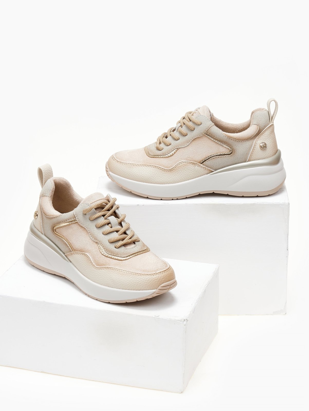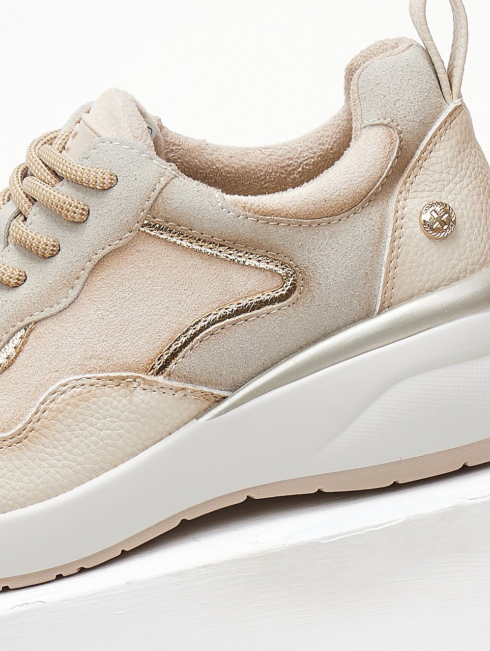 Sneakers chunky Xti. Έχουν κορδόνια. Συνδυάζουν τεχνόδερμα και suede υλικό. Μεταλλικές λεπτομέρειες. Comfort μαλακός πάτος με τεχνολογία Biotech Memory Foam pro. Peta Vegan Approved.