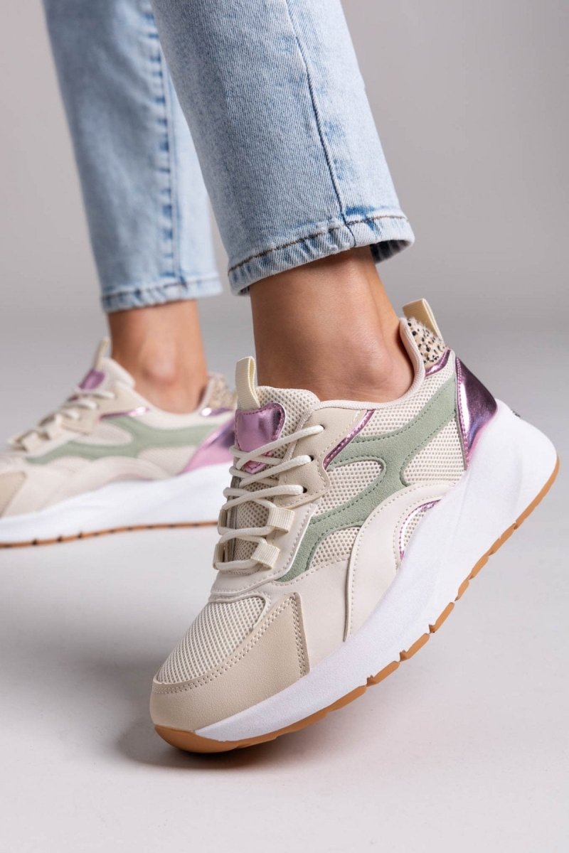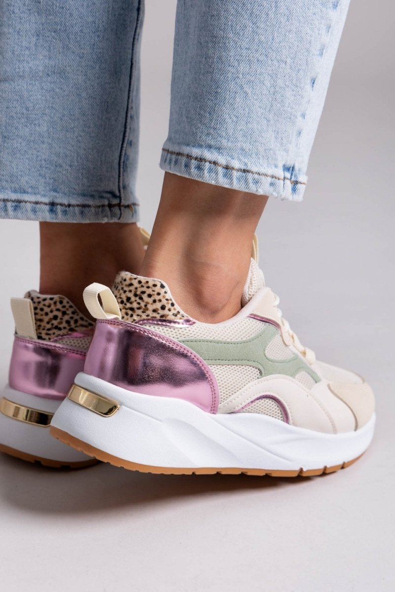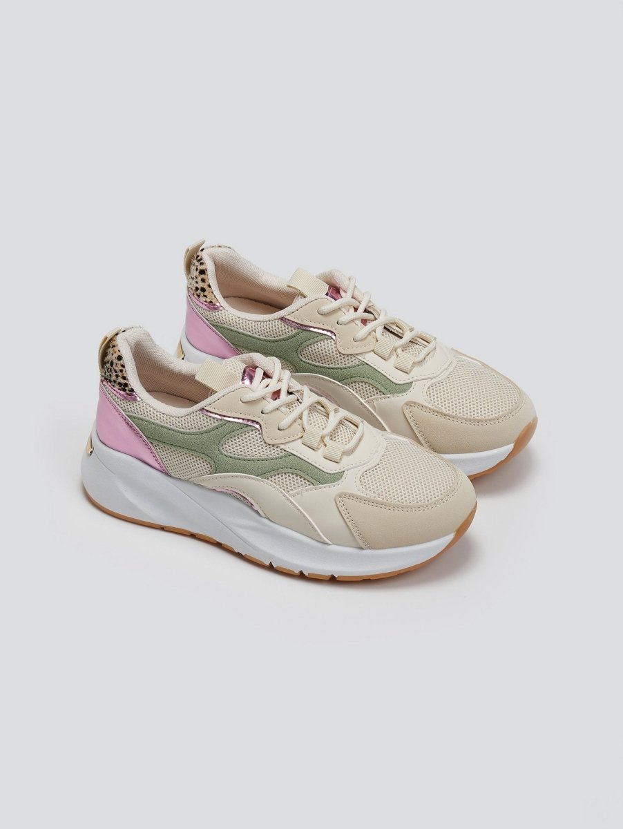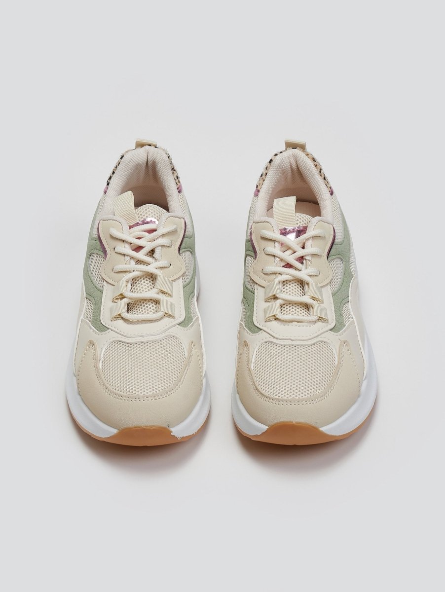 Sneakers chunky με animal print λεπτομέρεια. Συνδυάζουν τεχνόδερμα και ύφασμα.