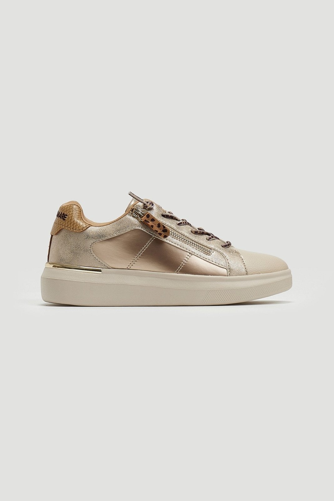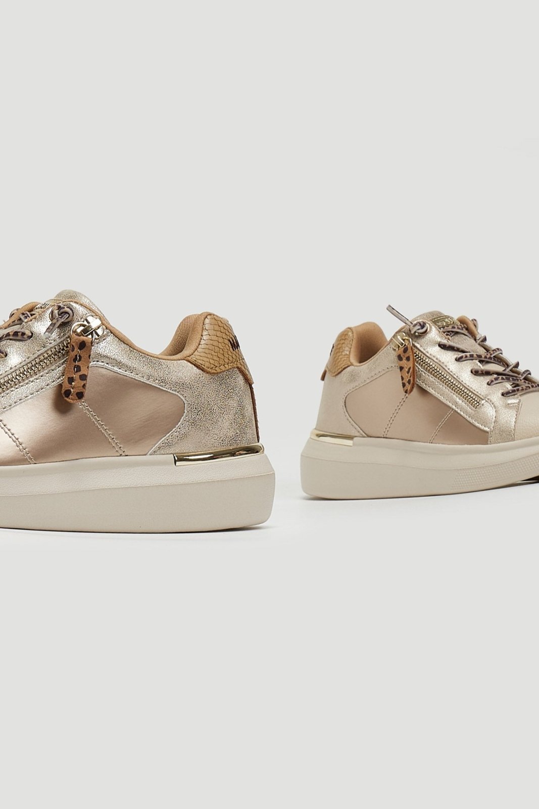 Sneakers με εξωτερικό φερμουάρ Mariamare. Μεταλλικό χρώμα. Κορδόνια με print. Μεταλλική λεπτομέρεια στο πίσω μέρος.