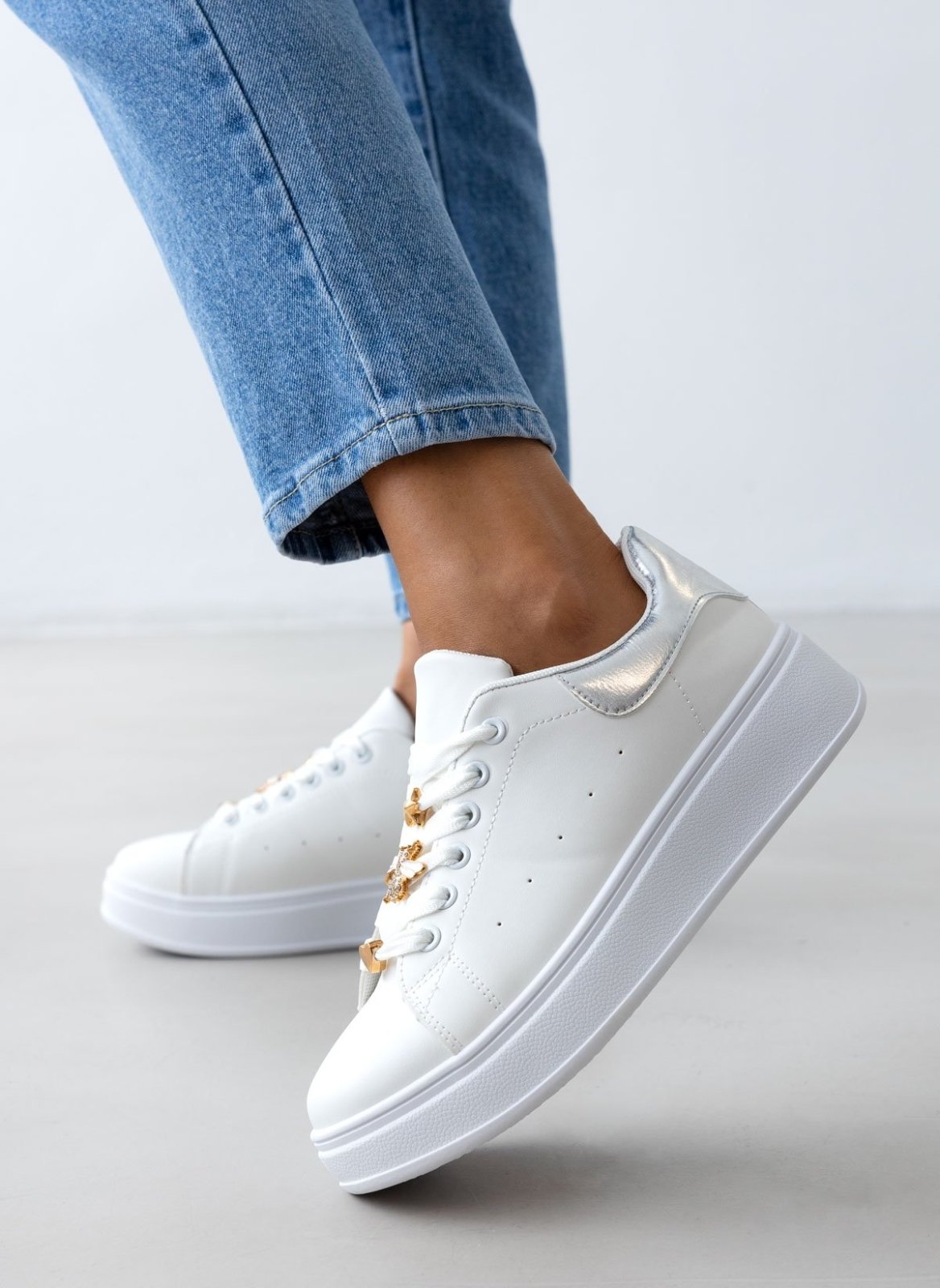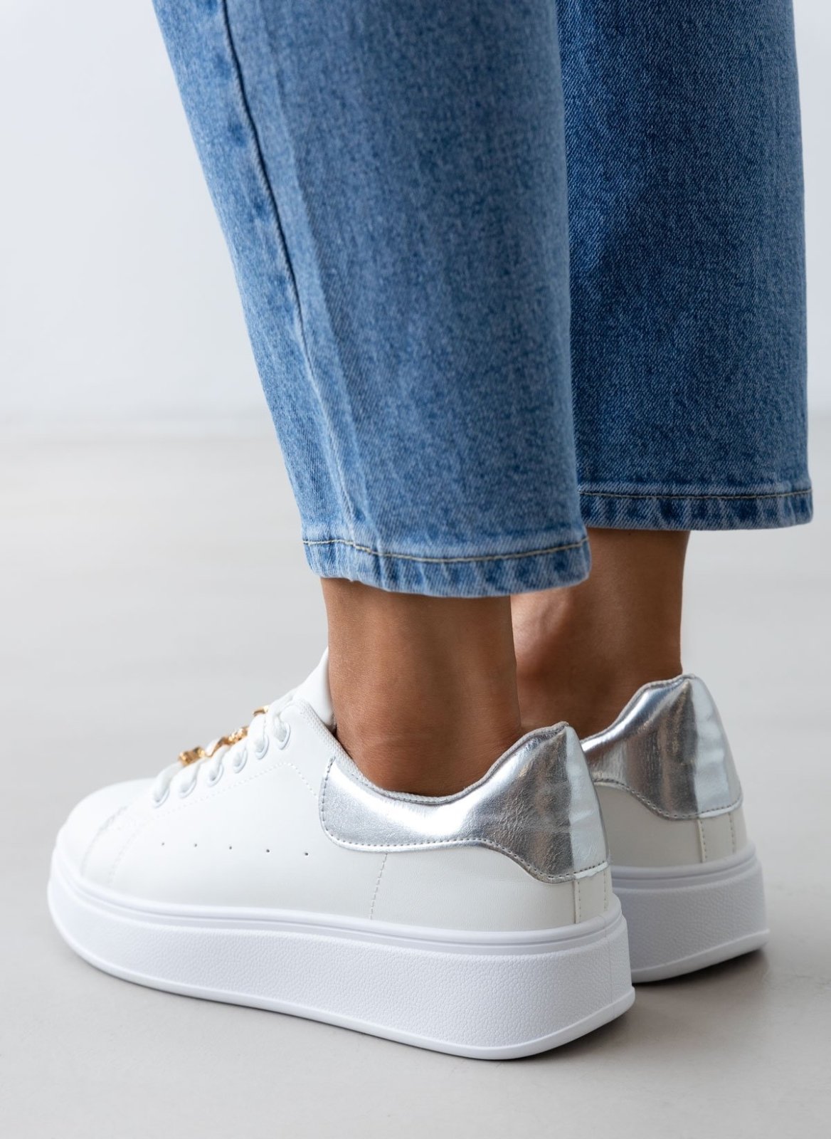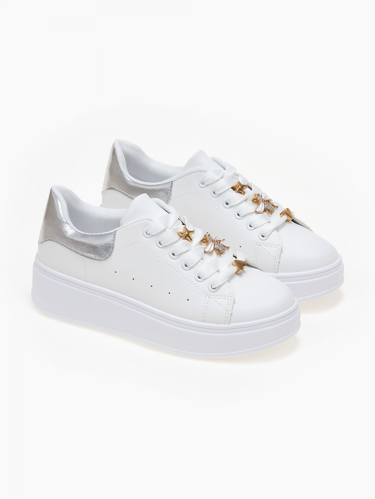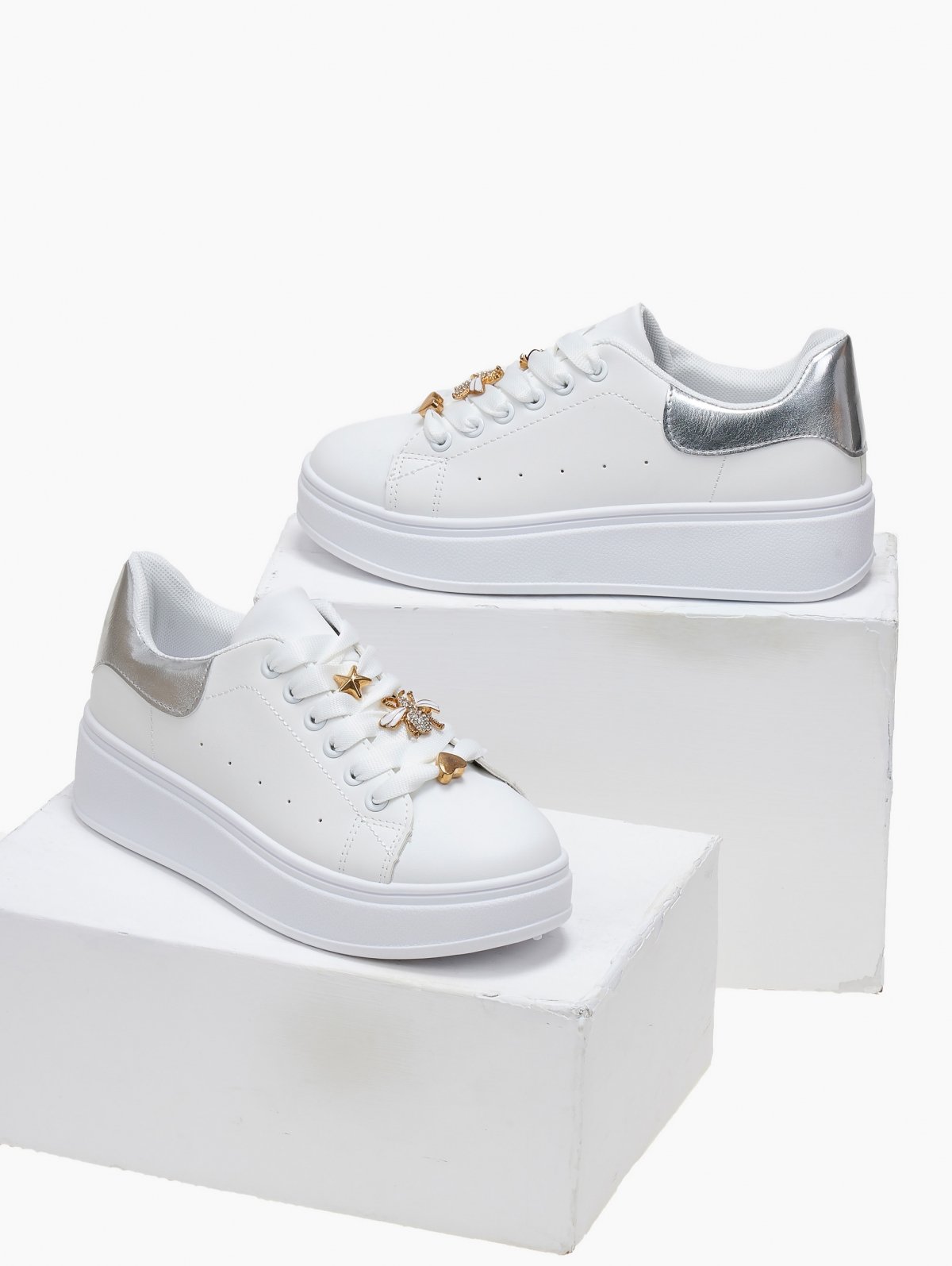 Sneakers flatforms με μεταλλικά στοιχεία - Ασημί