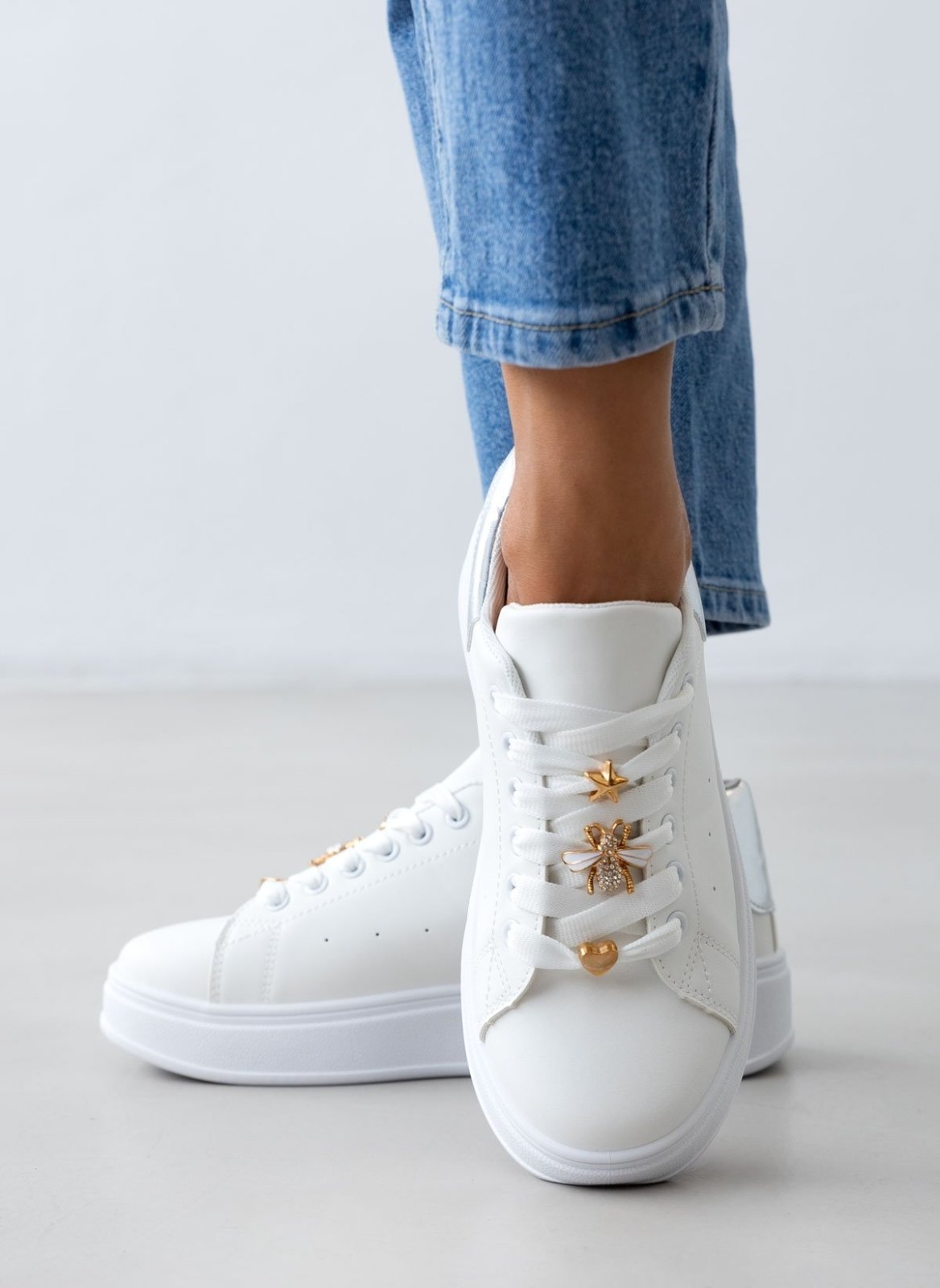 Ανακαλύψτε τα μοντέρνα και άνετα γυναικεία sneakers flatforms με μεταλλικά στοιχεία, ιδανικά για να προσθέσετε μια κομψή πινελιά στο καθημερινό σας στυλ. Αυτά τα sneakers διαθέτουν κομψές λεπτομέρειες από μεταλλικά στοιχεία που δίνουν μια μοναδική λάμψη και αίσθηση πολυτέλειας. H flatform σόλα παρέχει άνεση και στήριξη καθ' όλη τη διάρκεια της ημέρας, ενώ το απαλό υλικό προσφέρει ανώτερη εφαρμογή και ευχάριστη αίσθηση στο πόδι.