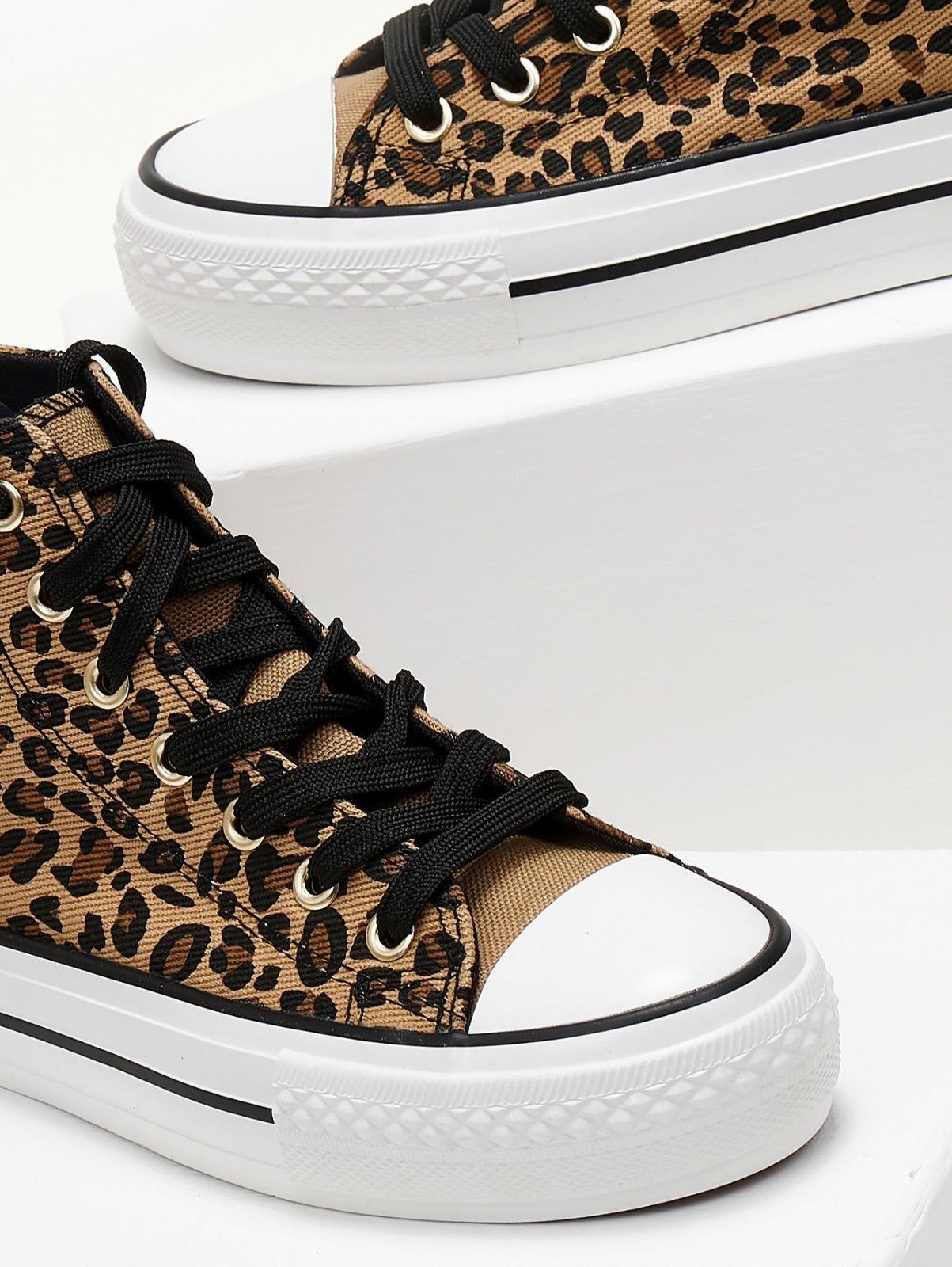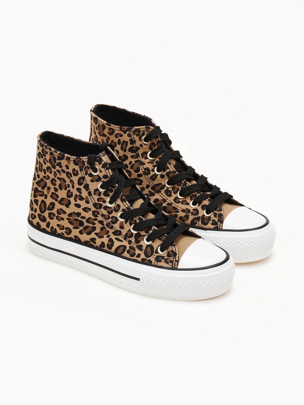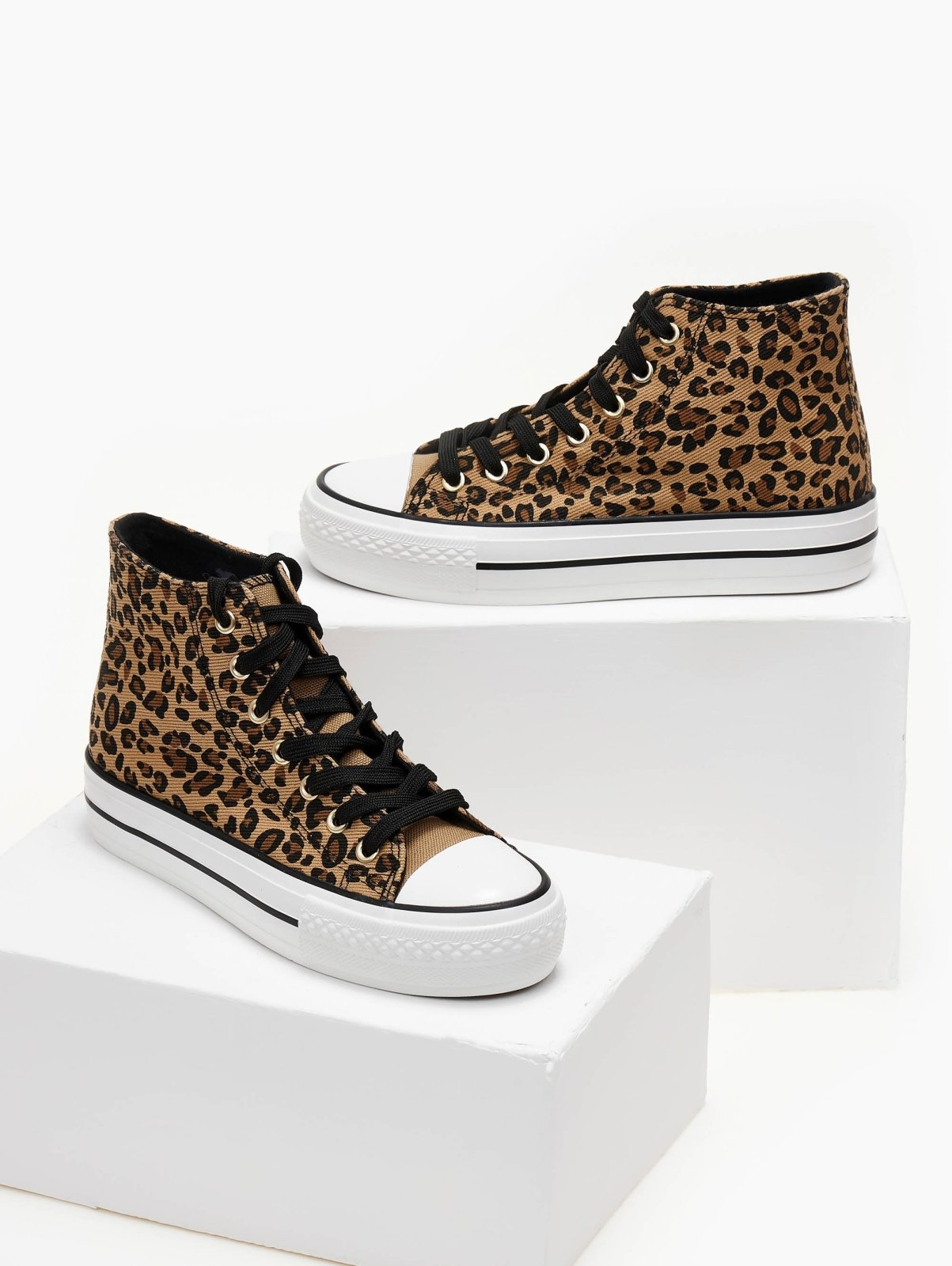 Sneakaers μποτάκια πάνινα με κορδόνια. Έχουν ψηλή σόλα με ρίγα.