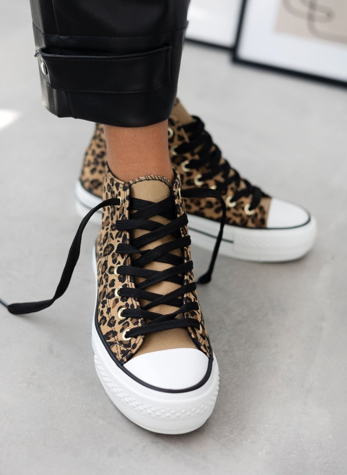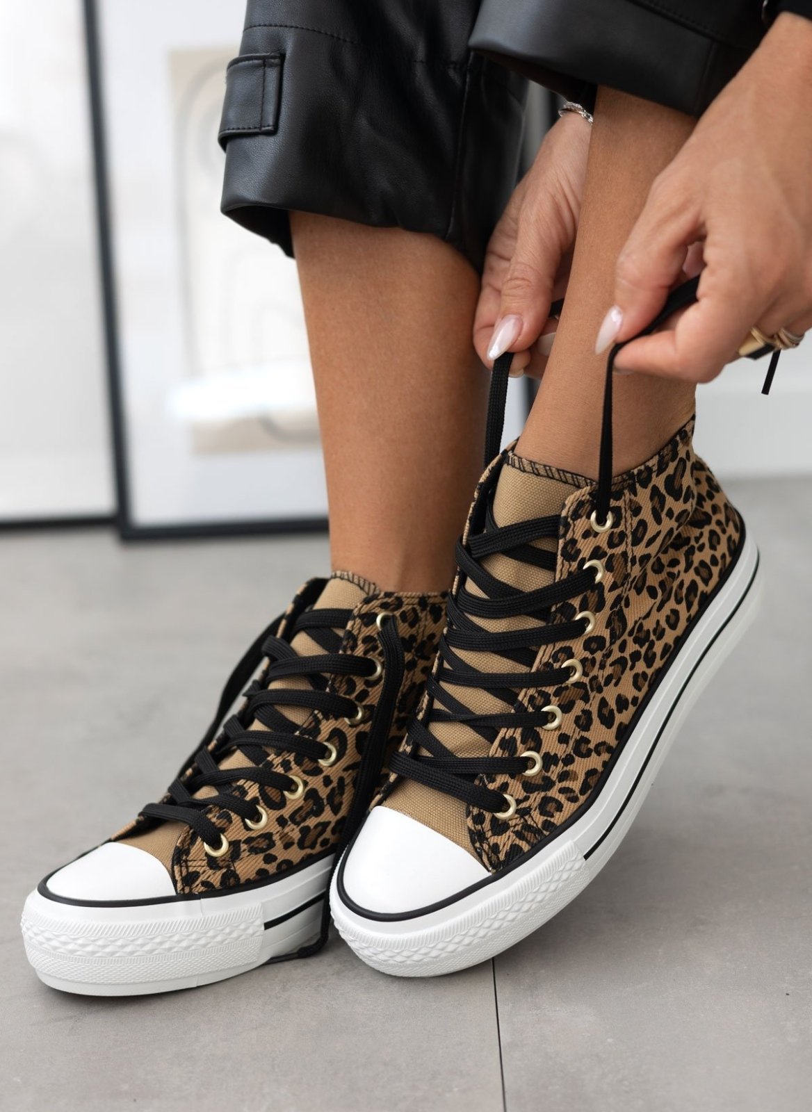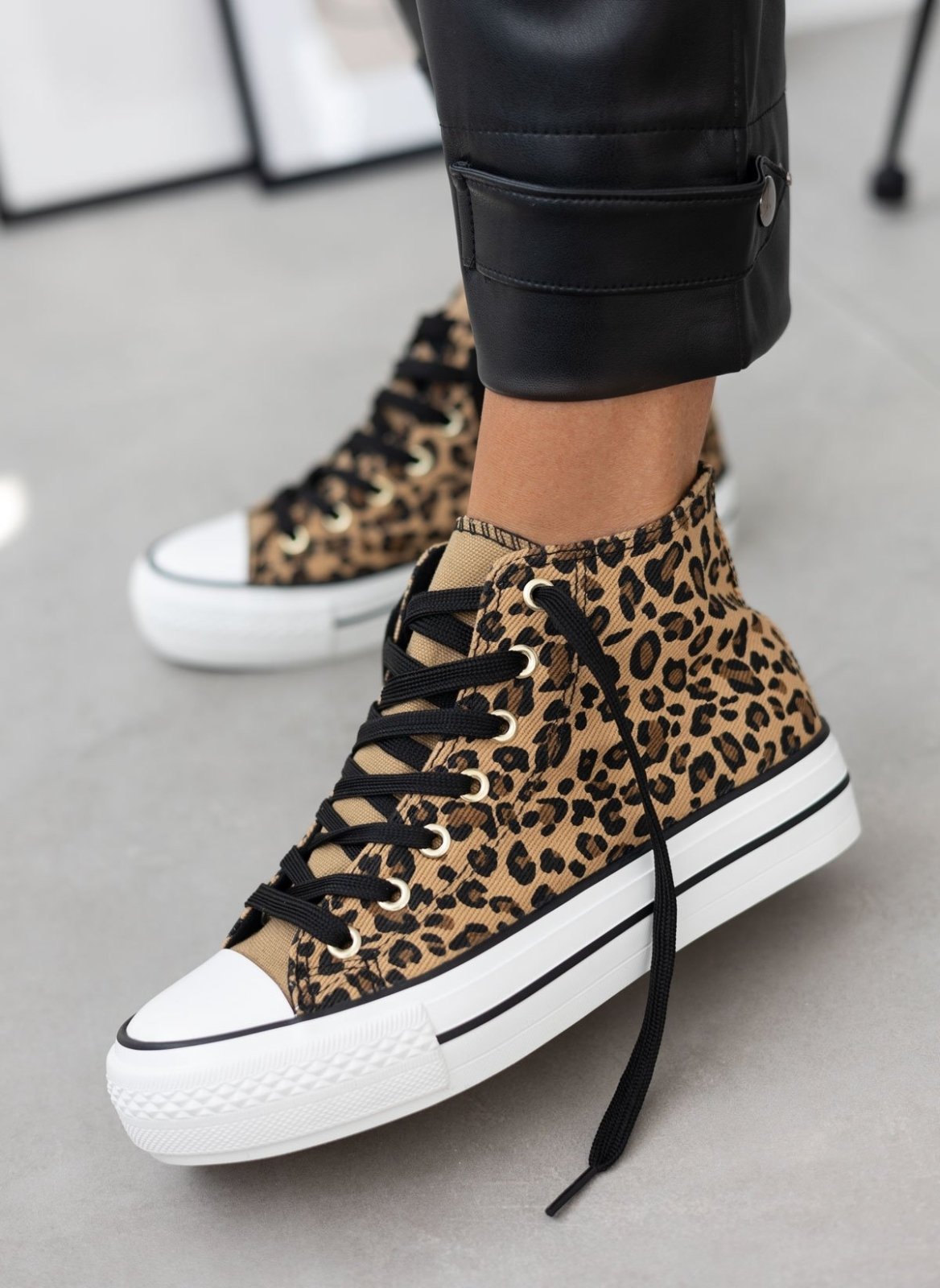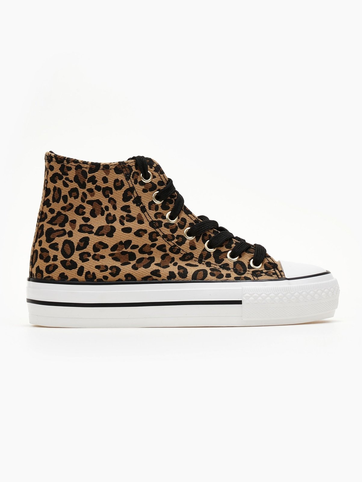 Sneakaers μποτάκια πάνινα με κορδόνια. Έχουν ψηλή σόλα με ρίγα.