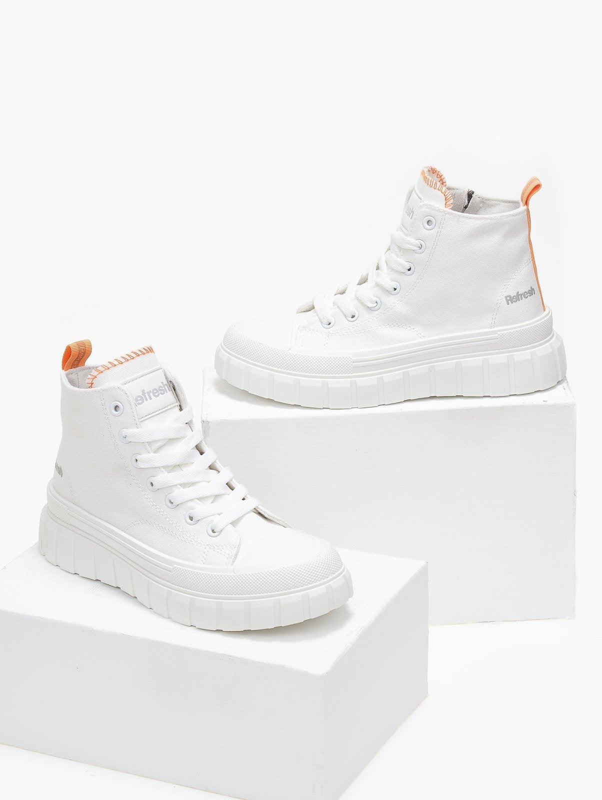 Sneakers μποτάκια πάνινα Refresh. Έχουν λογότυπο στη γλώσσα. Σόλα με σχέδιο. Peta vegan approved.