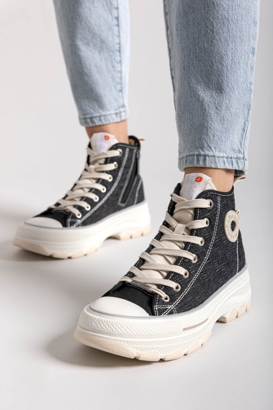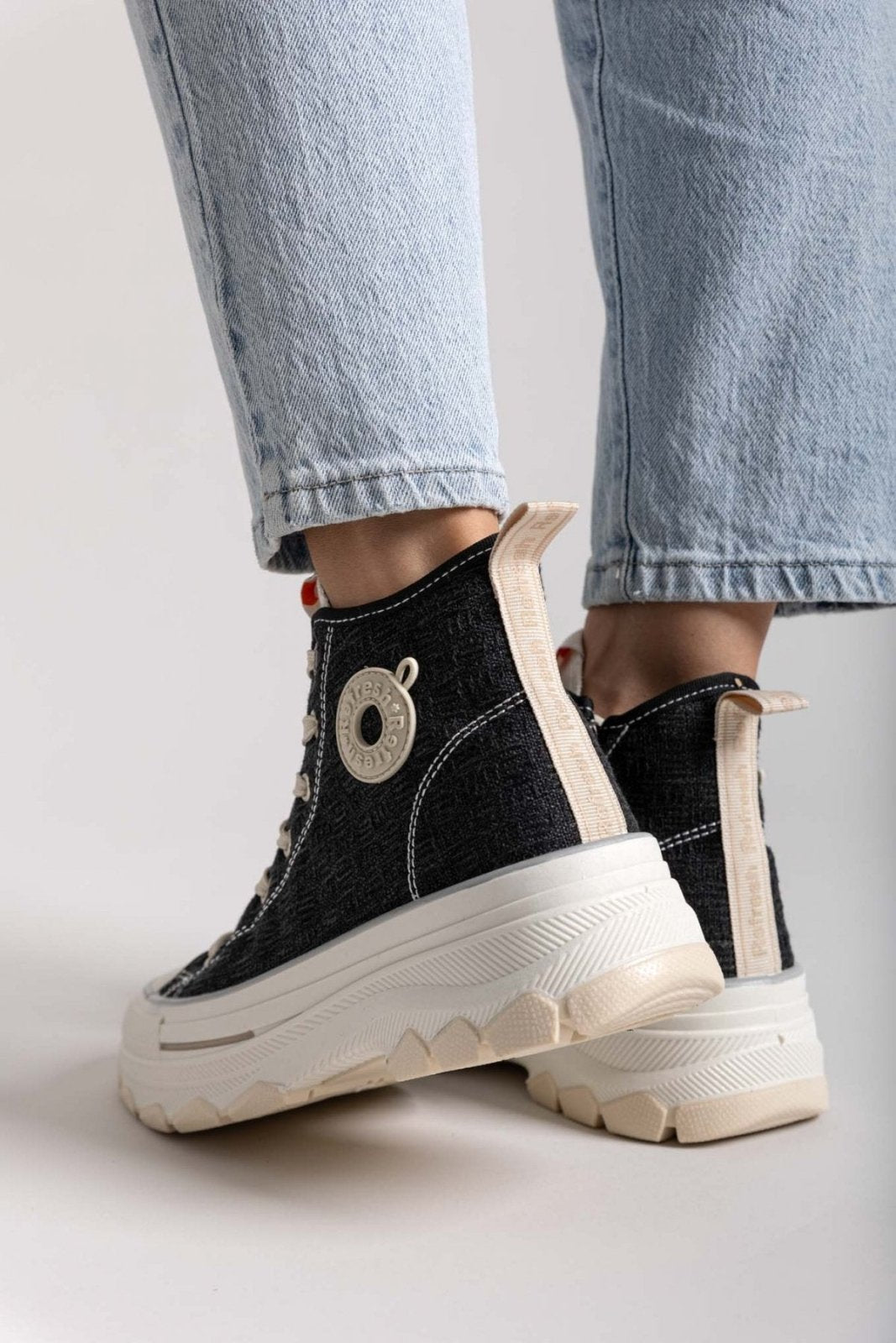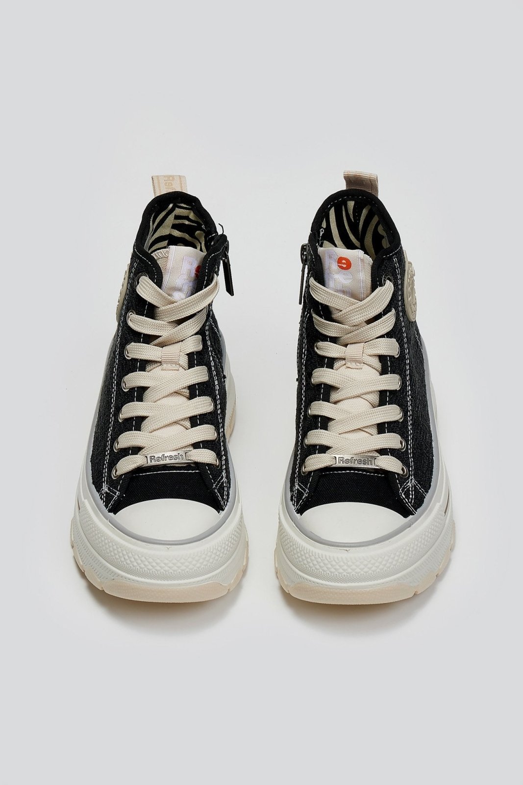 Sneakers μποτάκια πάνινα Refresh. Ύφασμα με ανάγλυφο σχέδιο. Κλείνουν με φερμουάρ στο πλάι. Comfort biotech μαλακός πάτος με memory foam. Peta Vegan approved.