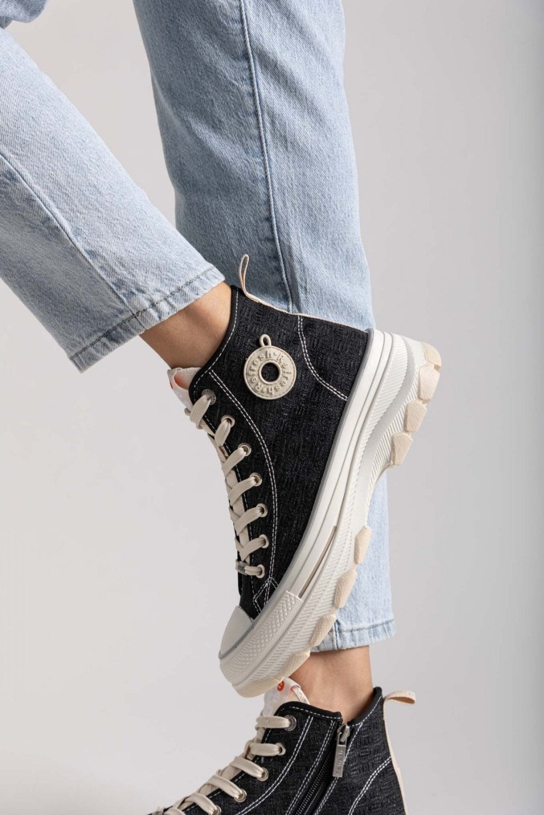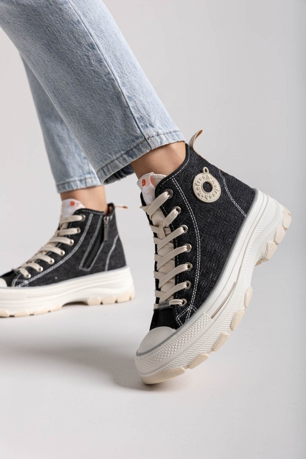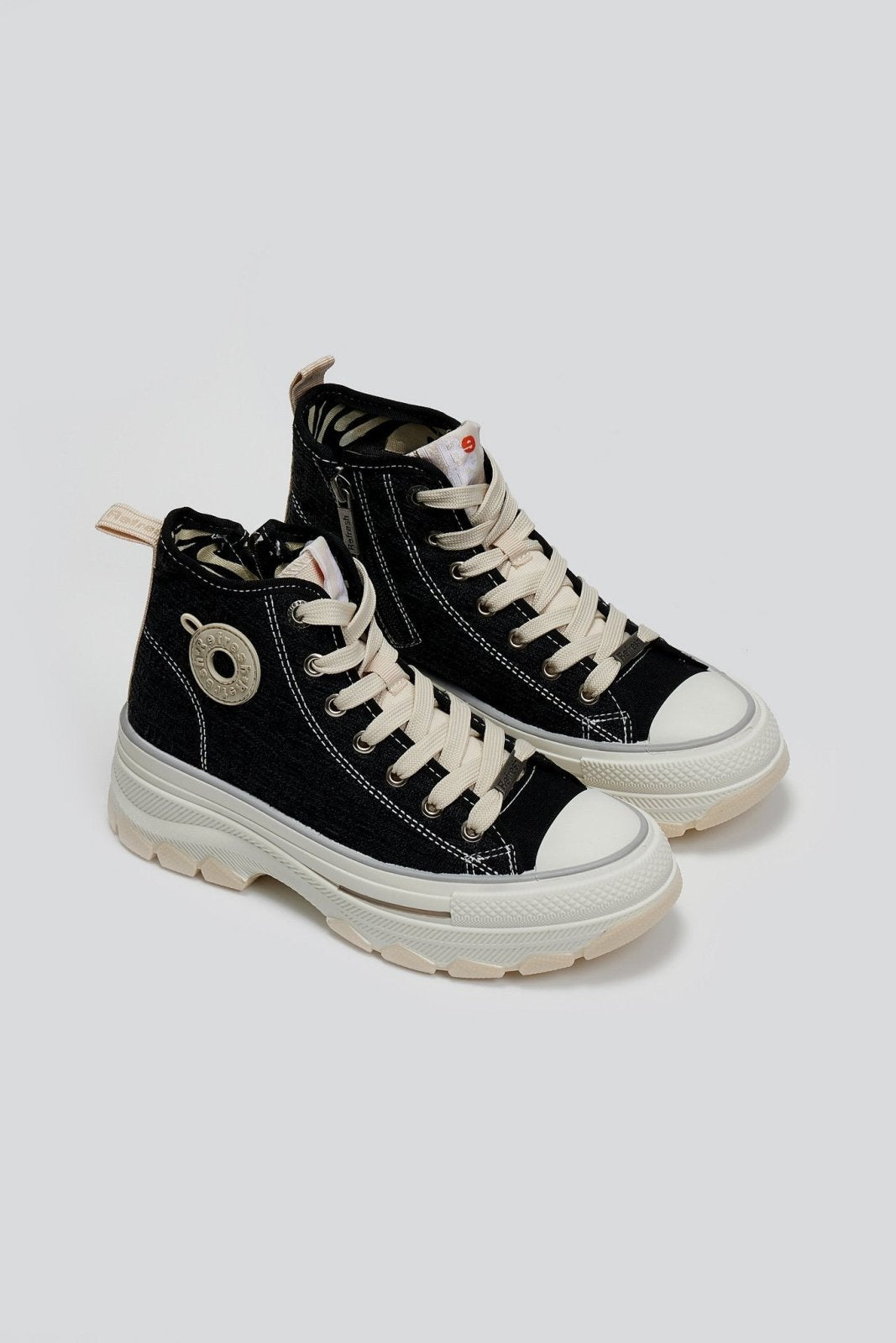 Sneakers μποτάκια πάνινα Refresh. Ύφασμα με ανάγλυφο σχέδιο. Κλείνουν με φερμουάρ στο πλάι. Comfort biotech μαλακός πάτος με memory foam. Peta Vegan approved.
