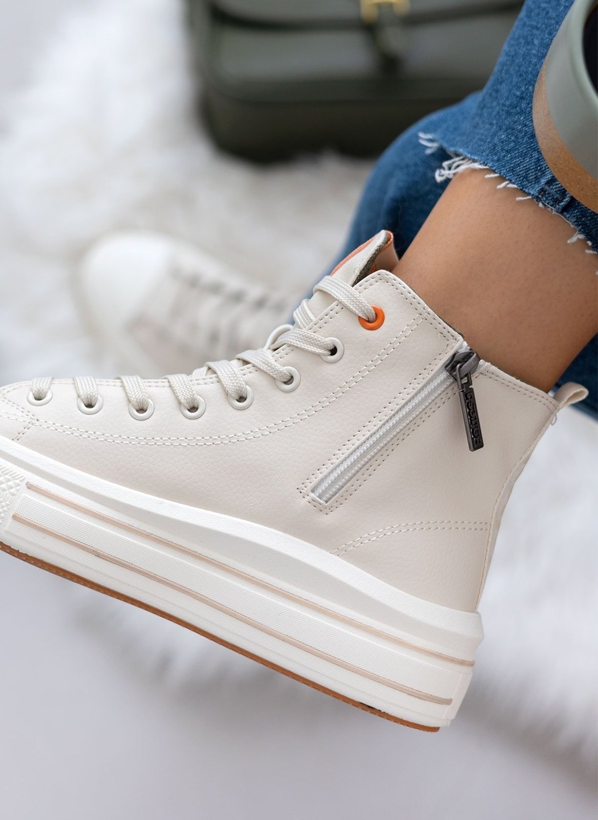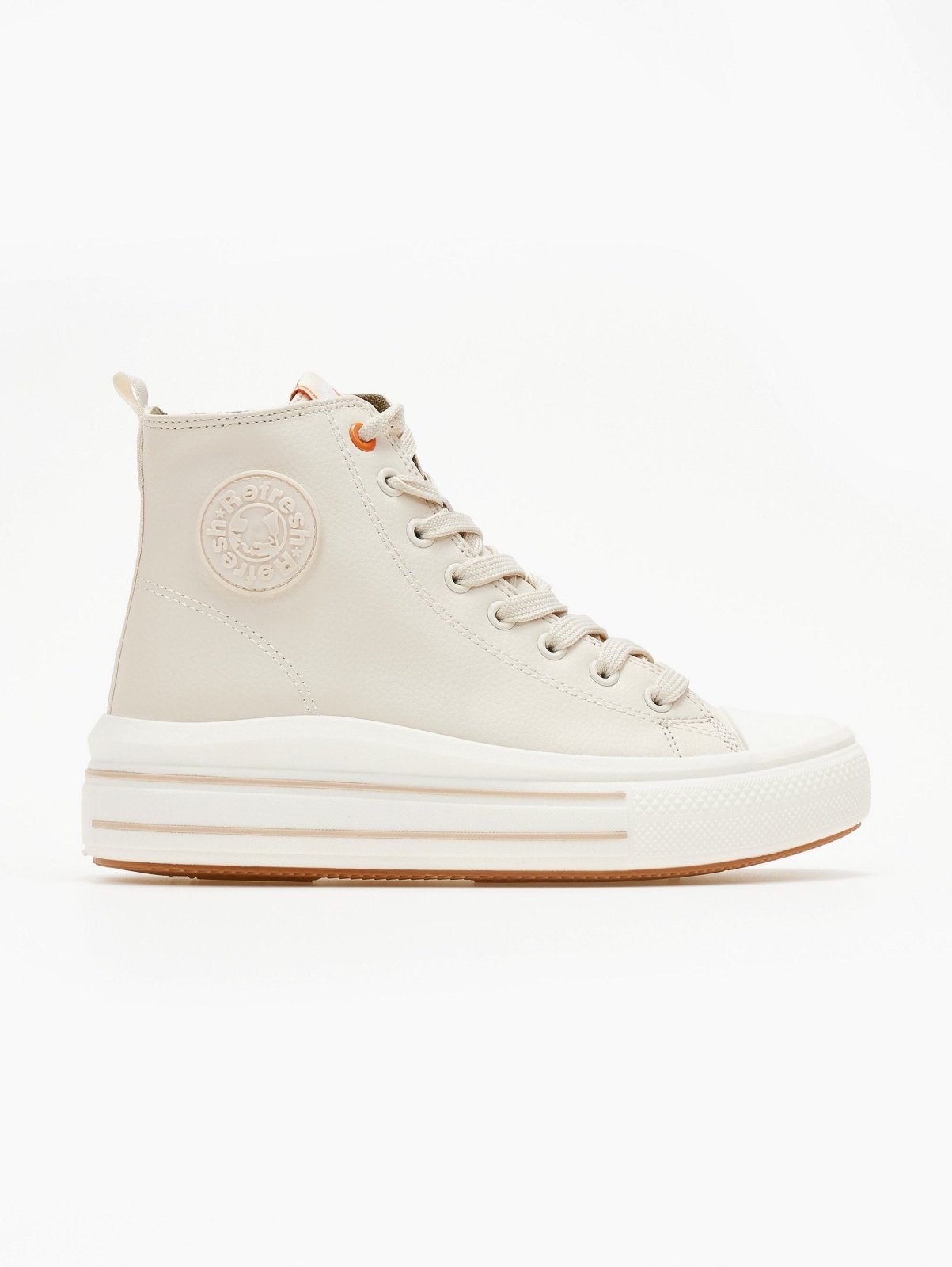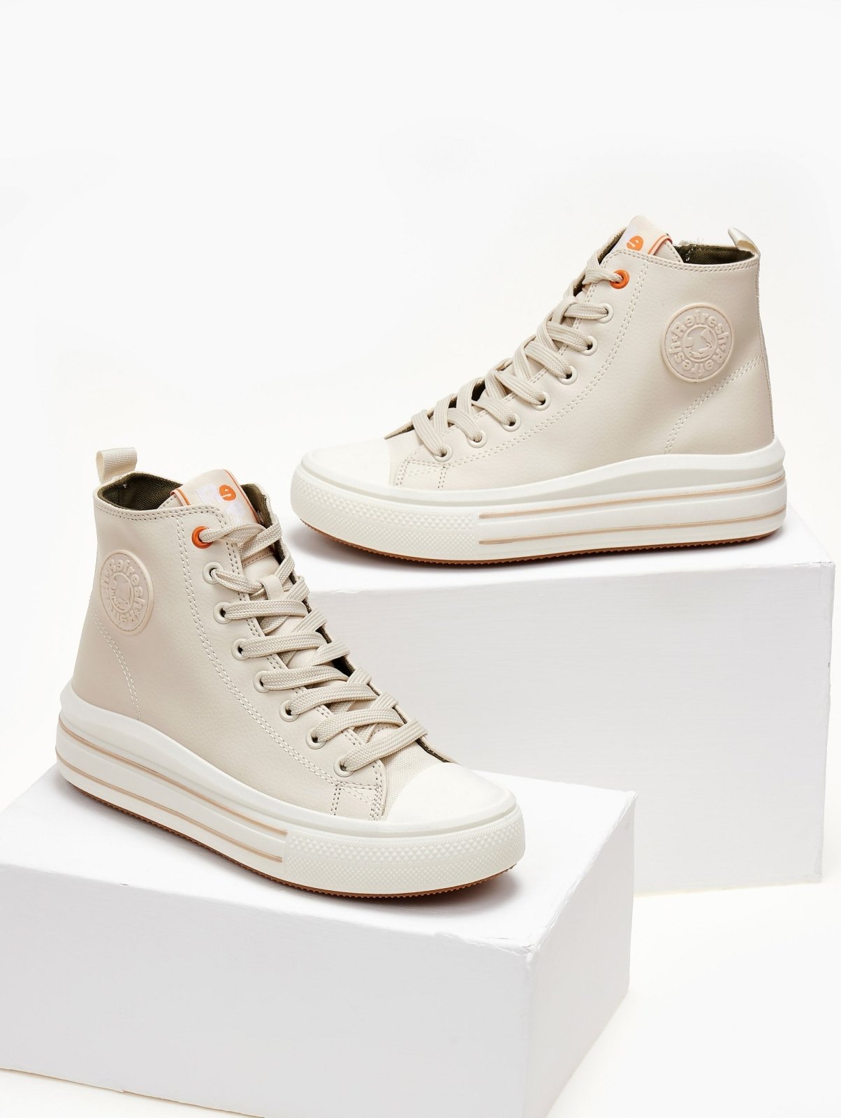 Sneakers μποτάκια Refresh. Έχουν ψηλή σόλα με ρίγες. Φερμουάρ στην εσωτερική τους πλευρά. Θηλάκι στο πίσω μέρος. Comfort μαλακός πάτος με memory foam. Peta Vegan approved.