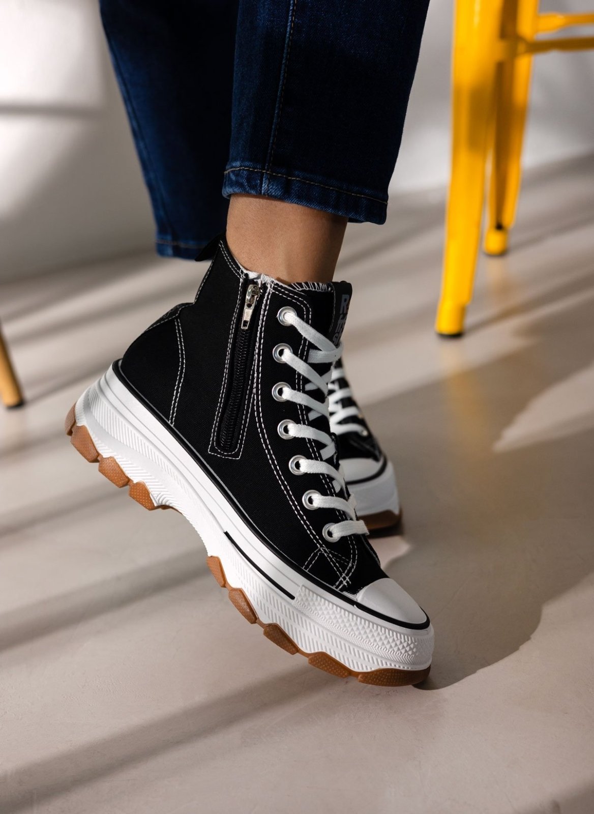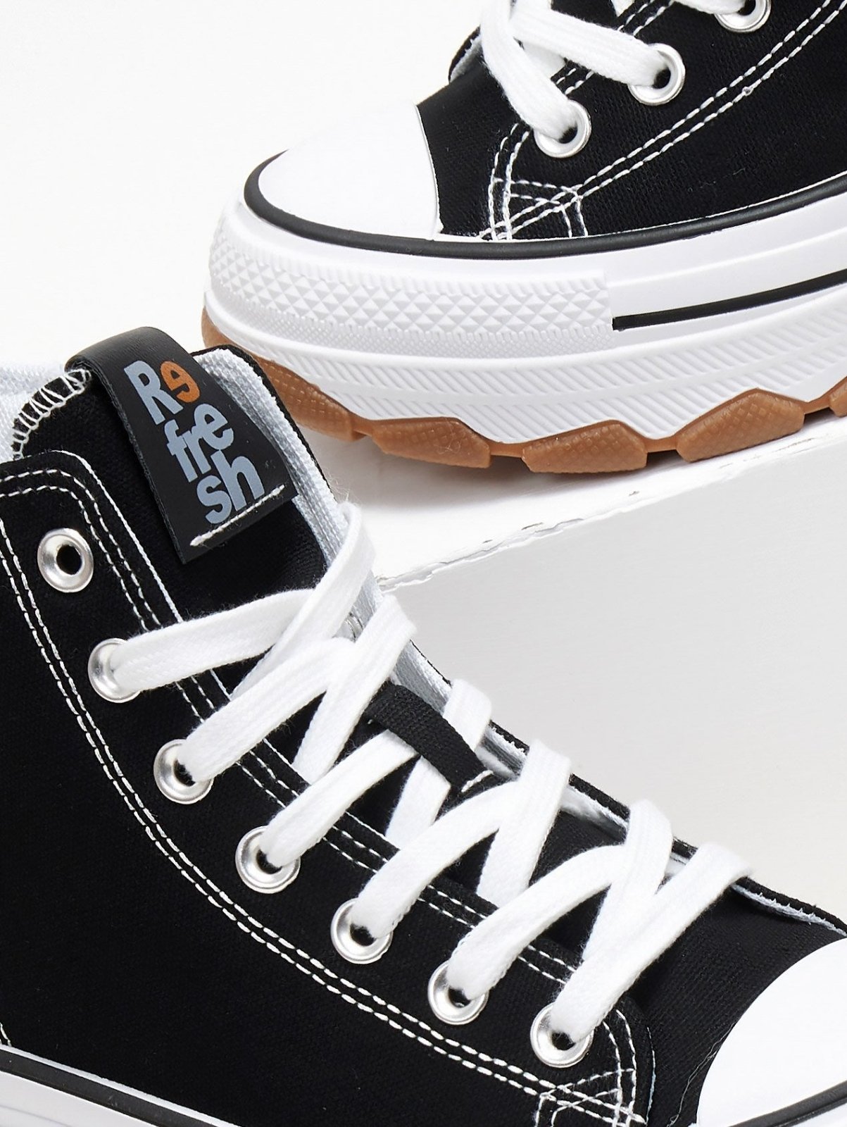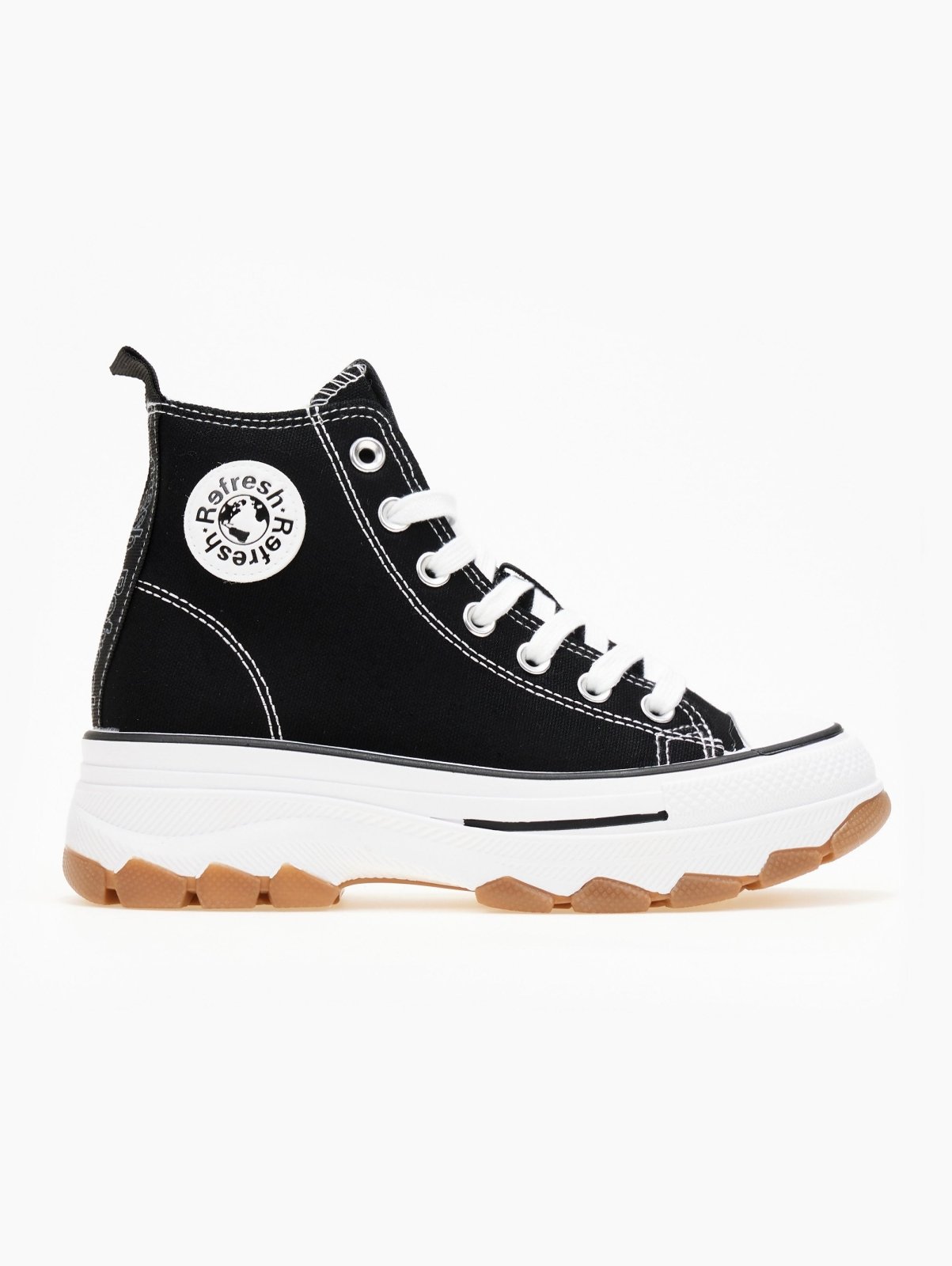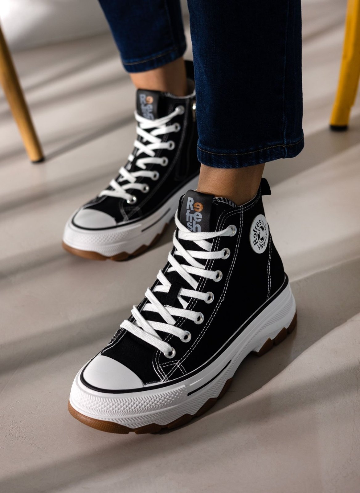 Sneakers πάνινα μποτάκια Refresh. Ψηλή σόλα με σχέδιο. Κλείνουν με φερμουάρ στην εσωτερική τους πλευρά. Comfort μαλακός suede πάτος με τεχνολογία Biotech Memory Foam pro. Peta Vegan Approved.