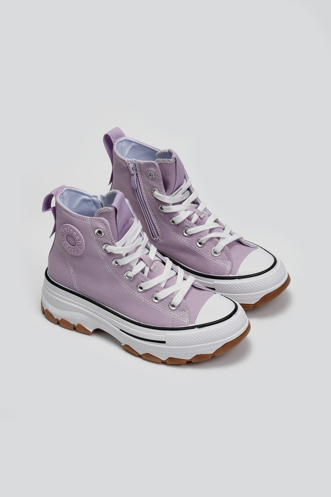 Sneakers πάνινα μποτάκια Refresh. Chunky σόλα με ρίγες. Φερμουάρ στην εσωτερική τους πλευρά. Comfort biotech μαλακός πάτος με memory foam. Peta Vegan approved.