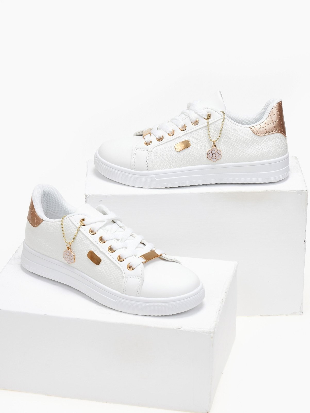 Sneakers με pattern και charm - Λευκό/Χαλκό