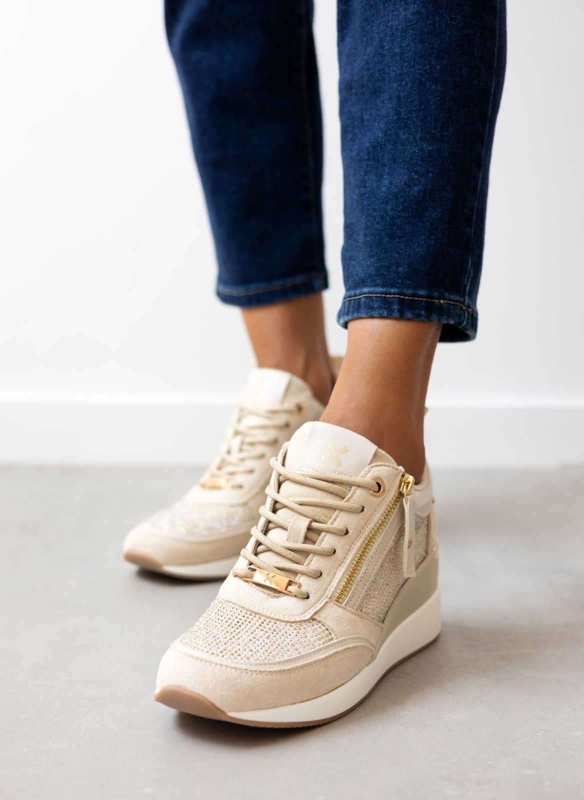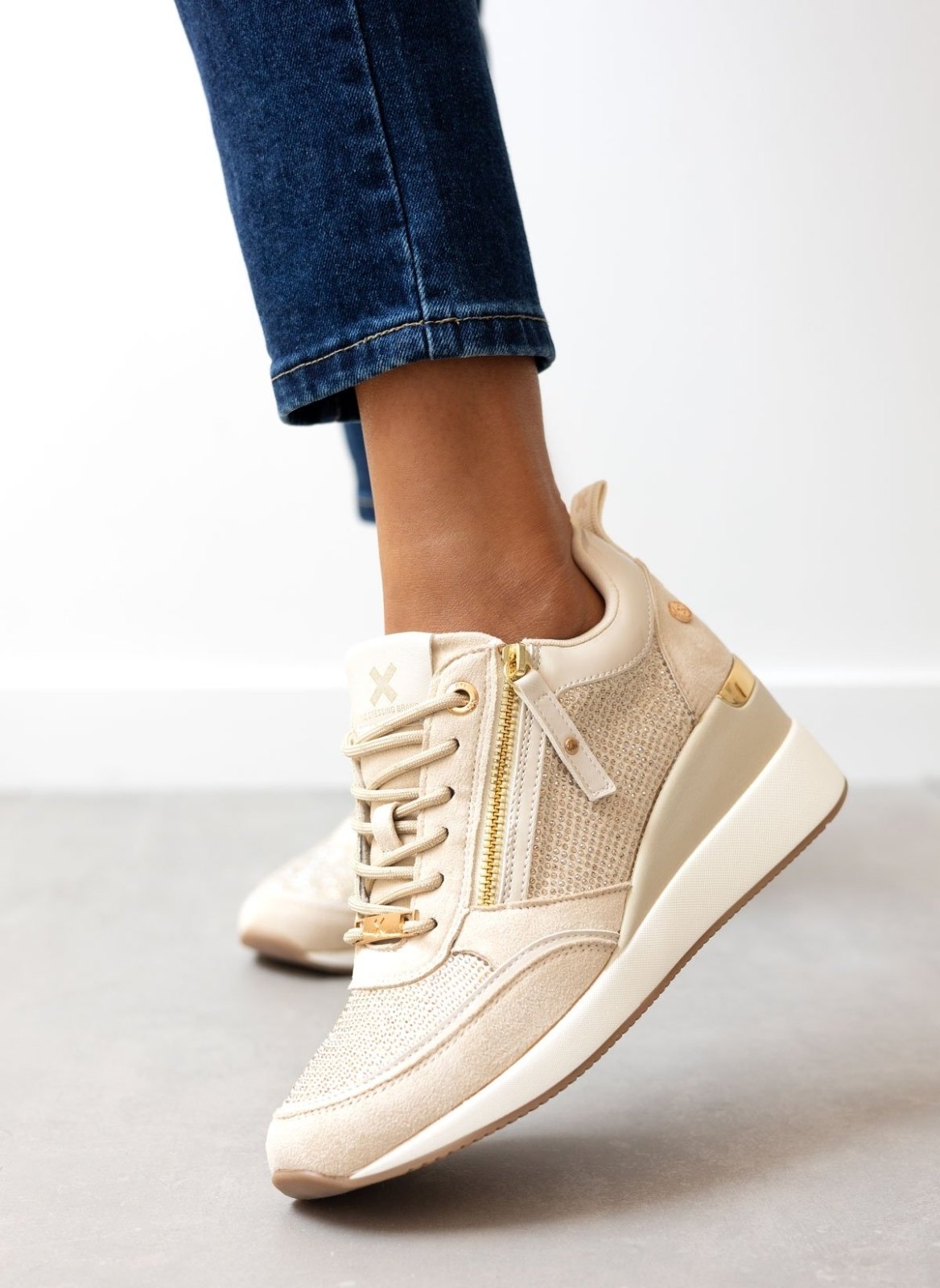 Sneakers wedges με στρας Xti 142957 - Μπεζ