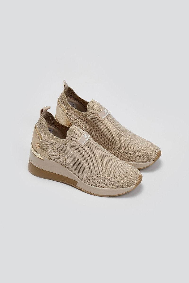 Sneakers wedges Xti με slip on εφαρμογή από ελαστικό ύφασμα. Ψηλή σόλα με μεταλλικό στοιχείο στο πίσω μέρος. Comfort biotech μαλακός πάτος με memory foam. Peta Vegan approved.