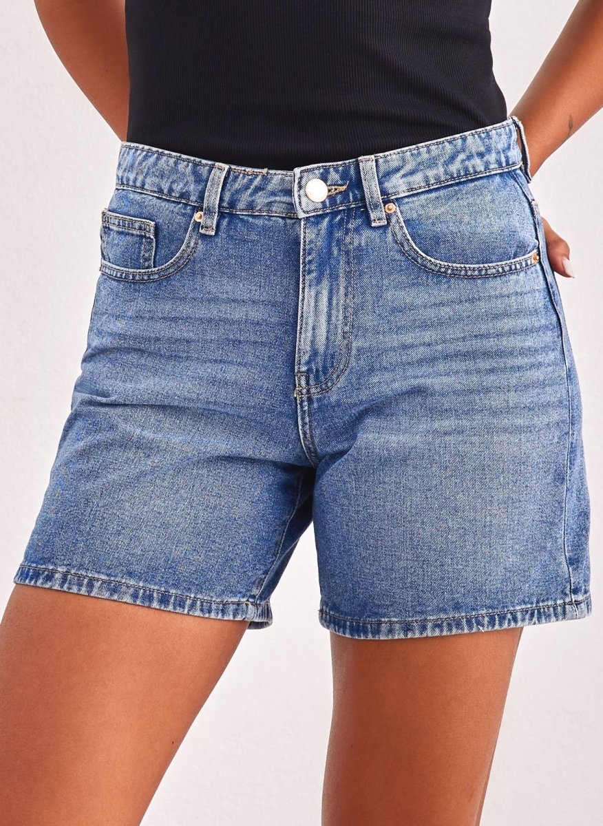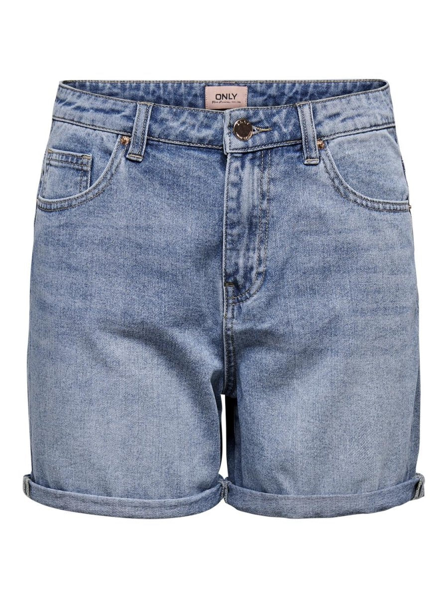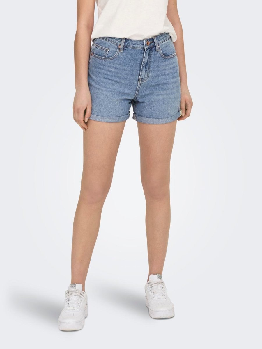 Τζιν σορτς ONLY. Ψηλόμεσο με ρεβέρ στο τελείωμα. Έχει τσέπες μπροστά και στο πίσω μέρος.