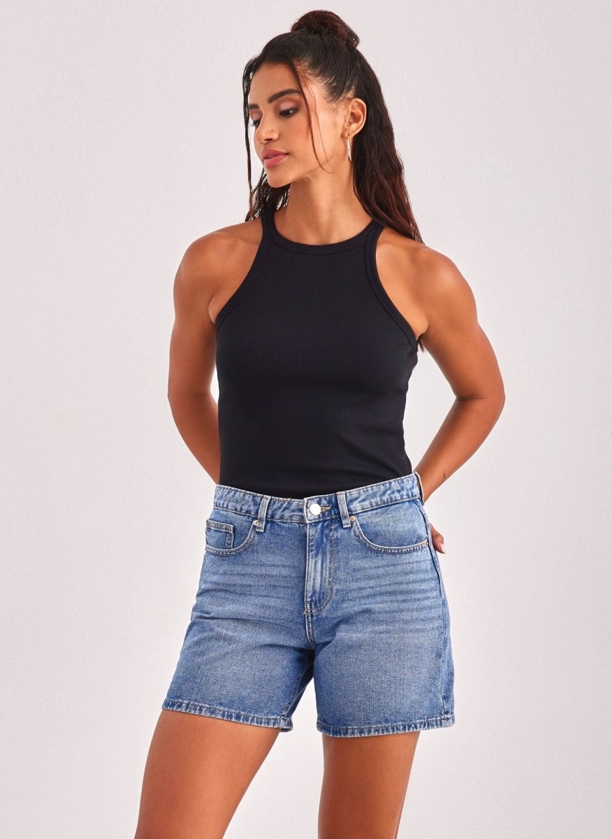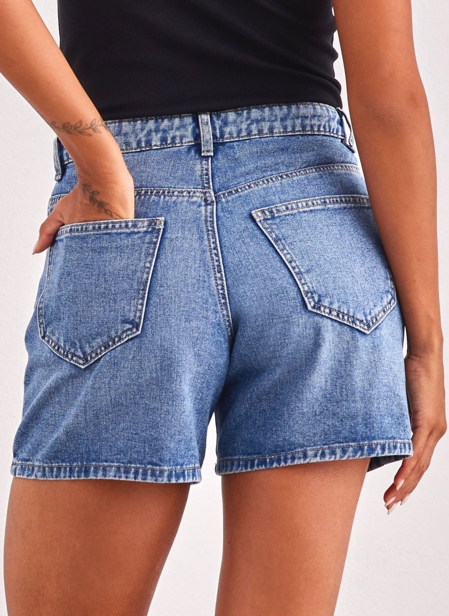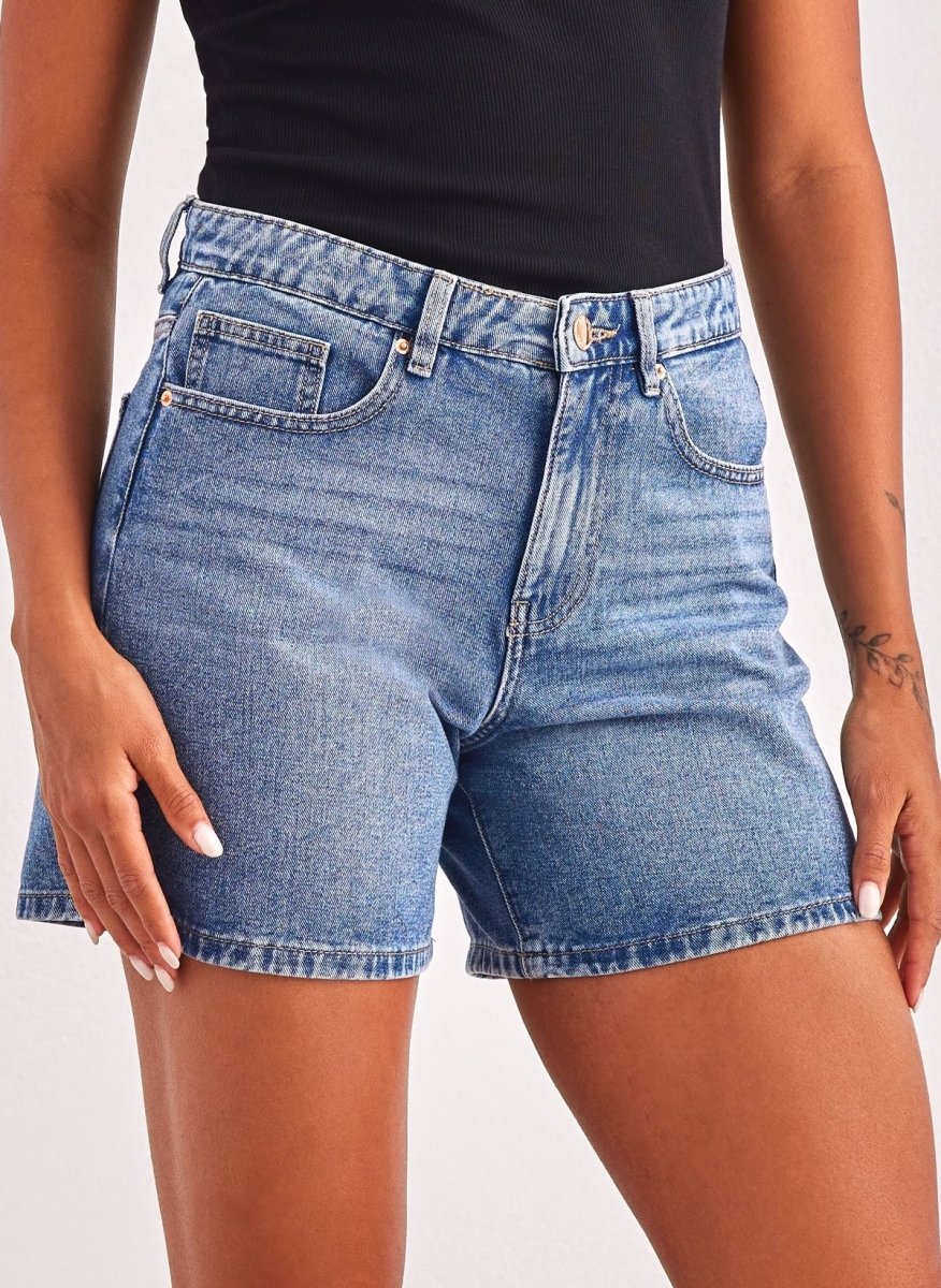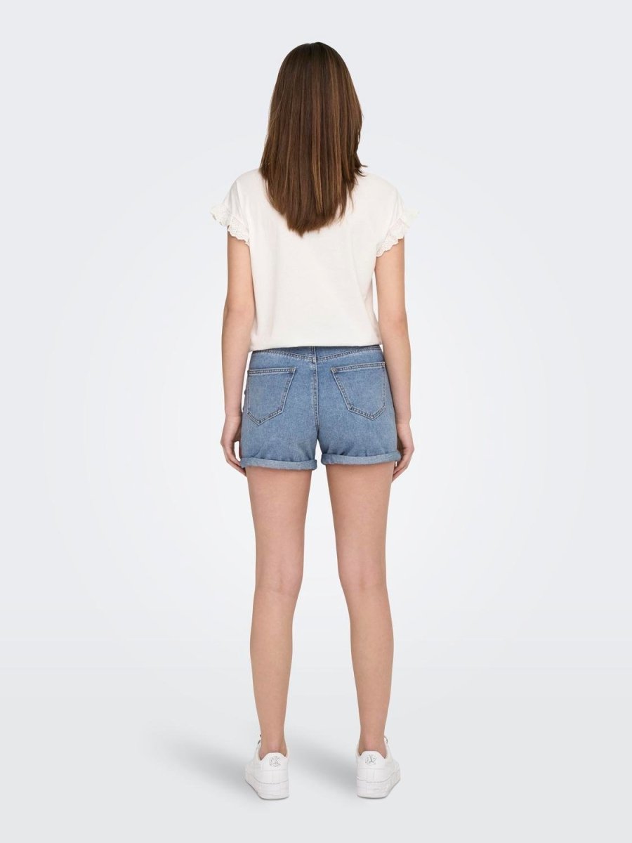 Τζιν σορτς ONLY. Ψηλόμεσο με ρεβέρ στο τελείωμα. Έχει τσέπες μπροστά και στο πίσω μέρος.