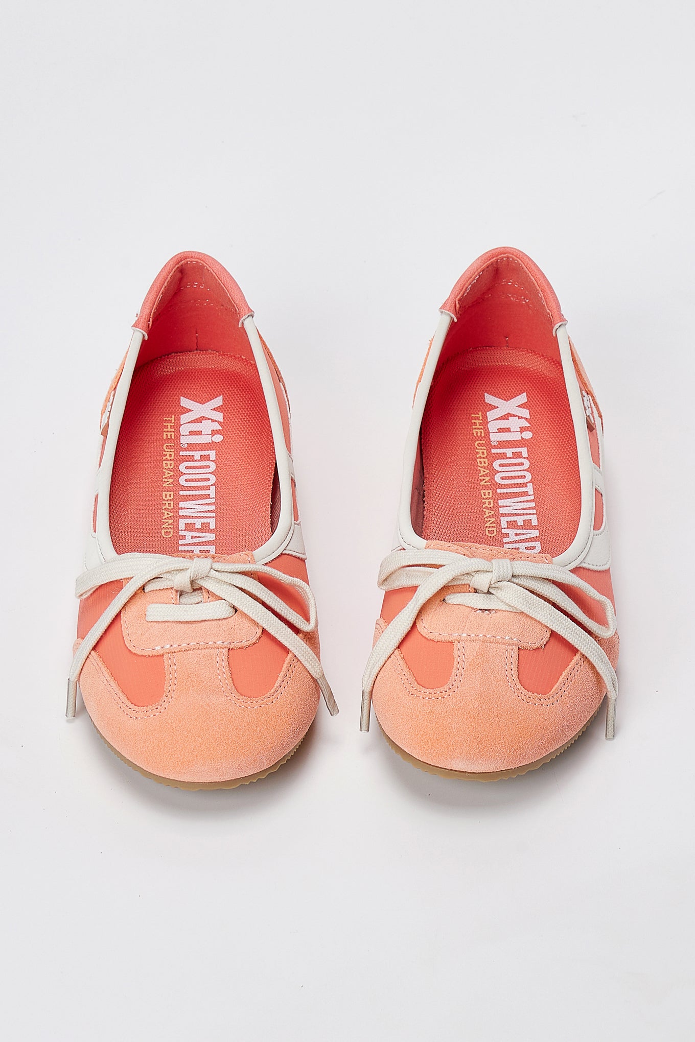 The Xti Footwear Sport Ballet Flats in Coral Suede combine athletic inspiration with classic ballet elegance. Featuring a distinctive lace-up detail and charming bow accent, these flats seamlessly blend style and functionality. Crafted from a combination of premium suede and flexible fabric, they deliver the comfort you need for all-day wear while maintaining a sophisticated aesthetic perfect for casual and semi-formal occasions.