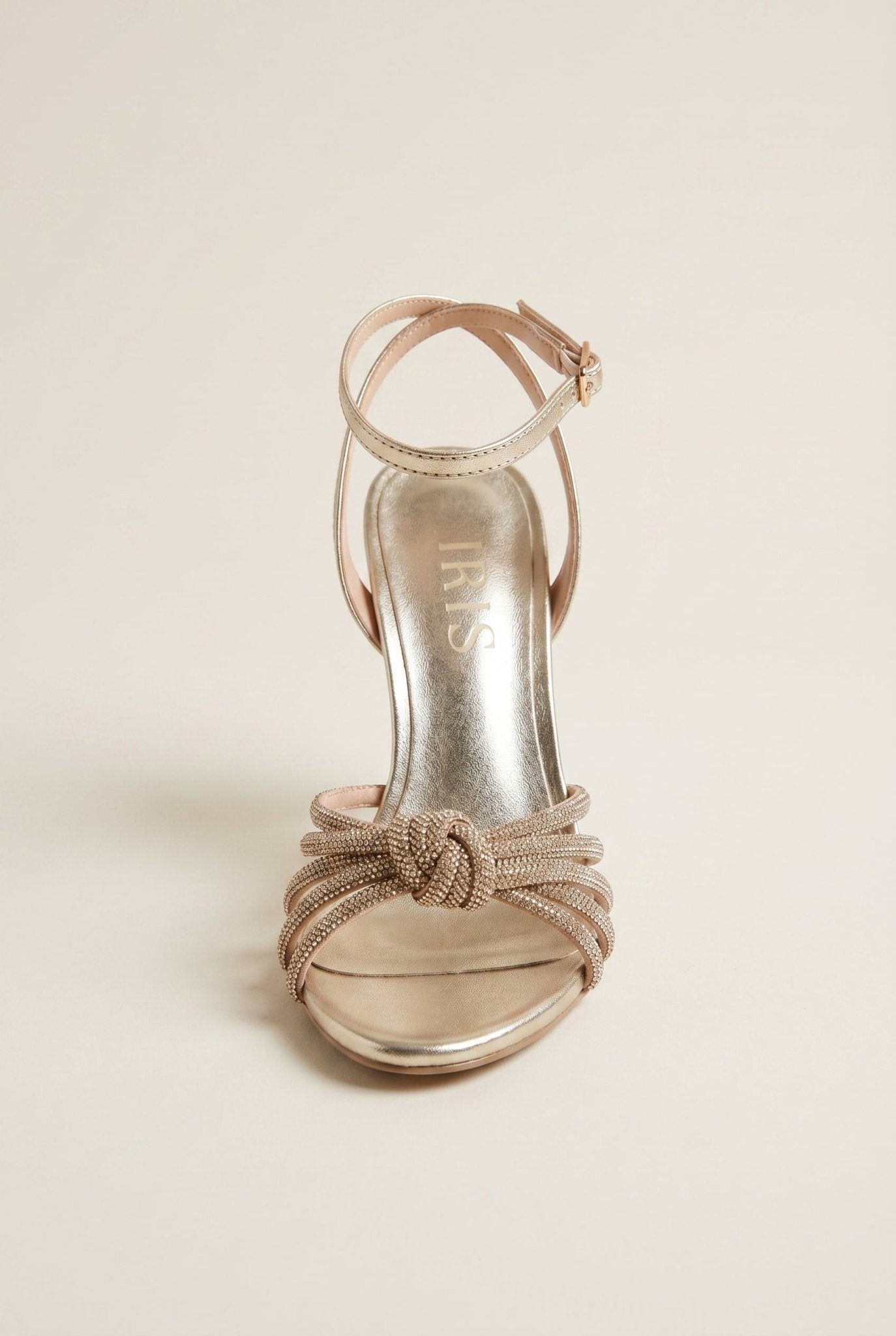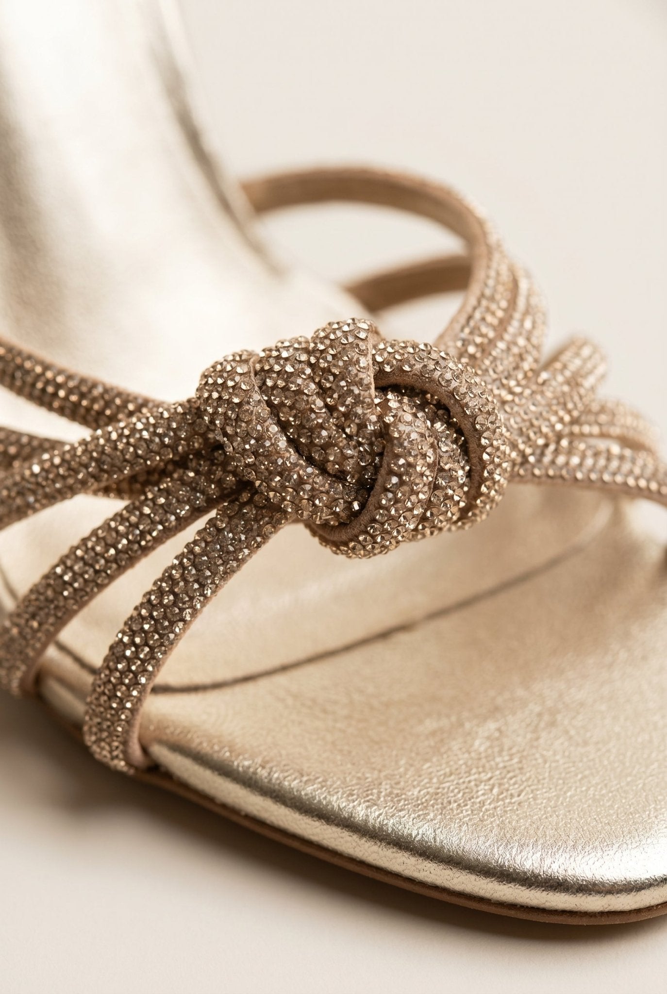 - Elegant gold metallic finish adds luxury and versatility to evening wear