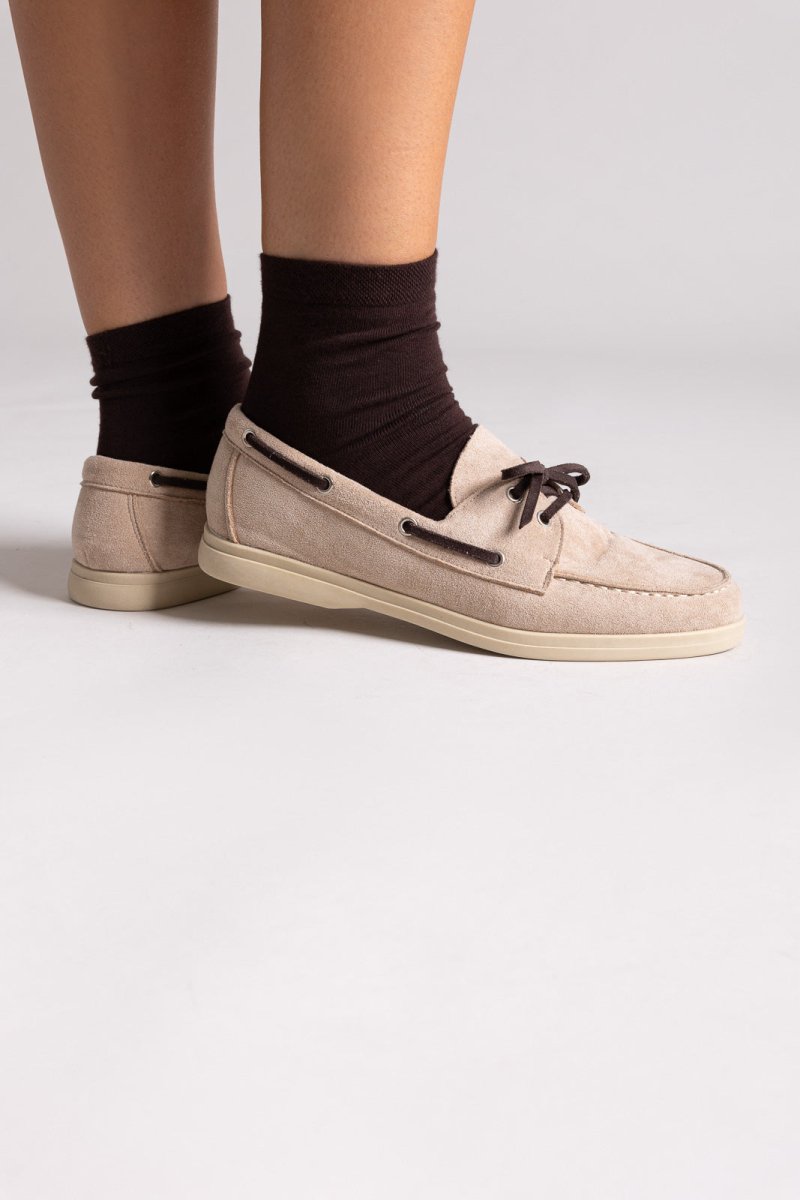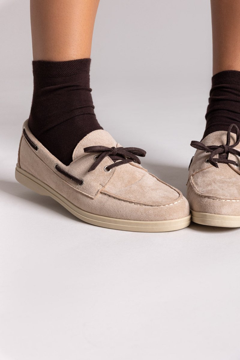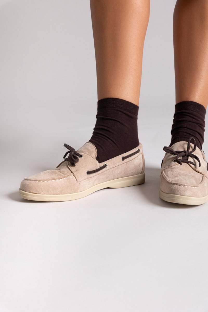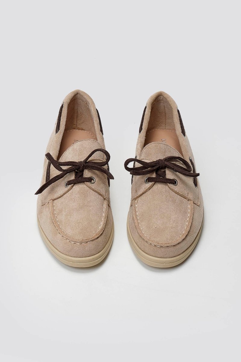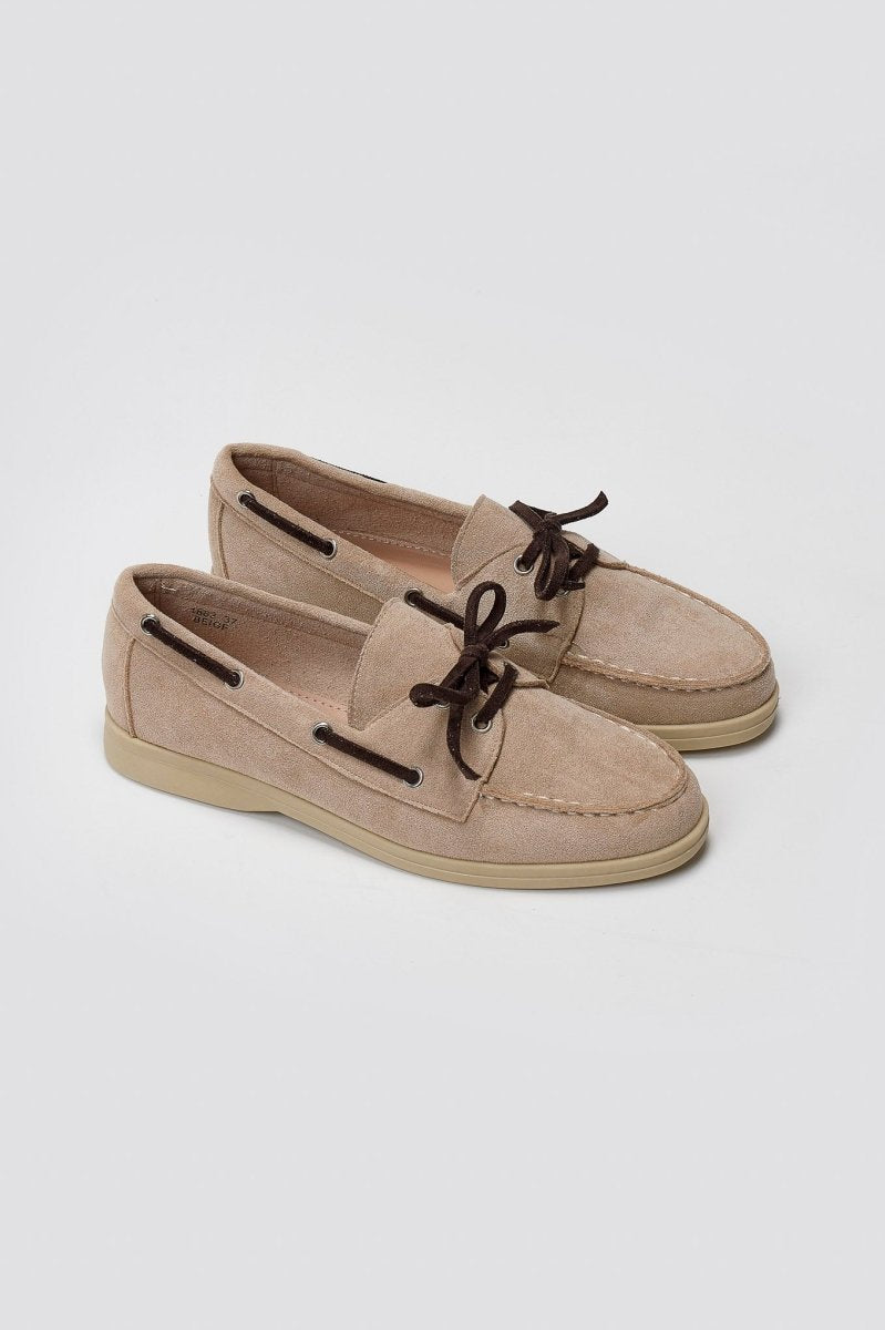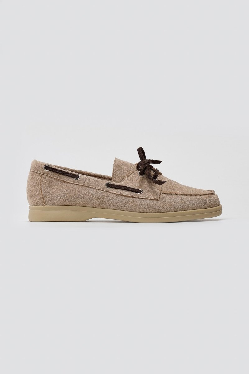 Suede loafers with two-tone laces and front stitch detail. A refined casual design that pairs style with comfort.