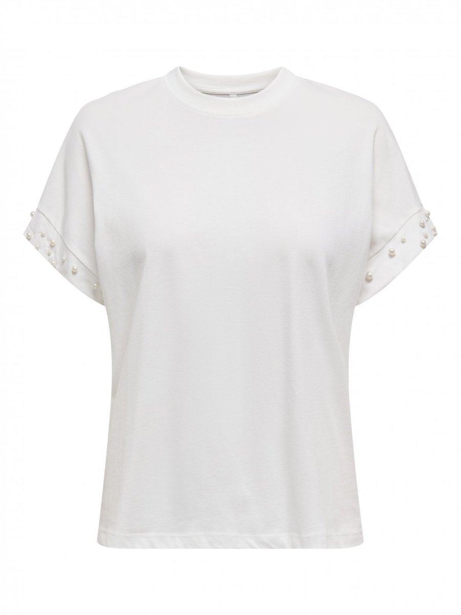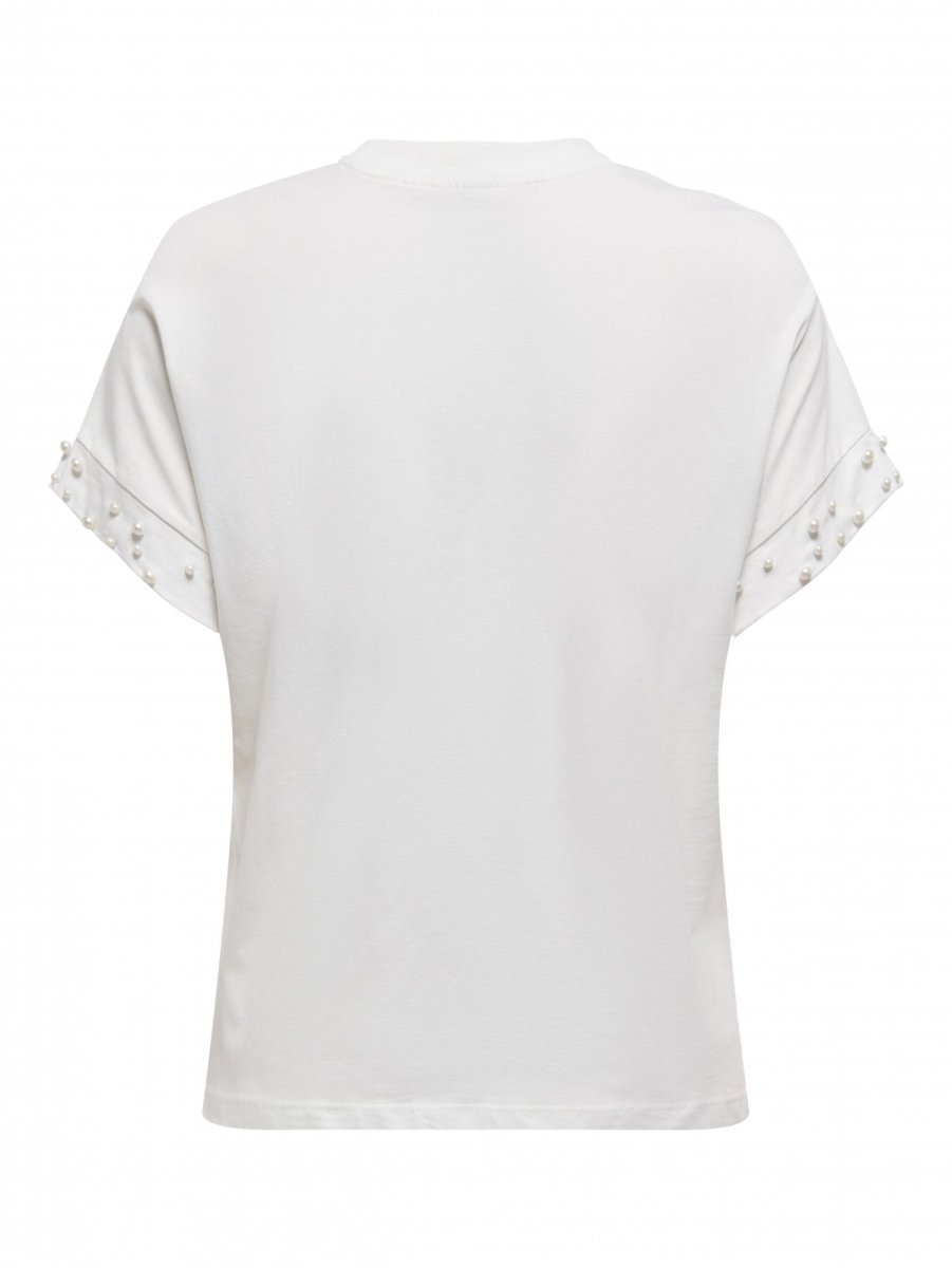 T-shirt με πέρλες ONLY 15346733 - Λευκό
