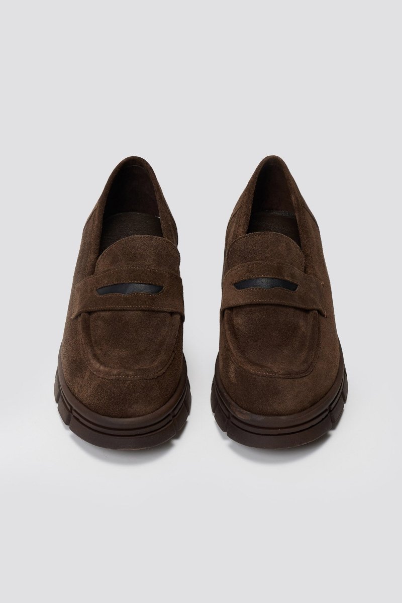 Refined suede leather chunky loafers by TFP with a sturdy lug sole and neat external stitching. Cushioned footbed, versatile women’s loafers crafted for modern style.