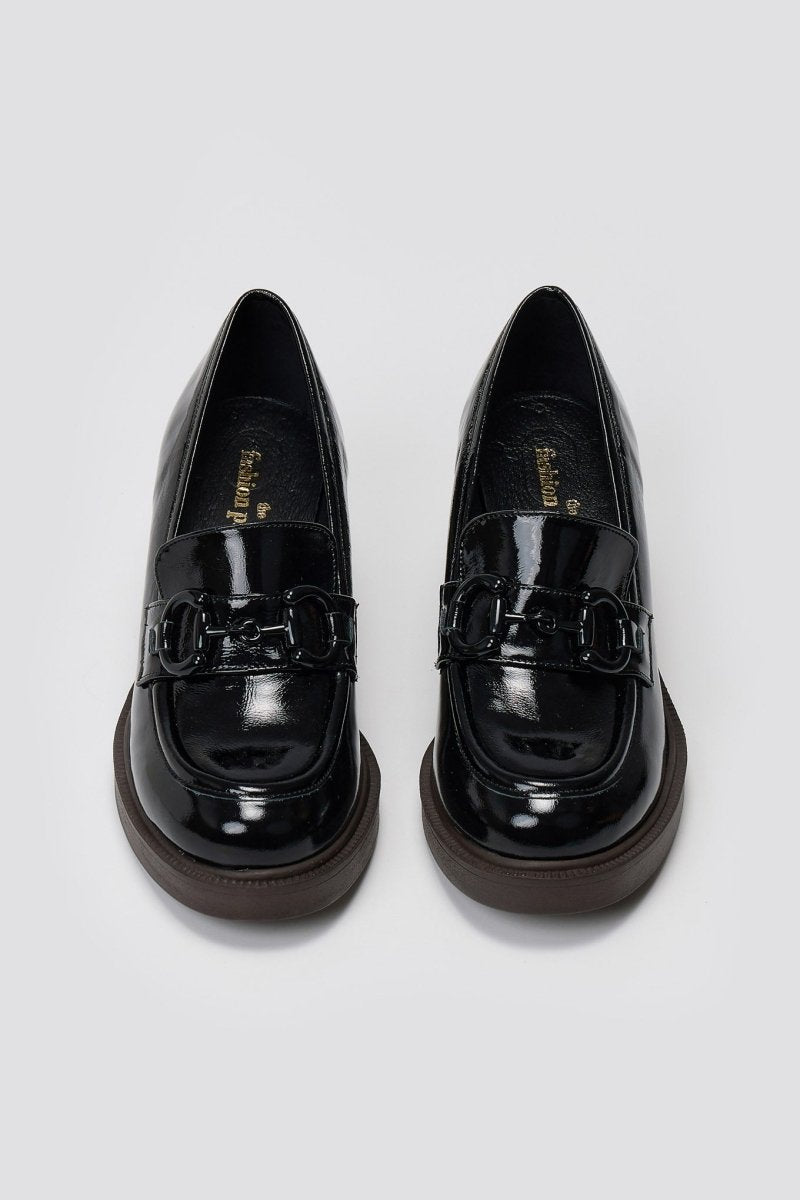 Elegant loafers by TFP with a sleek strap and tonal metal buckle. Chunky heel adds modern sophistication and comfort to every look.