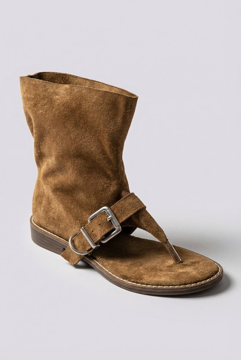 Thong Ankle Boots - Camel Suede