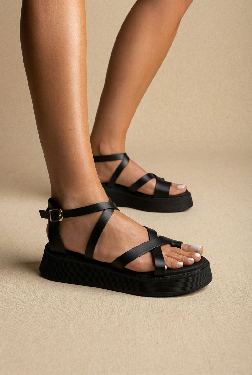 Toe Ring Platform Sandals - Black Matte