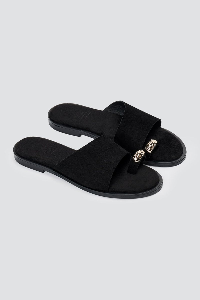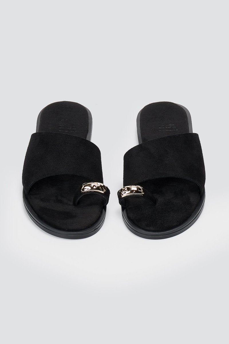Toe Ring Sandals - Black Suede