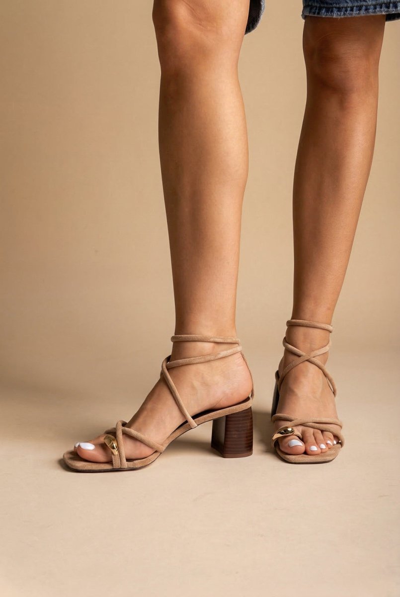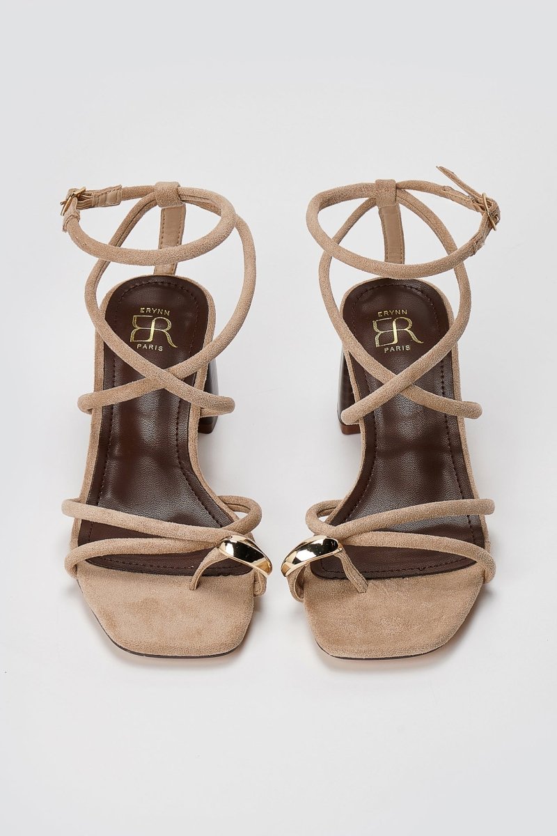 The ERYNN Toe Ring Sandals in Taupe Suede combine contemporary style with everyday comfort. Featuring a sophisticated low block heel and premium suede construction, these sandals offer a versatile option for casual and semi-formal occasions. The thoughtfully designed toe ring detail, paired with slim straps and a secure ankle strap, creates a balanced silhouette that flatters the foot while providing reliable support throughout the day.