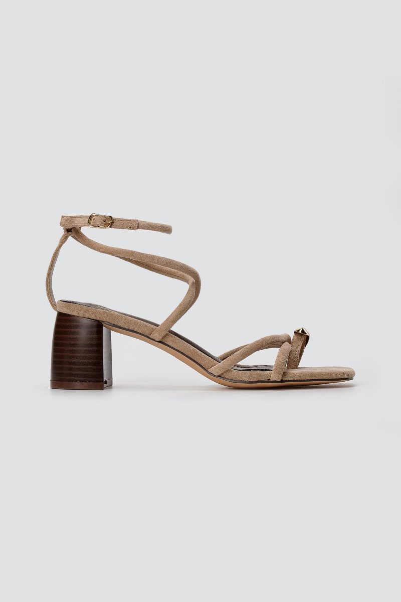 Toe Ring Sandals Low Block Heel - Taupe Suede