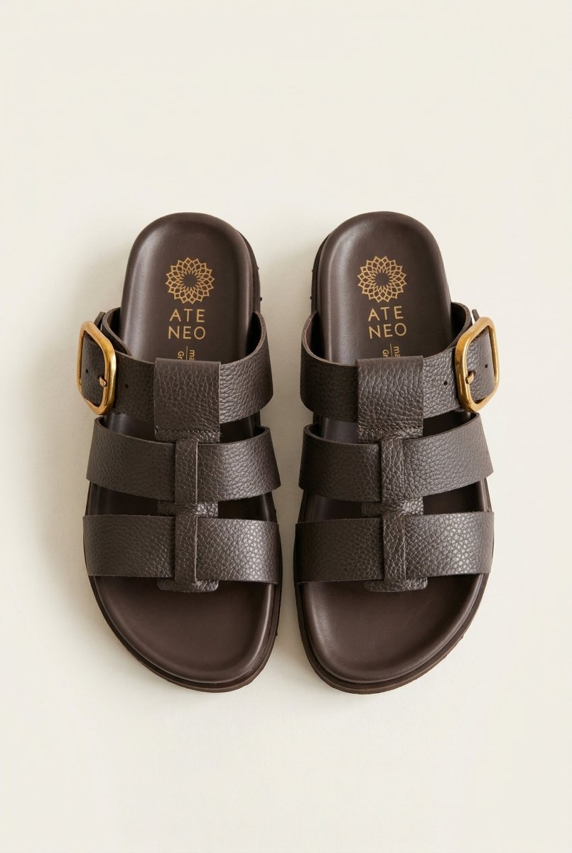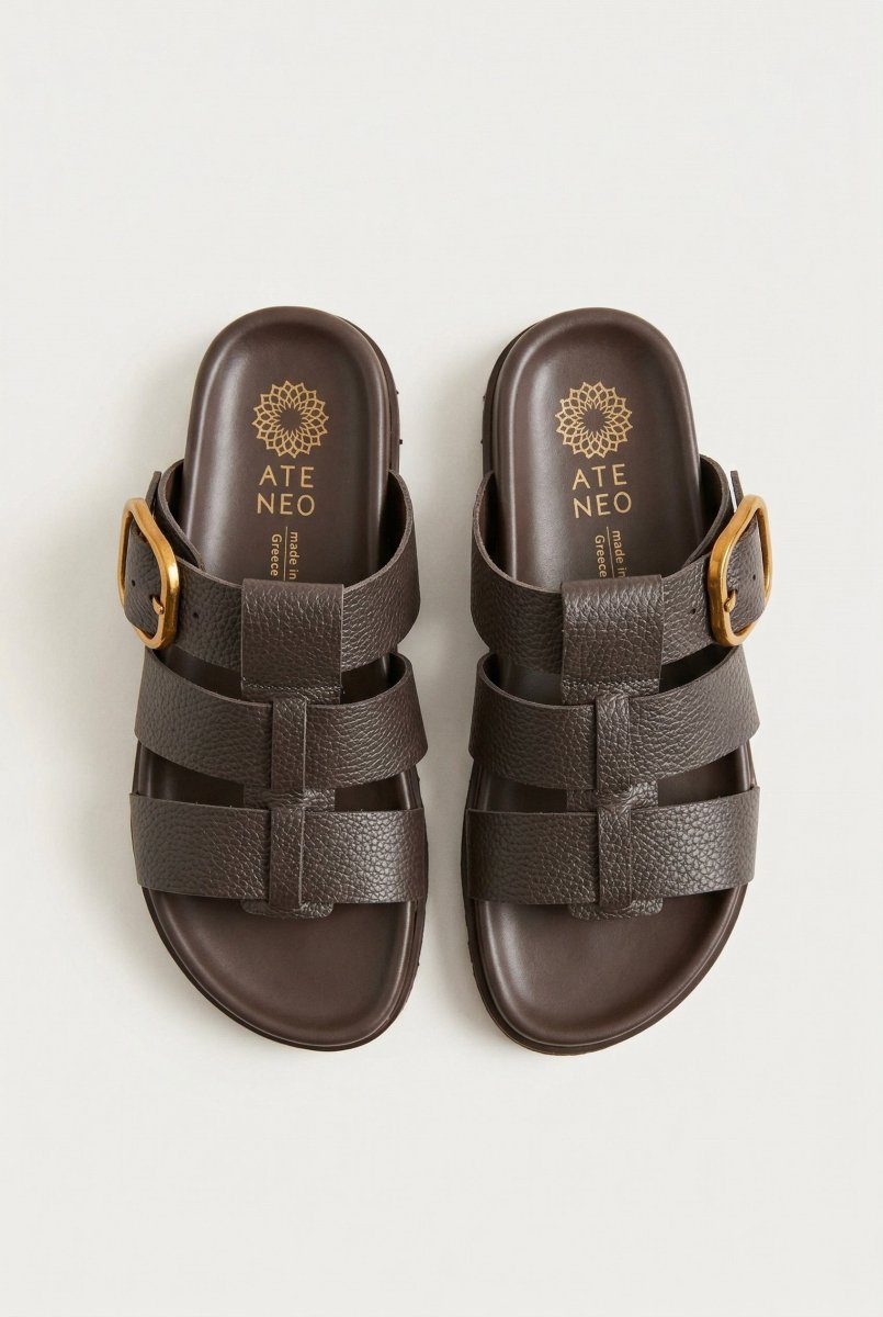 Triple Strap Sandals Buckle Detail - Dark Brown Matte