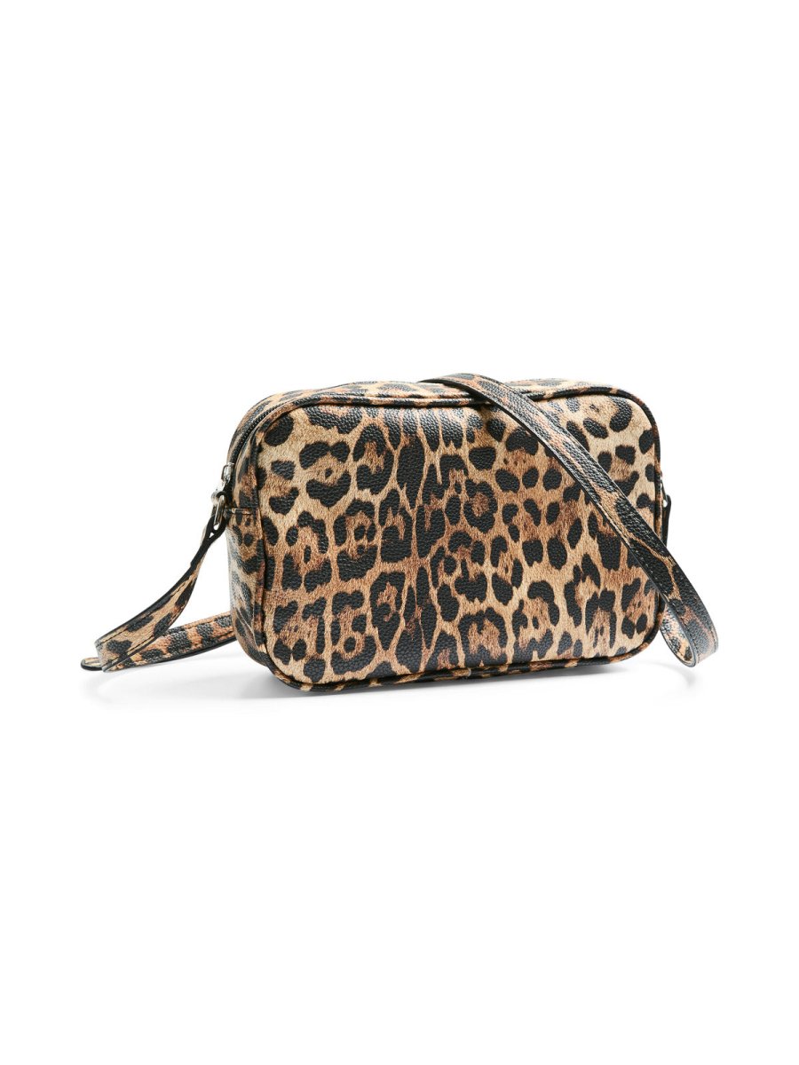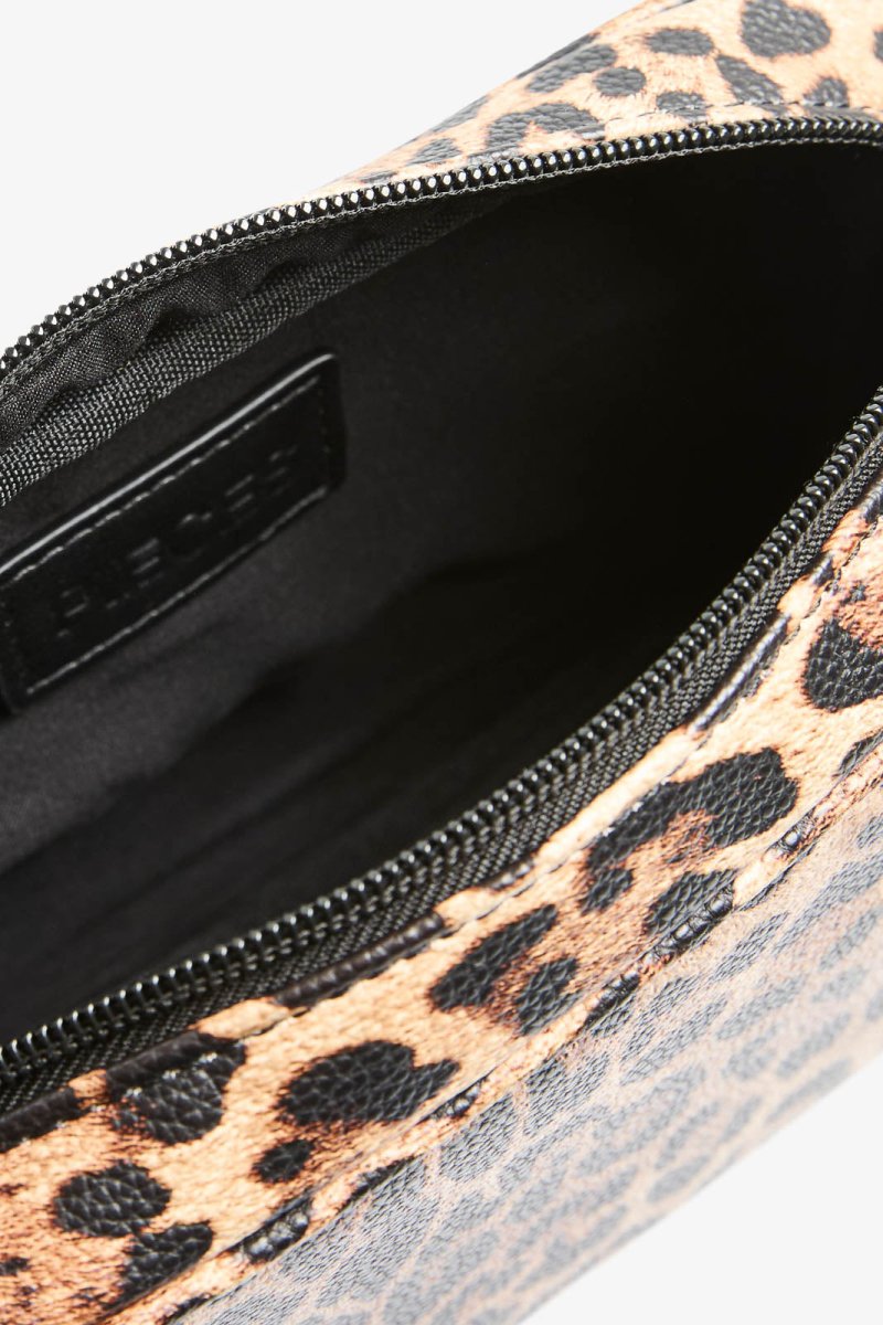 Τσάντα μικρή χιαστί με animal print Pieces. Ενιαίος χώρος αποθήκευσης. Υφασμάτινη επένδυση στο εσωτερικό της. Κλείνει με φερμουάρ στο επάνω μέρος.