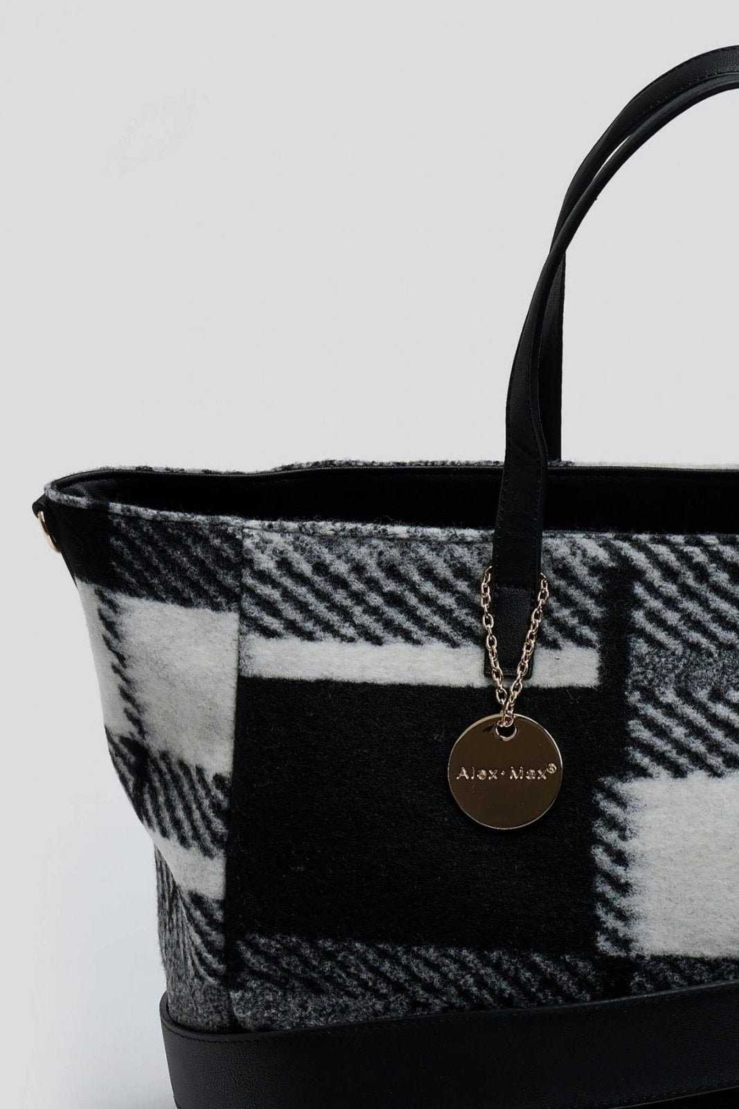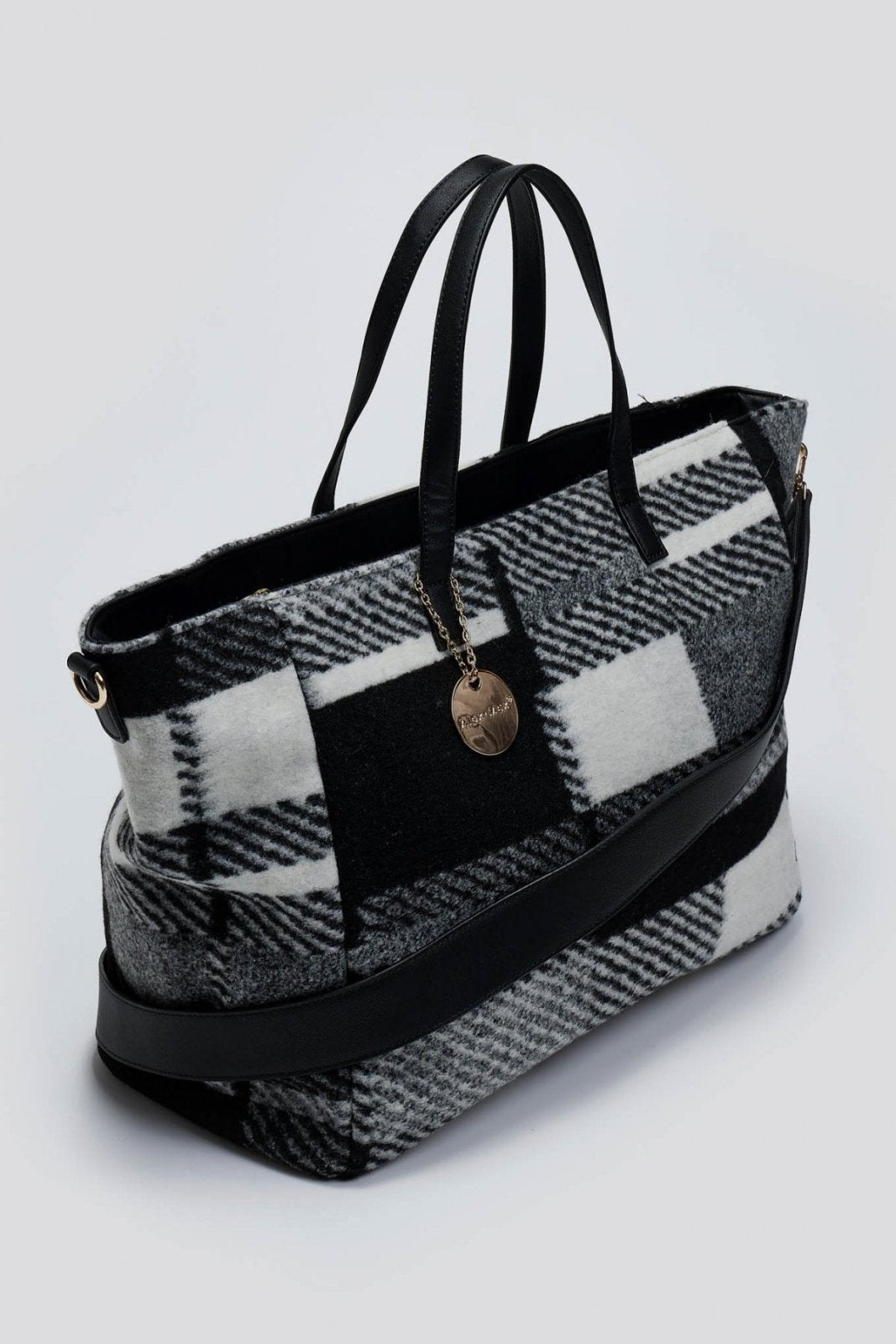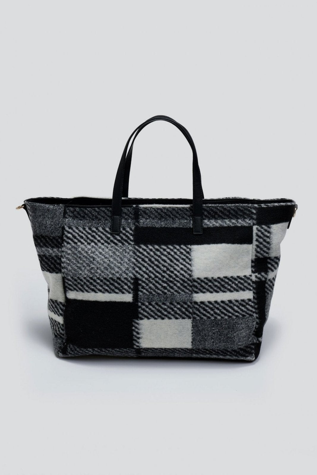 Τσάντα shopper με ύφασμα και print - Μαύρο