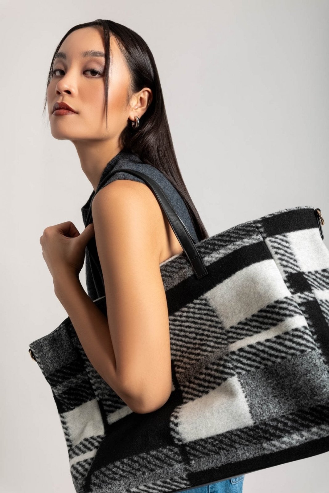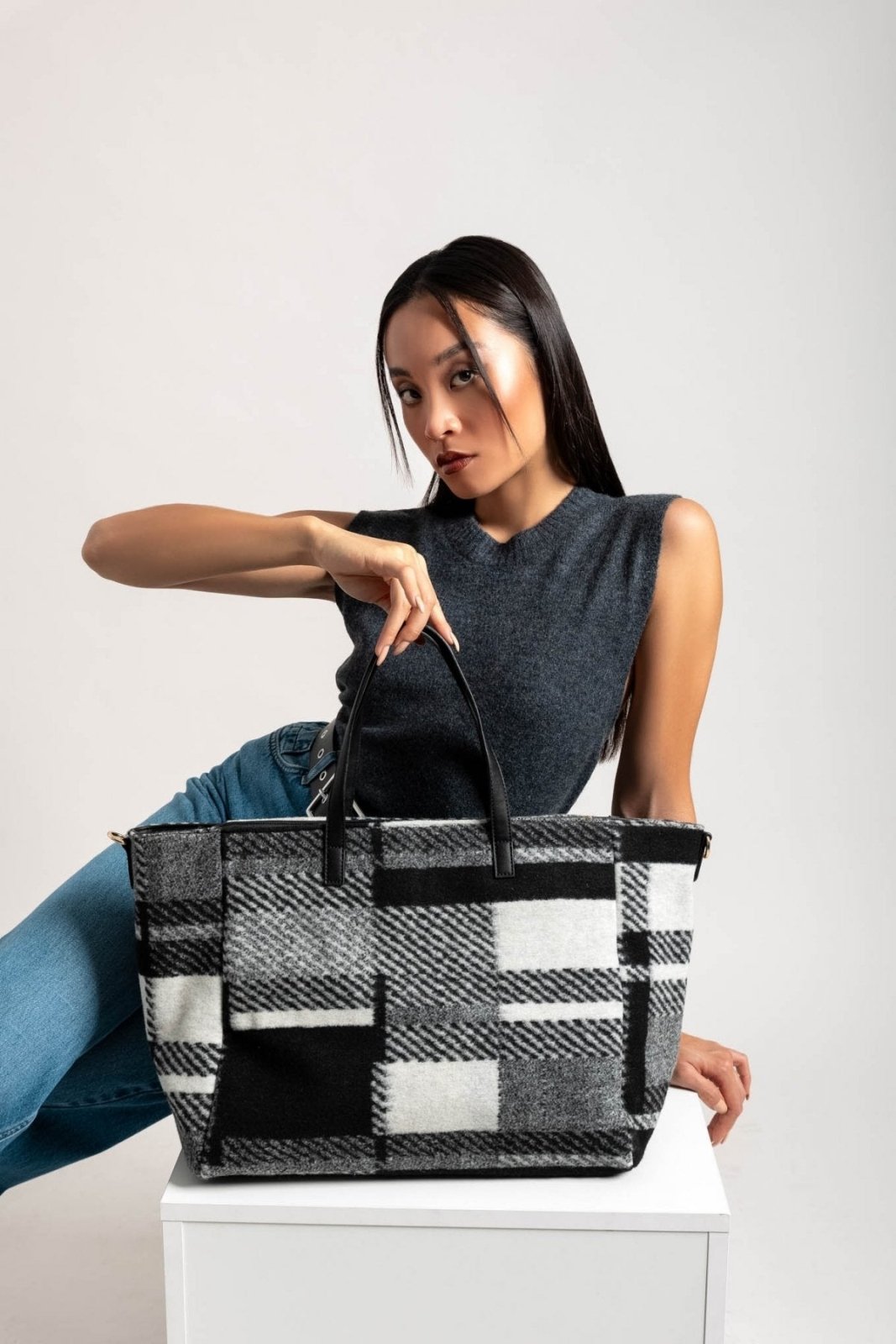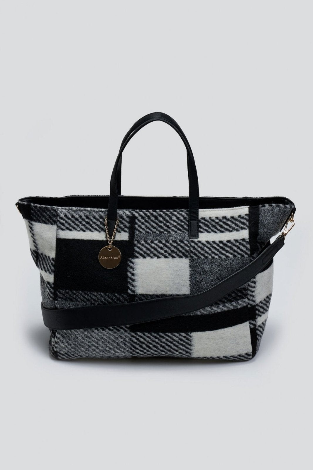 Τσάντα shopper με ύφασμα και print - Μαύρο