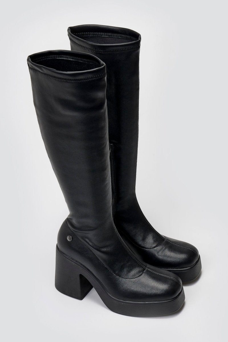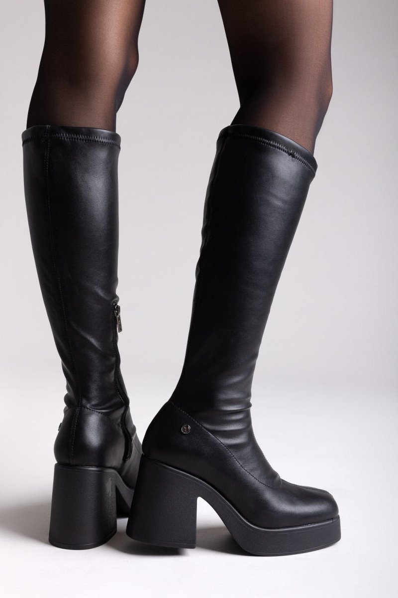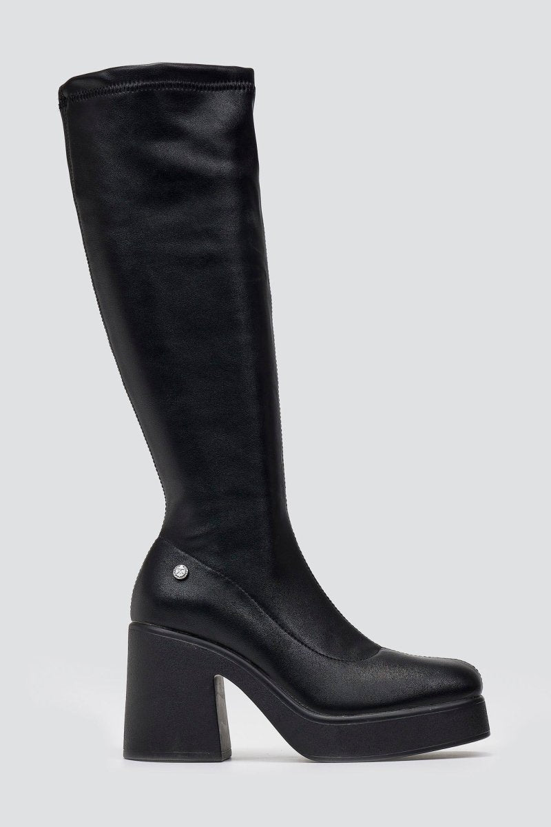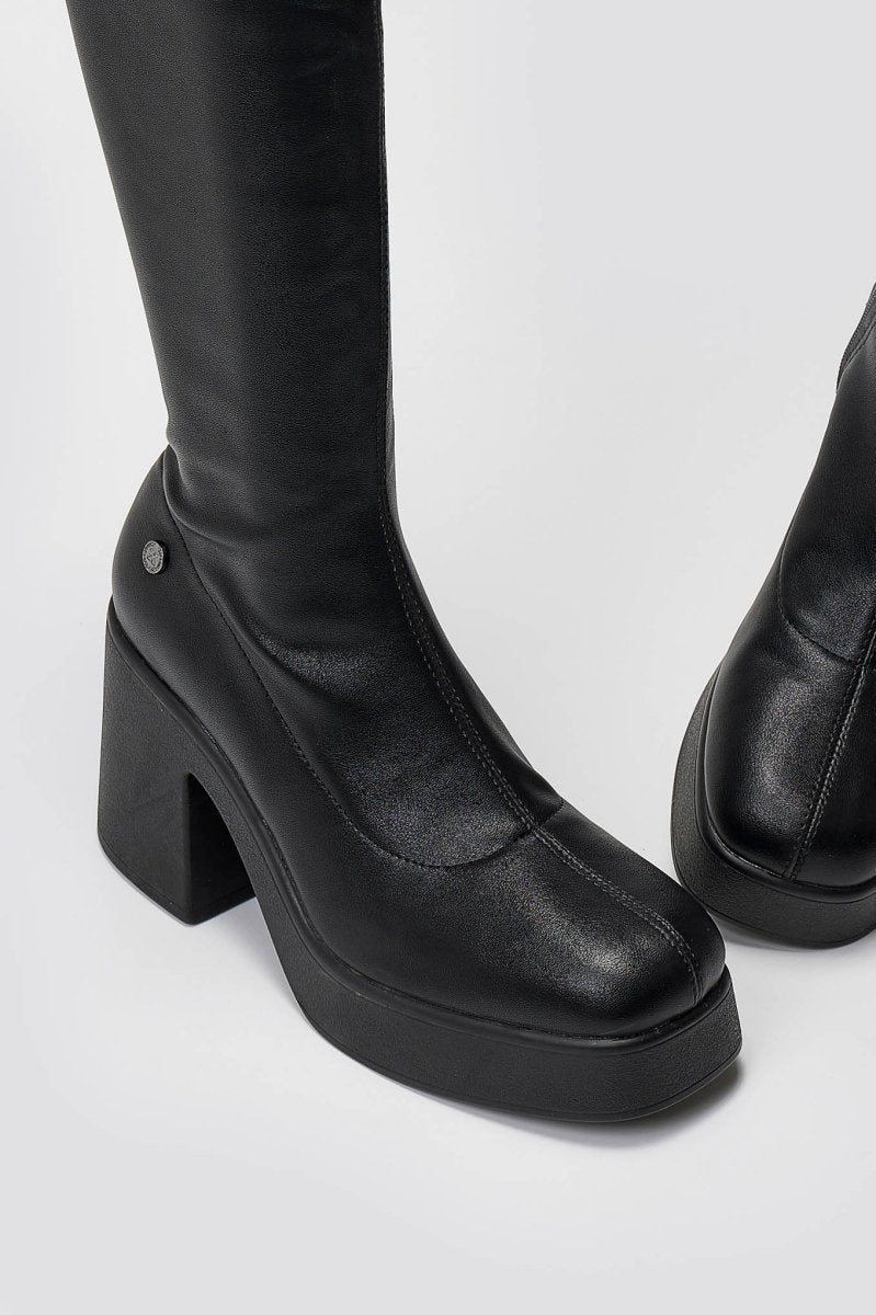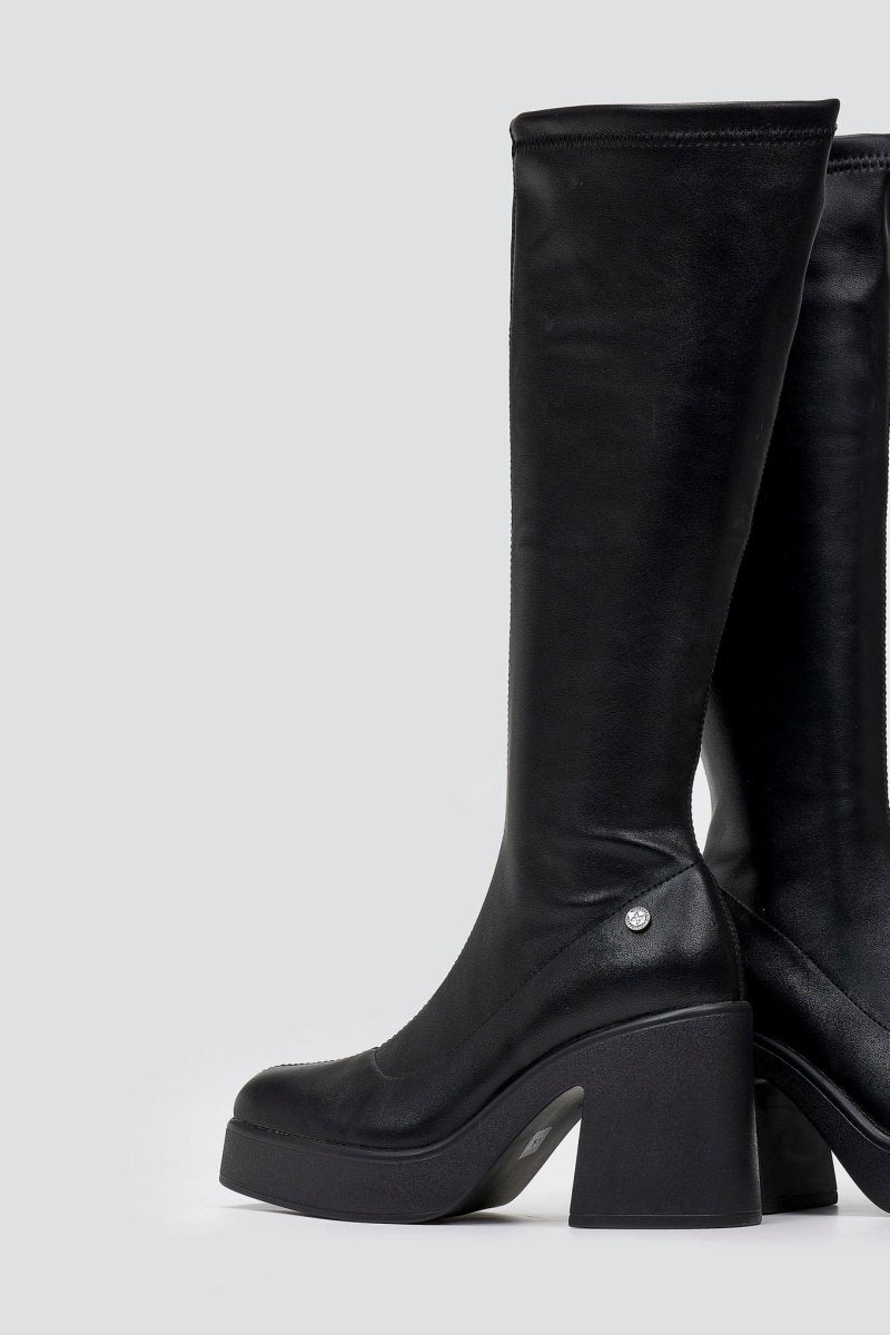 Xti 144707 Suede Sock Boots Block Heel - Black Matte