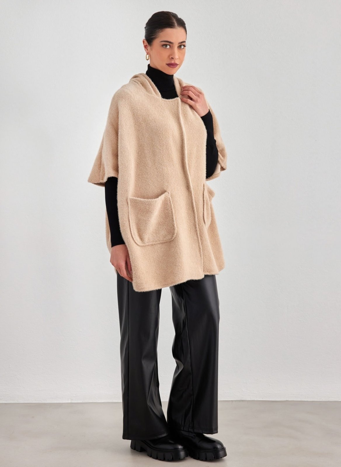 Ζακέτα αμάνικη oversized. Έχει λεπτό γιακά και κουκούλα. Σενίλ μαλακό ύφασμα. Οριζόντιες τσέπες μπροστά. Κλείνει με κουμπί.