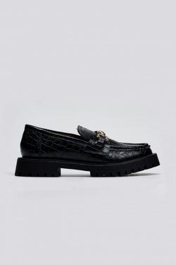 Μοκασίνια με ανάγλυφο κροκό - Μαύρο croc