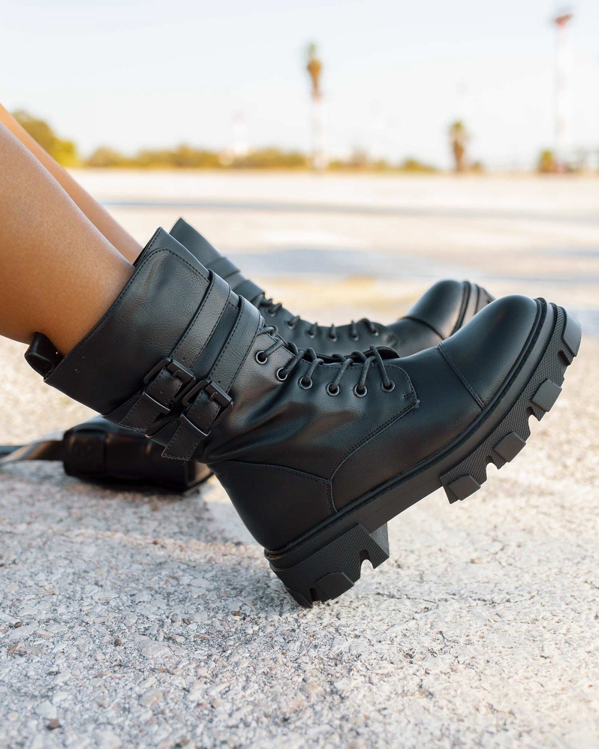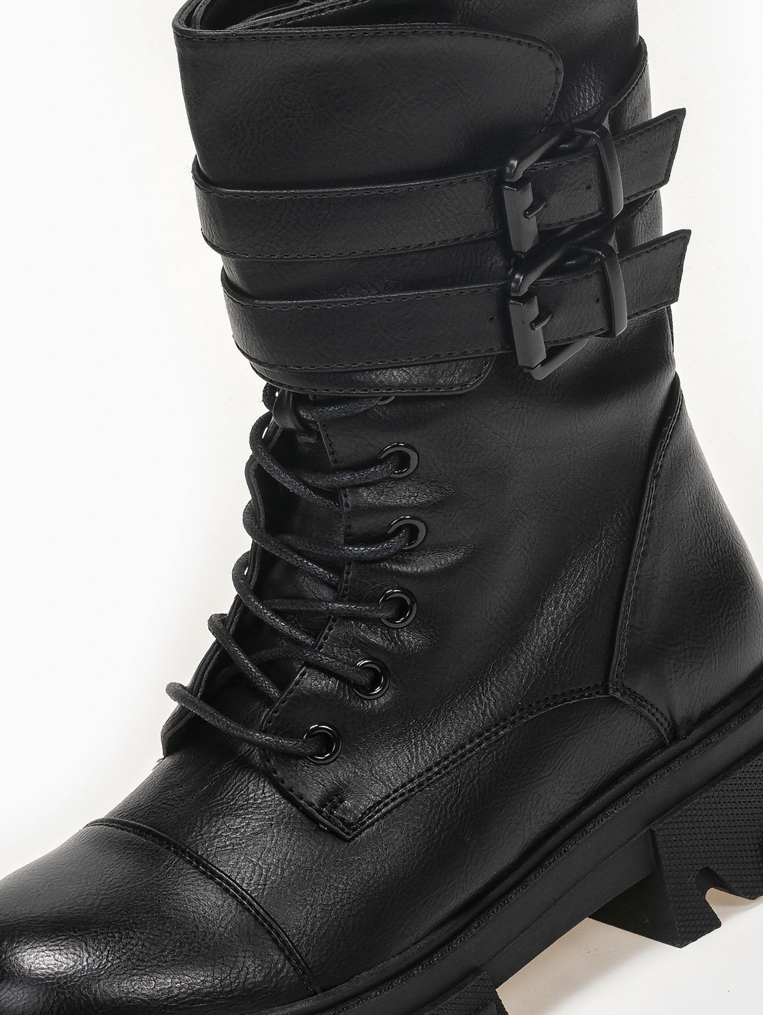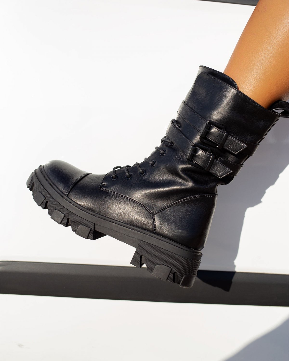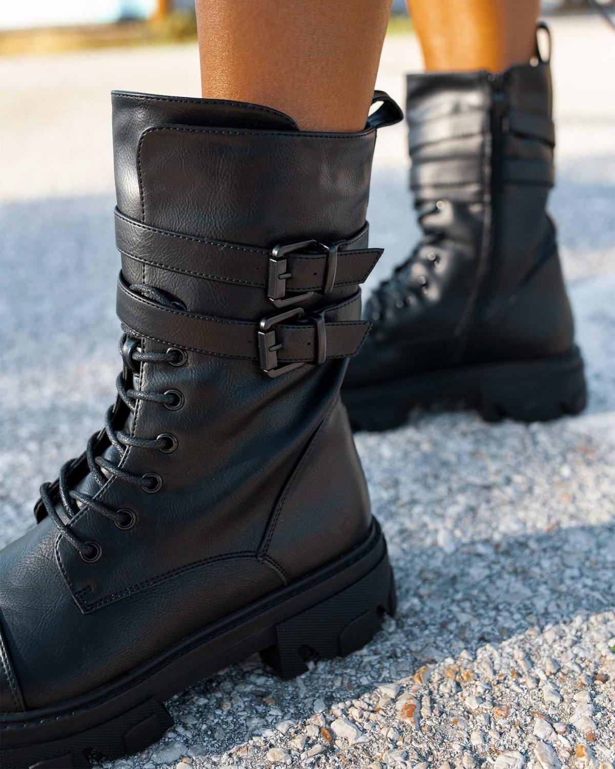 Αρβυλάκια με πιέτα στο τελείωμα. διακοσμητικά ζωνάκια με τετράγωνες αγκράφες. Η σόλα είναι ψηλή με σχέδια.
