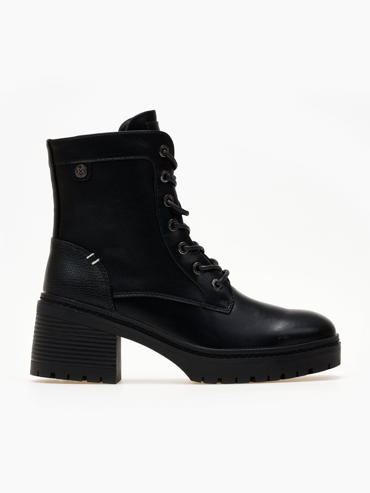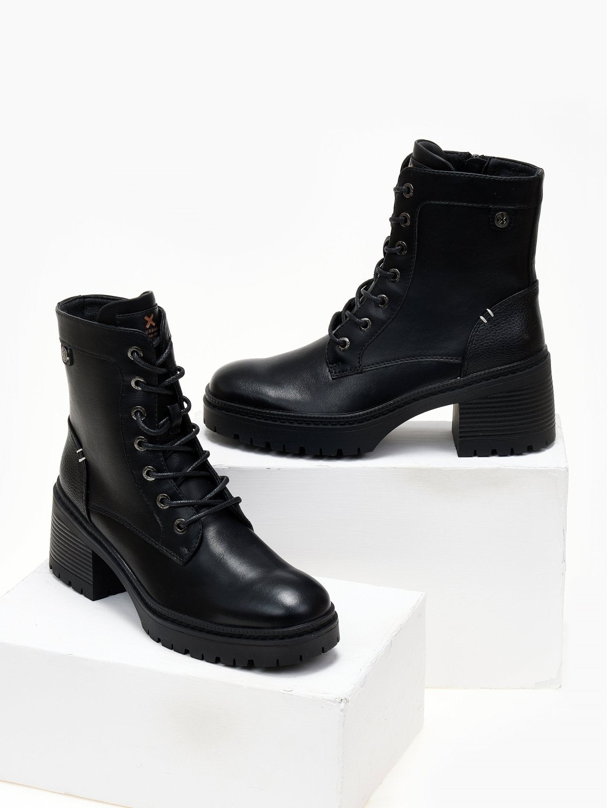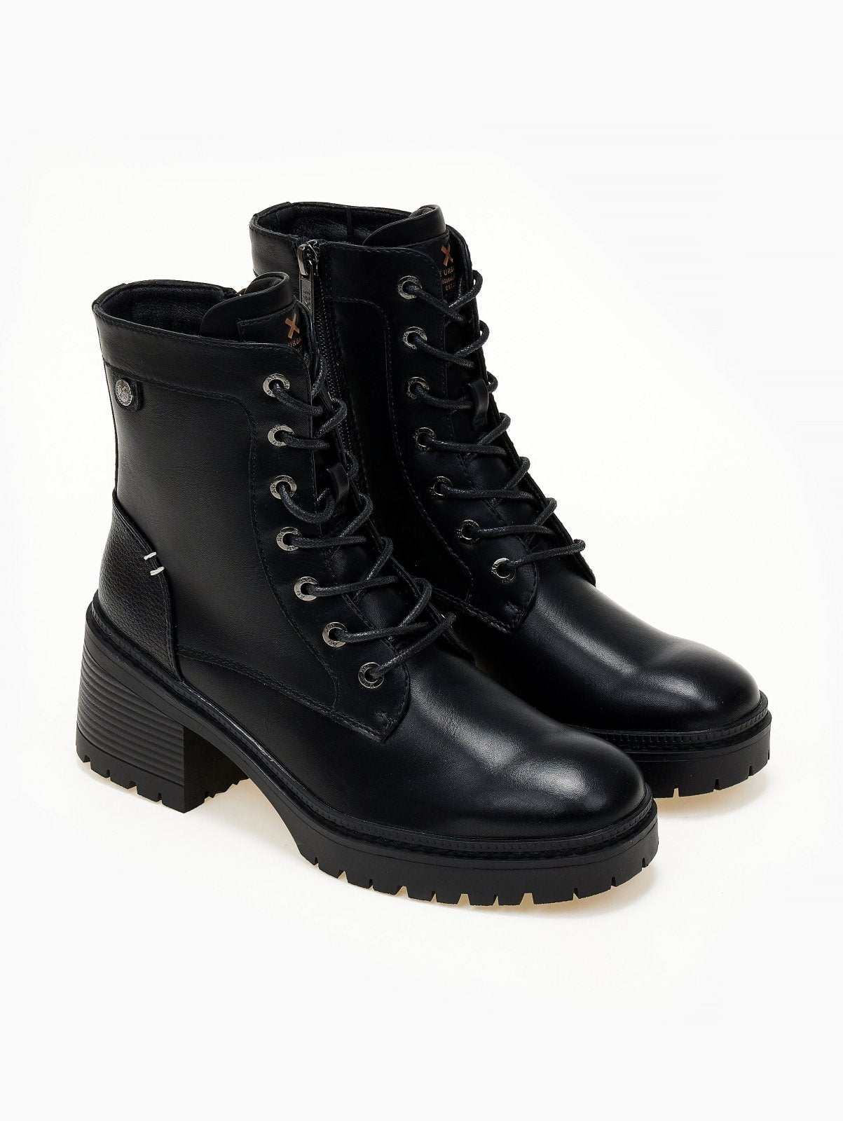 Αρβυλάκια με τακούνι Xti. κορδόνια και φερμουάρ στο εσωτερικό τους. Κρεπ σόλα. Τακούνι με ξύλινο εφε. Comfort μαλακός πάτος με memory foam. Εγκρίθηκε η Peta Vegan.