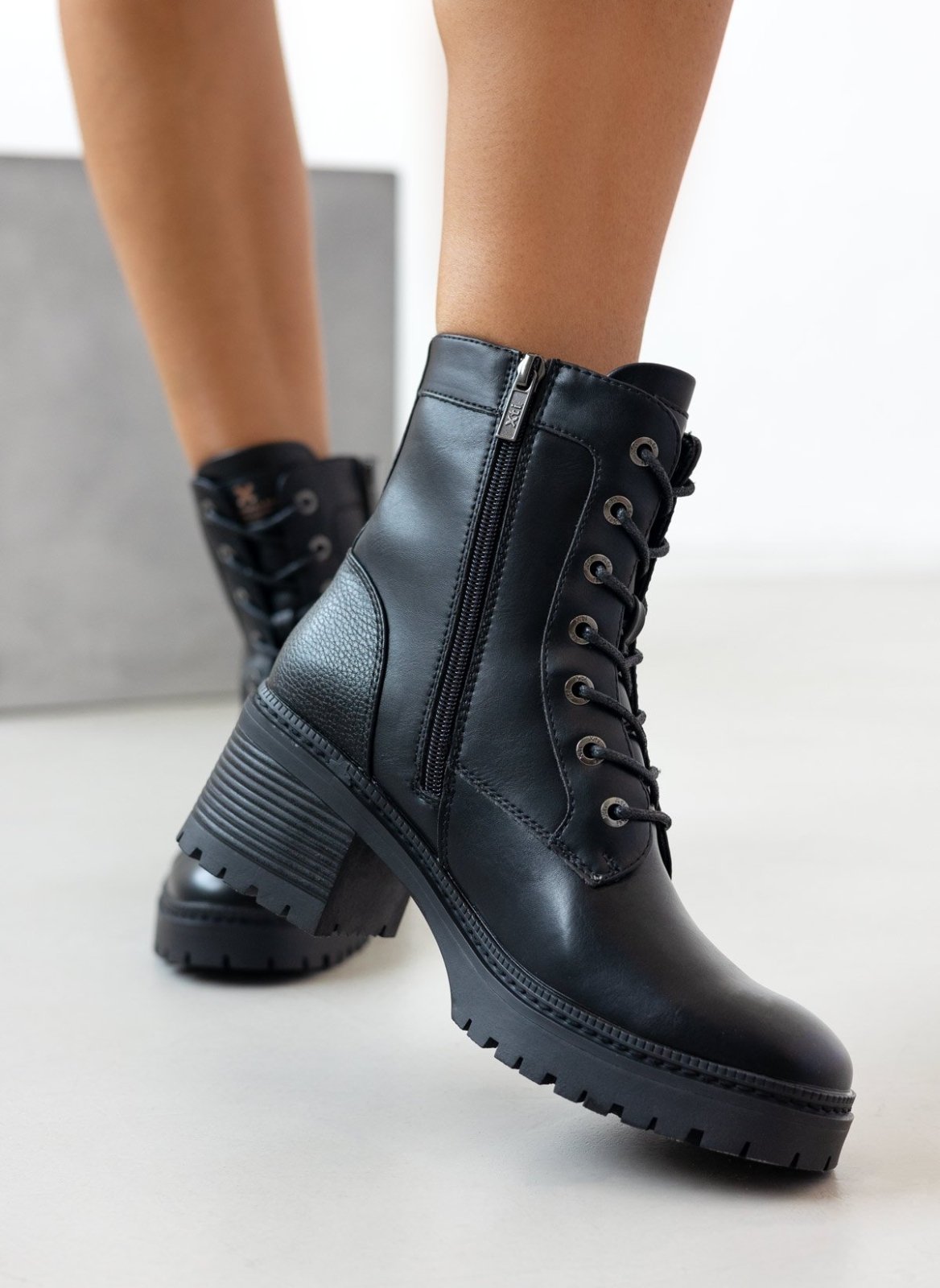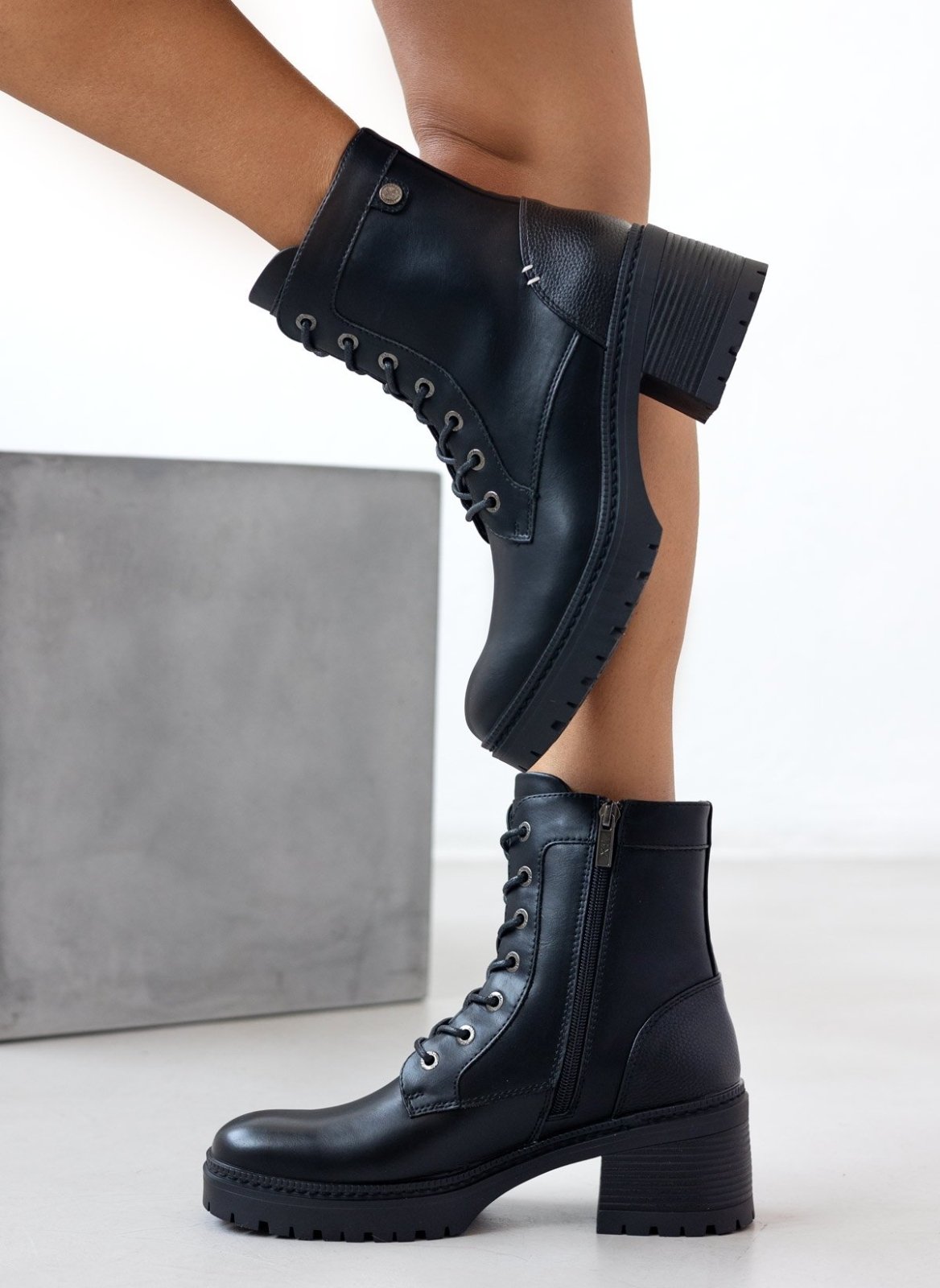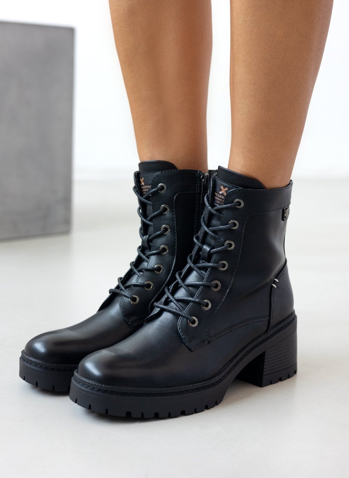 Αρβυλάκια με τακούνι Xti. κορδόνια και φερμουάρ στο εσωτερικό τους. Κρεπ σόλα. Τακούνι με ξύλινο εφε. Comfort μαλακός πάτος με memory foam. Εγκρίθηκε η Peta Vegan.