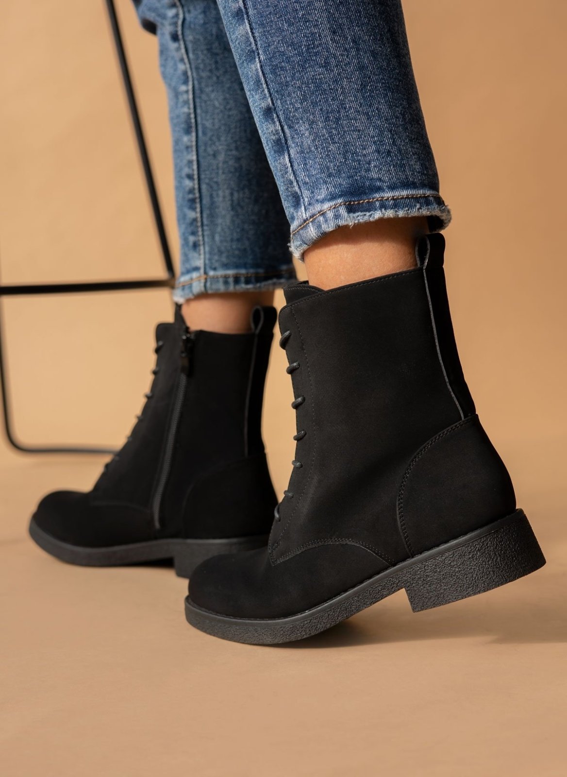 Μπότες με κρεπ σόλα - Μαύρο