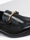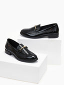 Μοκασίνια λουστρίνι με μεταλλική λεπτομέρεια Ragazza.Έχουν εξωτερικές ραφές στο επάνω μέρος. Η Ελληνική εταιρεία Ragazza ειδικεύεται στα ανατομικά (comfort) παπούτσια τα οποία διαθέτουν την κορυφαία τεχνολογία Dryflex στο εσωτερικό τους, που προσφέρει απόλυτη διαπνοή, απορρόφηση κραδασμών και προστασία από οσμές. Είναι η καλύτερη επιλογή για ατελείωτες ώρες και άνεση.