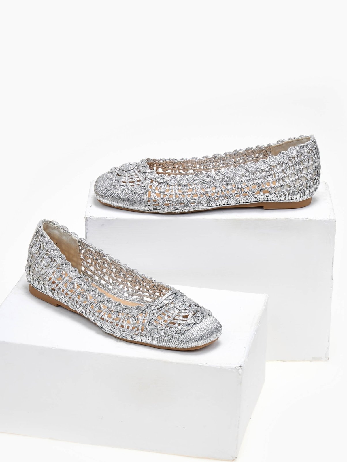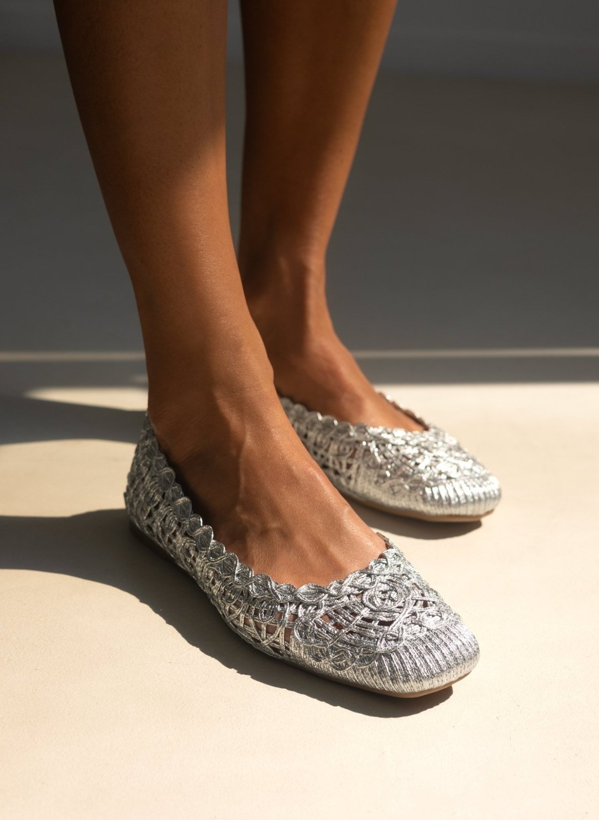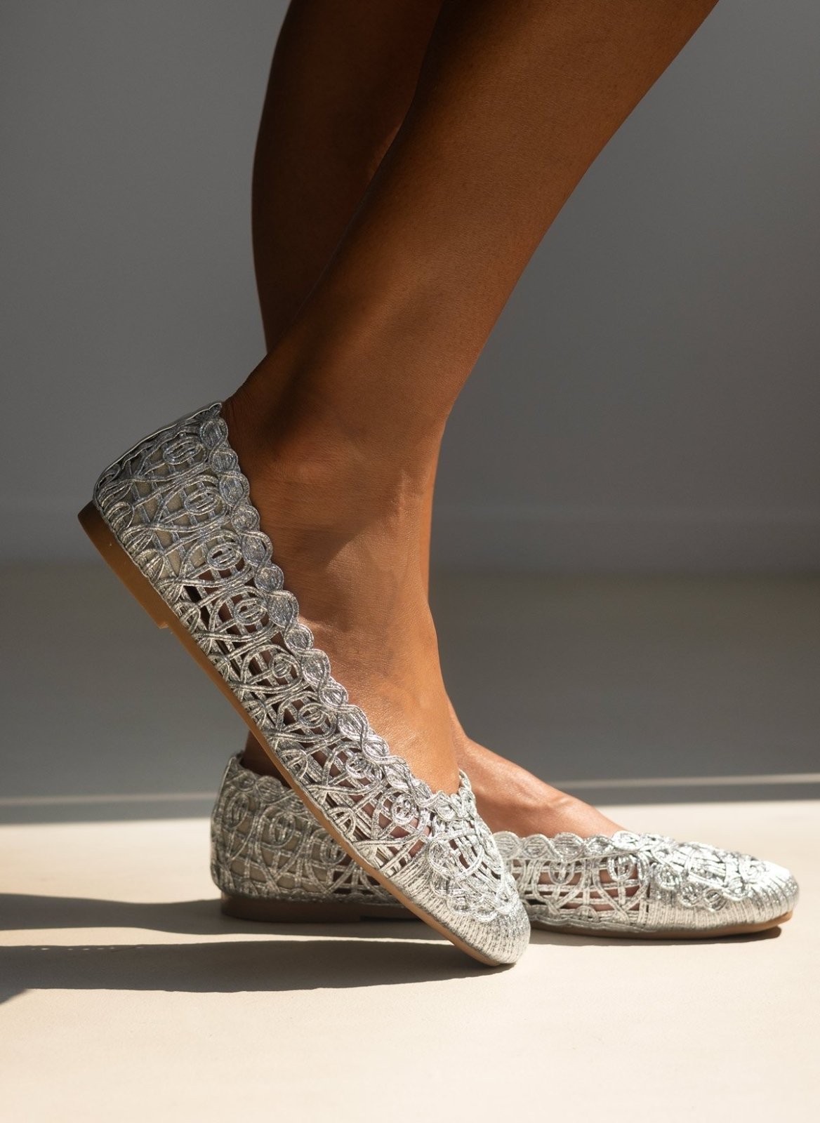 Μπαλαρίνες από ψάθα με πλεκτό σχέδιο - Ασημί