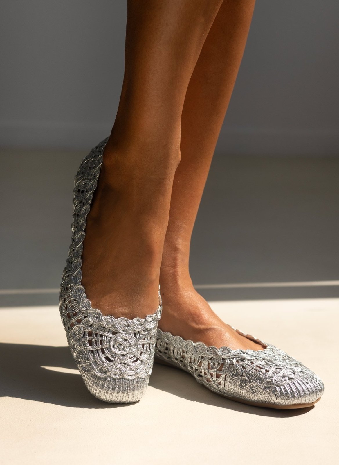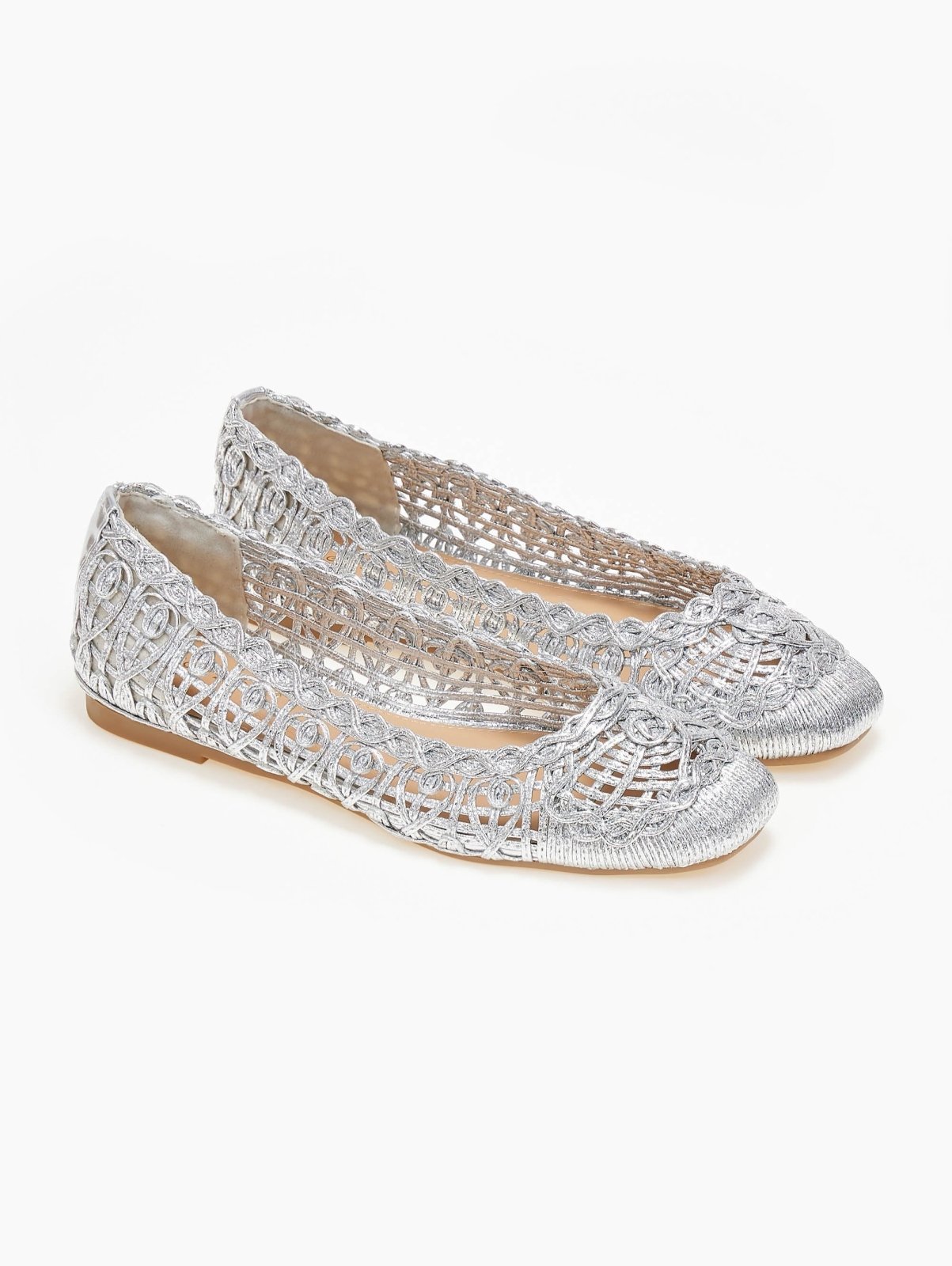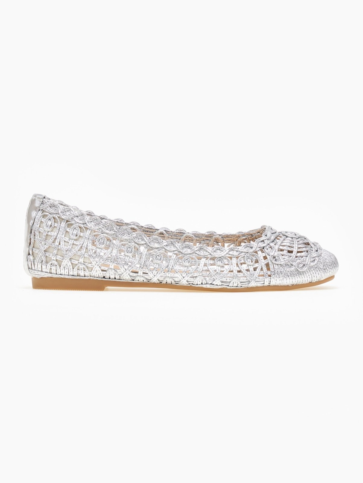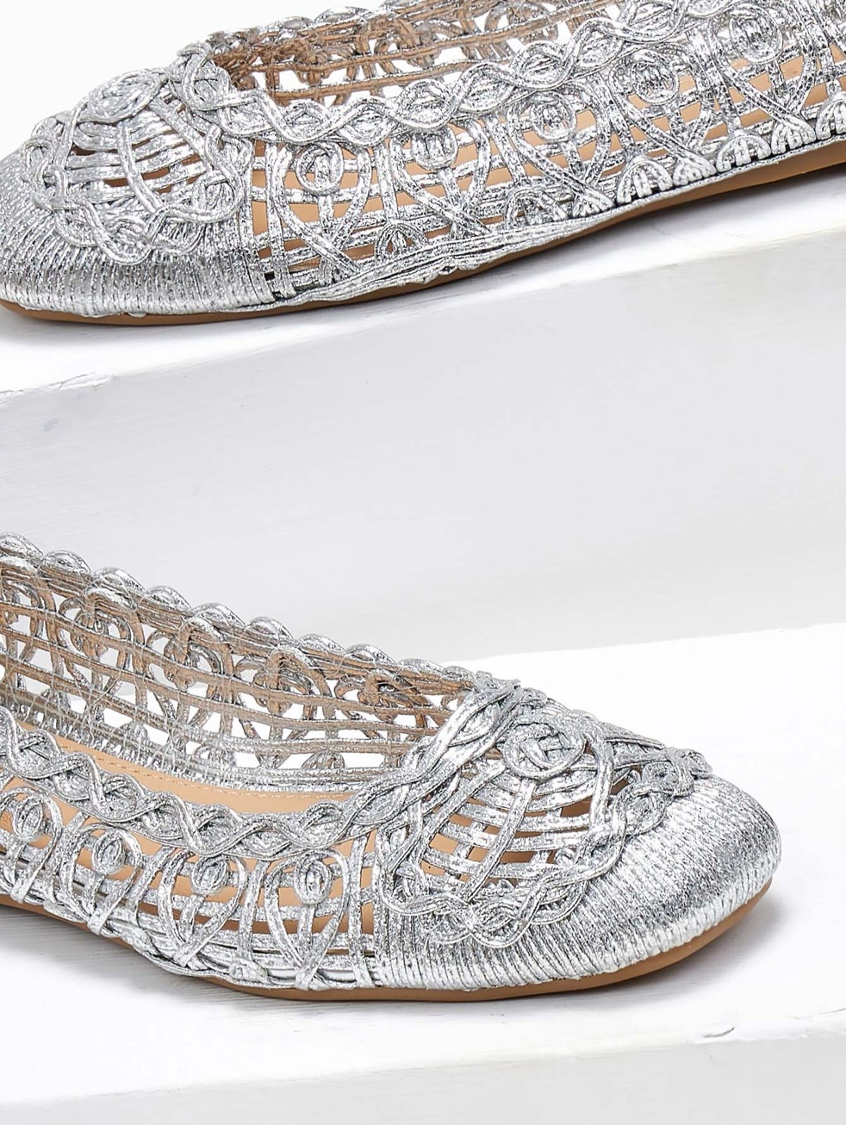 Μπαλαρίνες από ψάθα με πλεκτό σχέδιο - Ασημί
