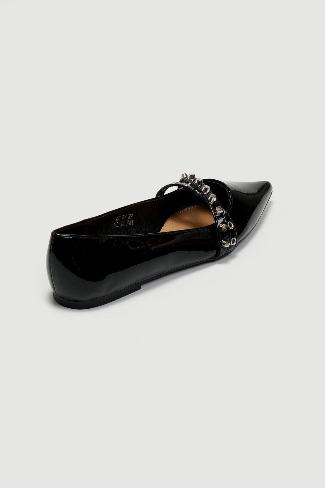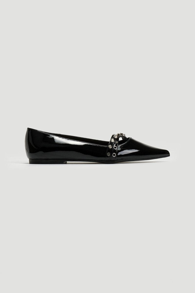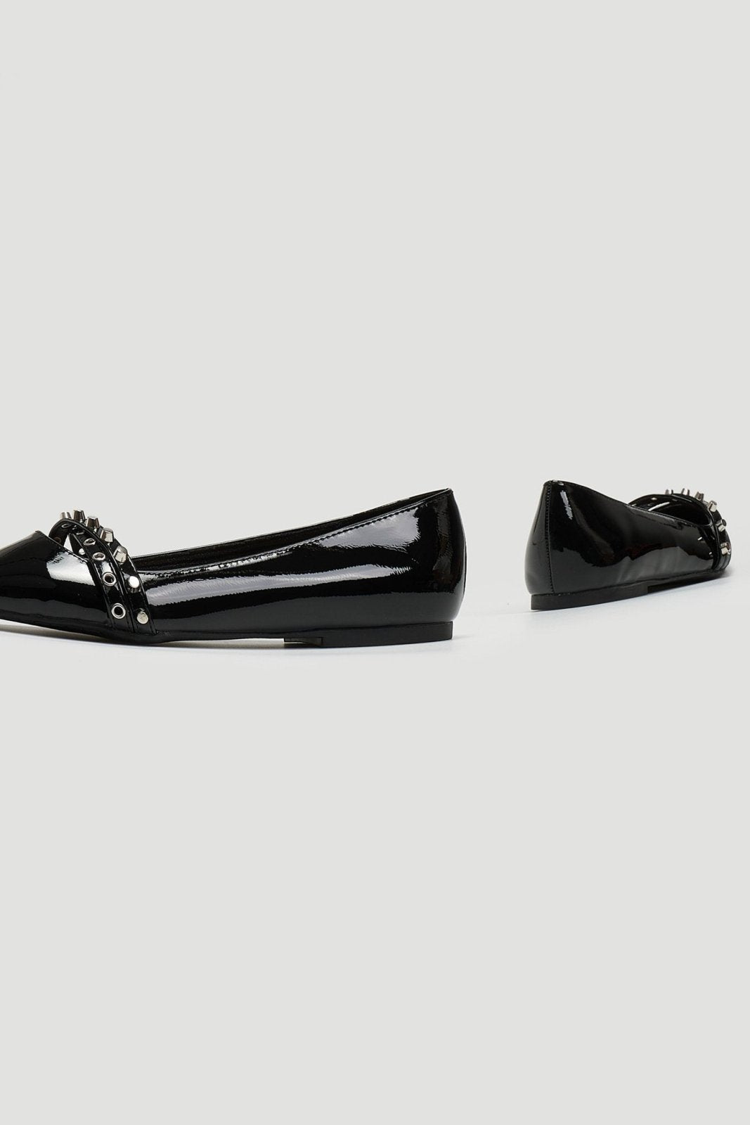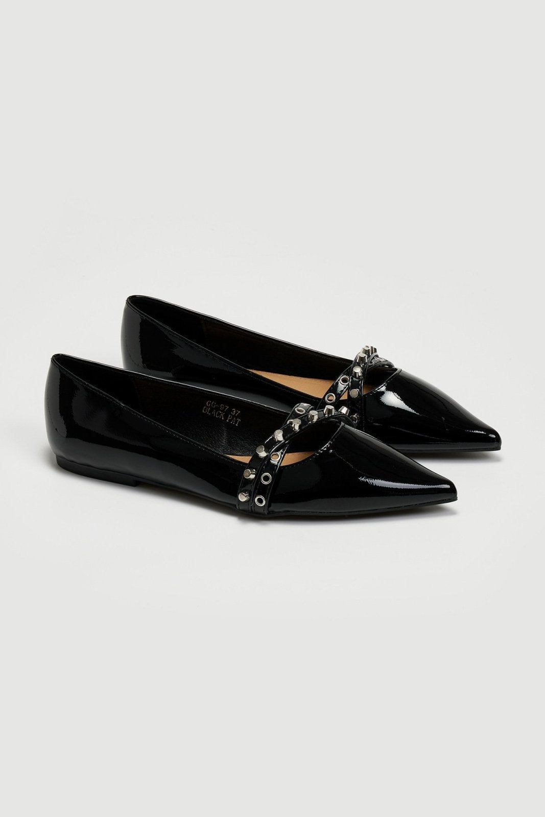 Μπαλαρίνες λουστρίνι μυτερές ERYNN. Crossover λουράκια με μεταλλικά τρουκς στα δάκτυλα.