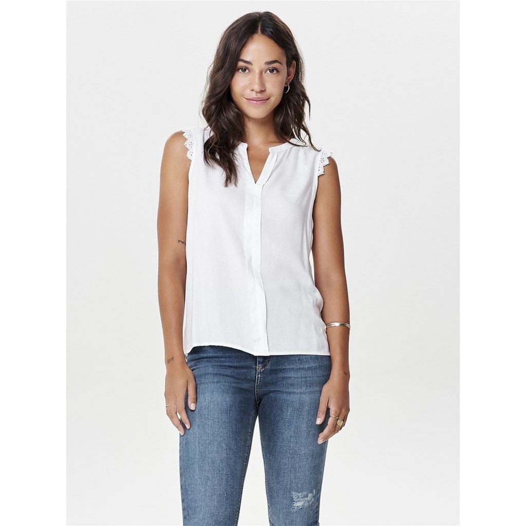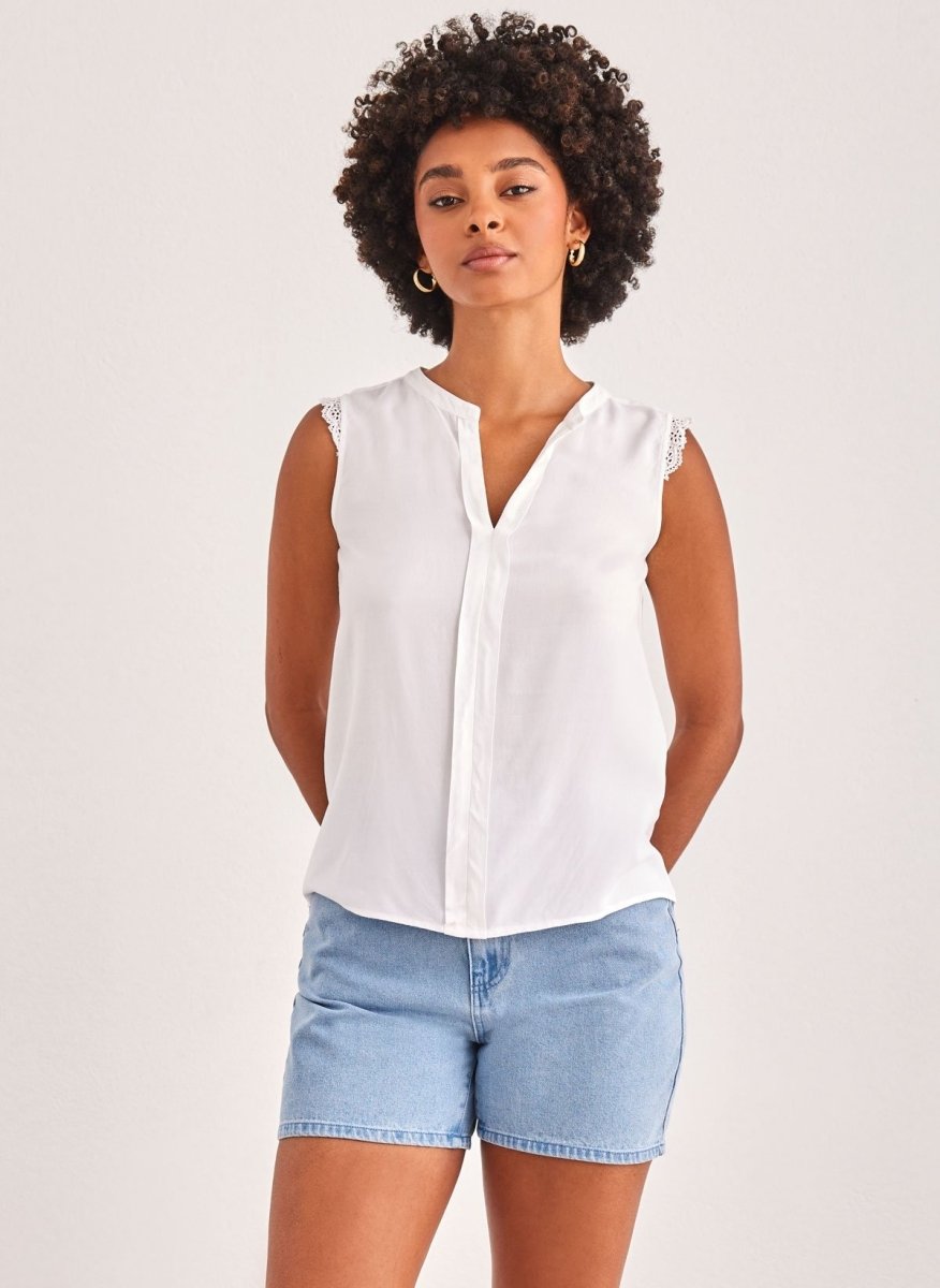 Μπλούζα αμάνικη με δαντέλα ΜΟΝΟ 15157656 - Λευκό