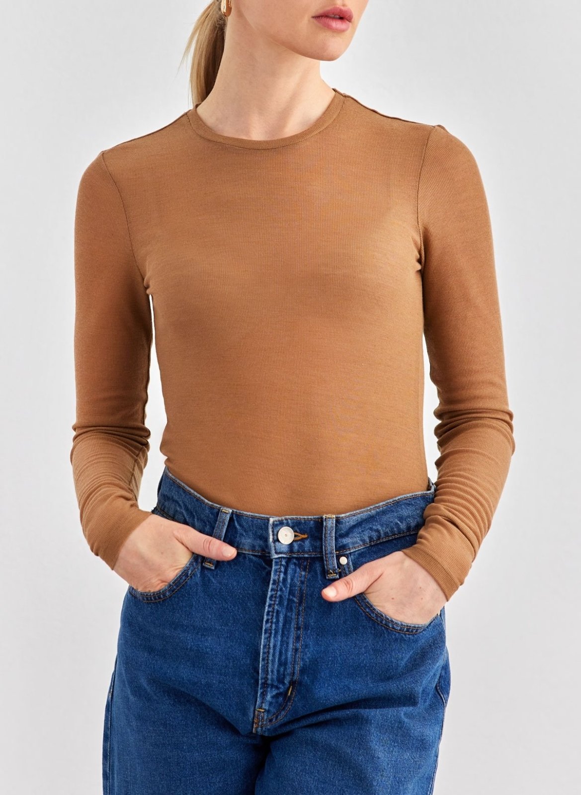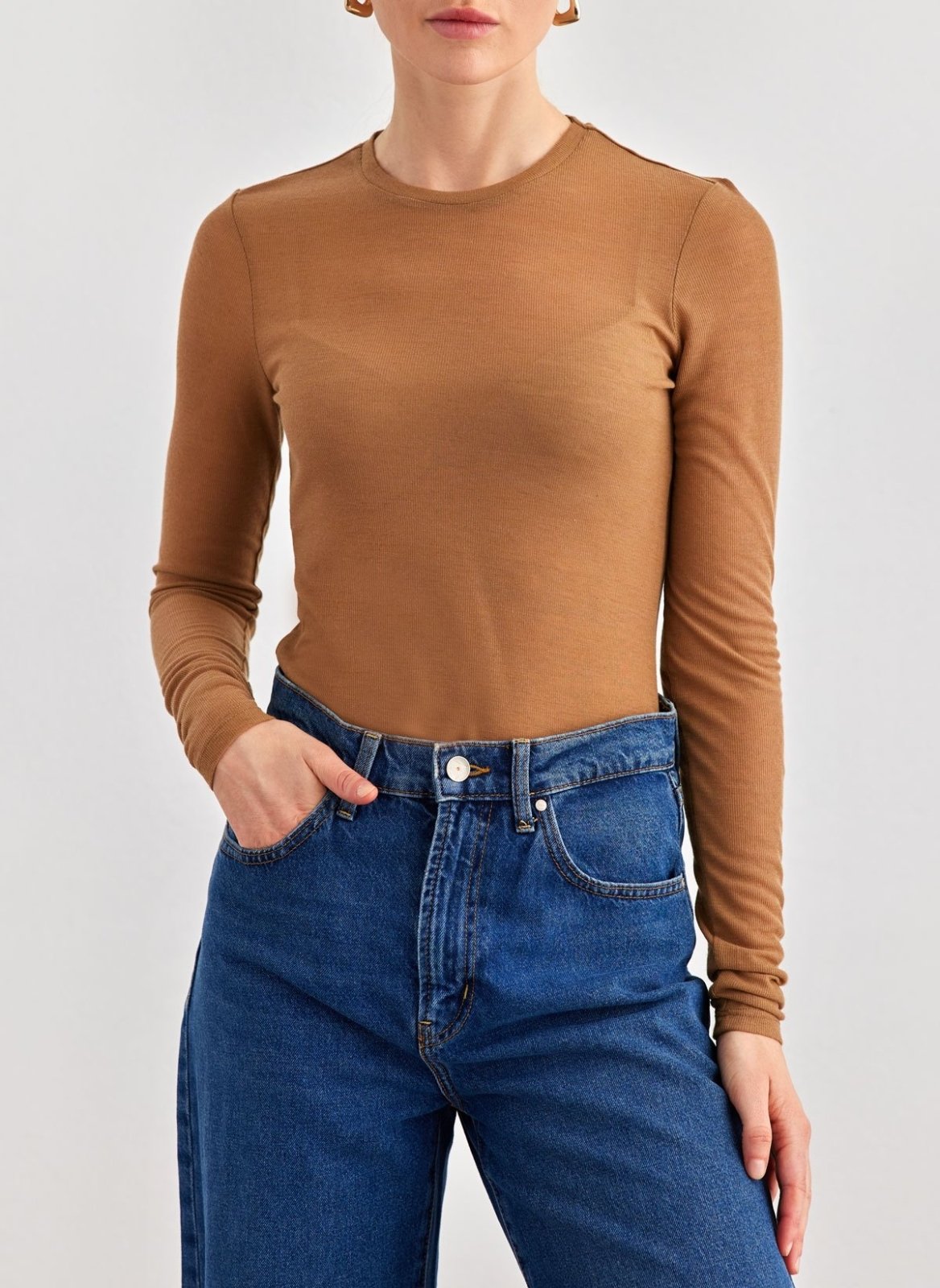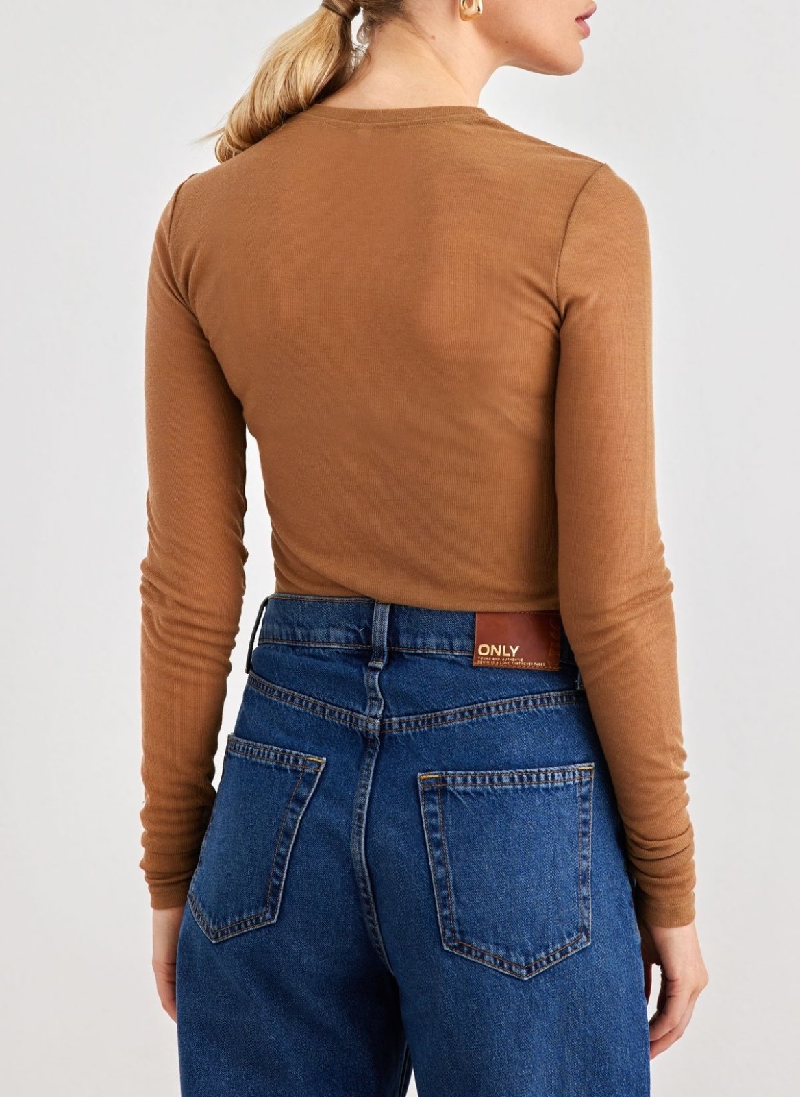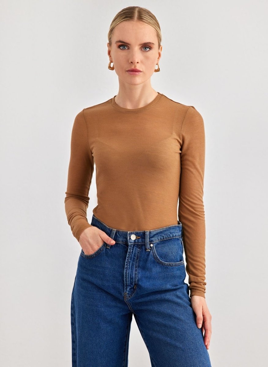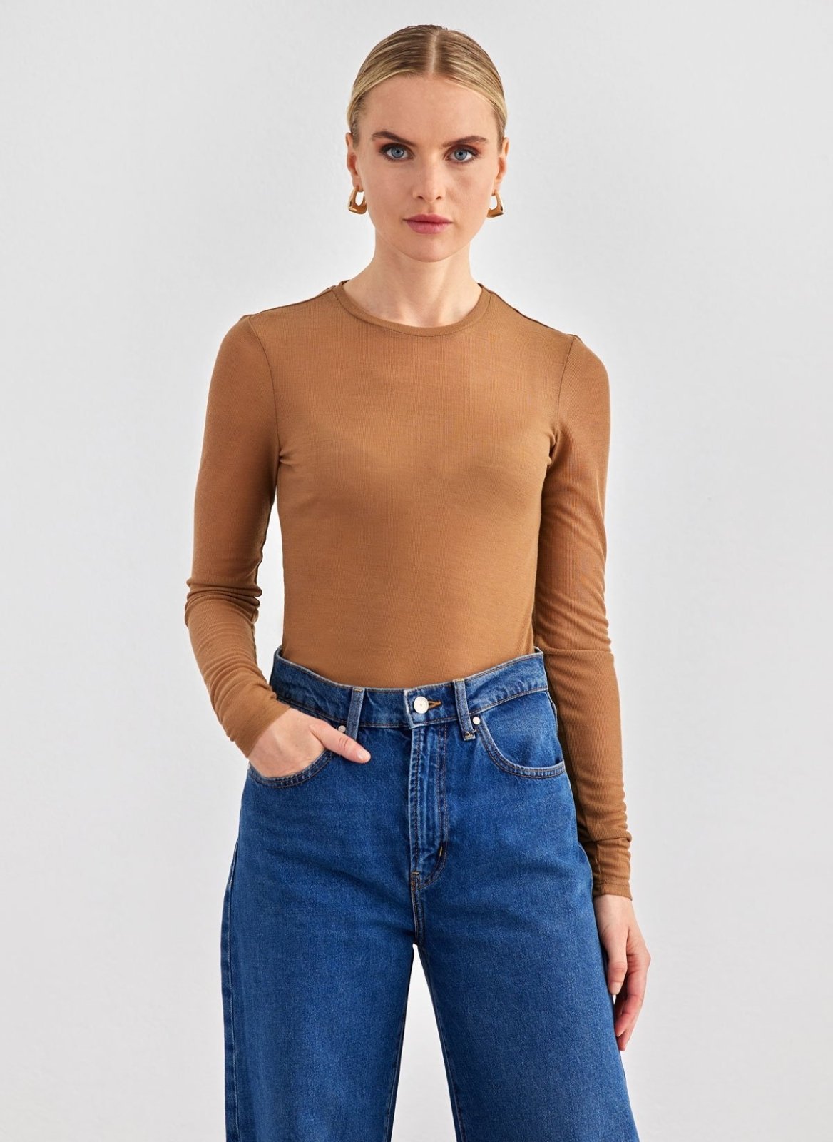 Μπλούζα ημιδιάφανη με μακριά μανίκια Μόνο. Στρογγυλή λαιμόκοψη. Ίσια γραμμή.