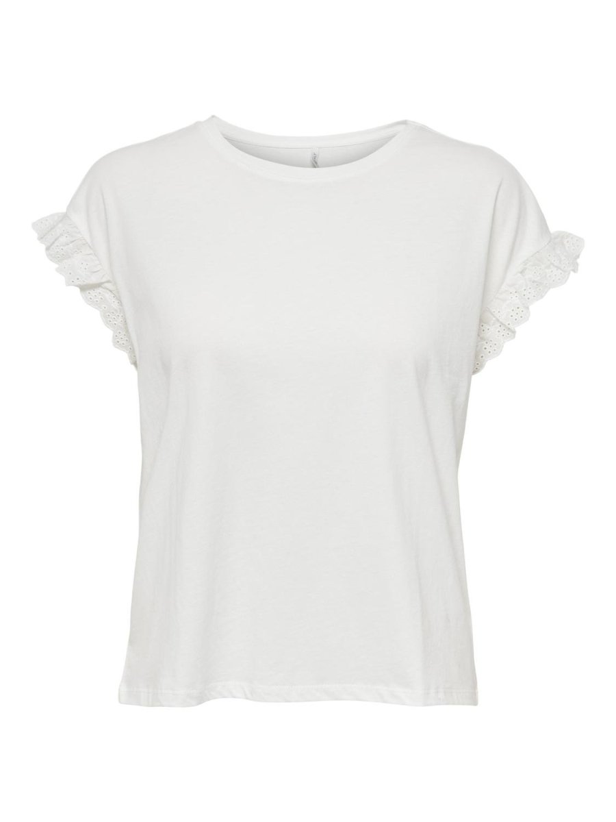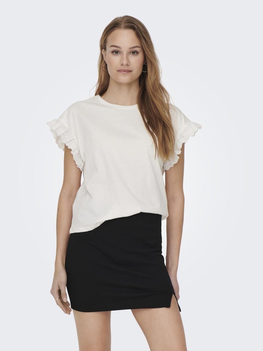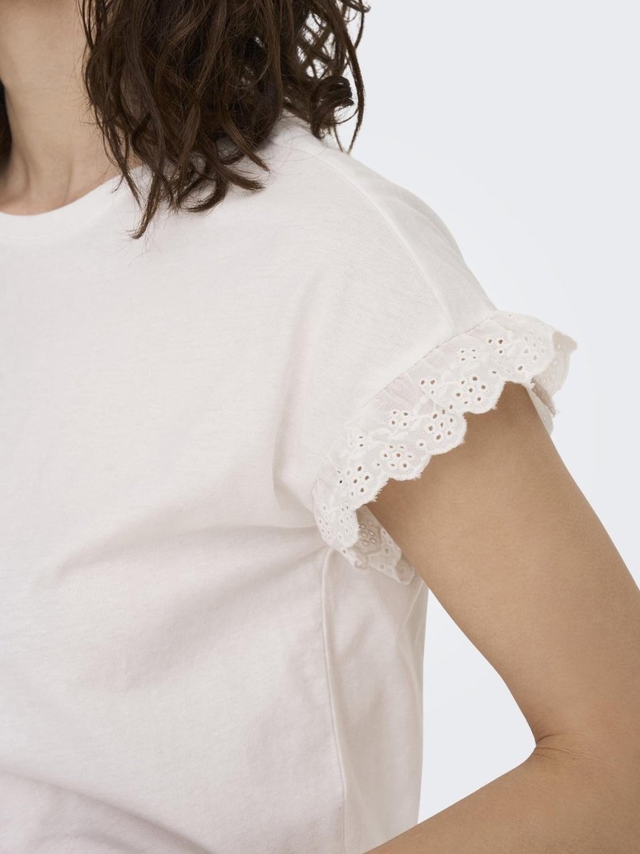 Μπλούζα βαμβακερή με στρογγυλή λαιμόκοψη ONLY. Λεπτομέρεια κιπούρ δαντέλα στα μανίκια.