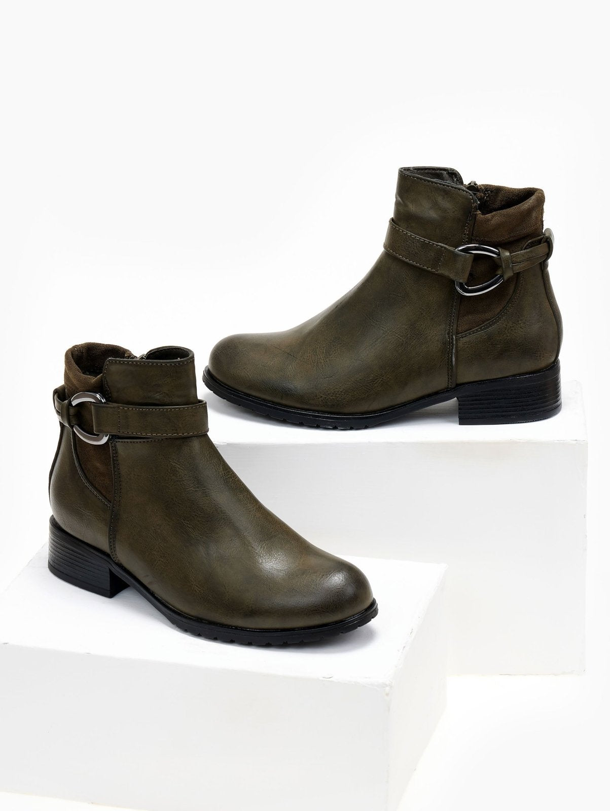 Μποτάκια αστραγάλου με ζωνάκι Erynn - Λαδί