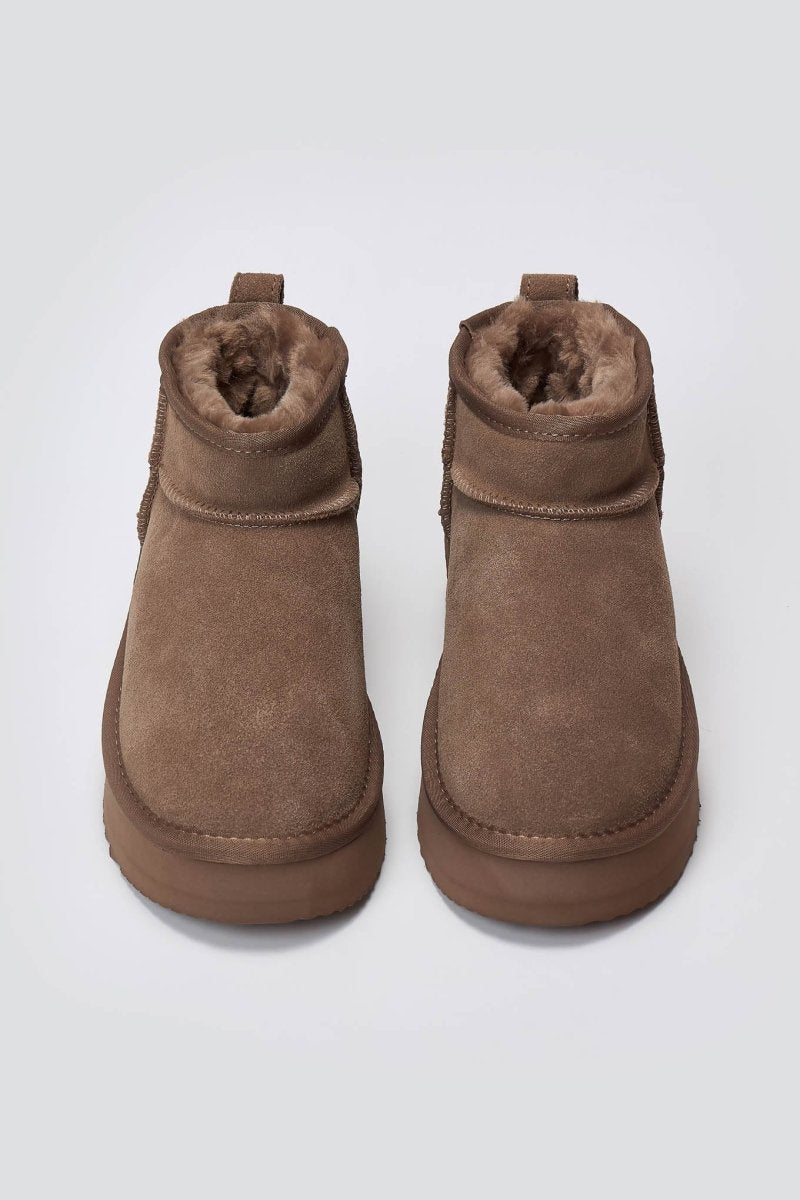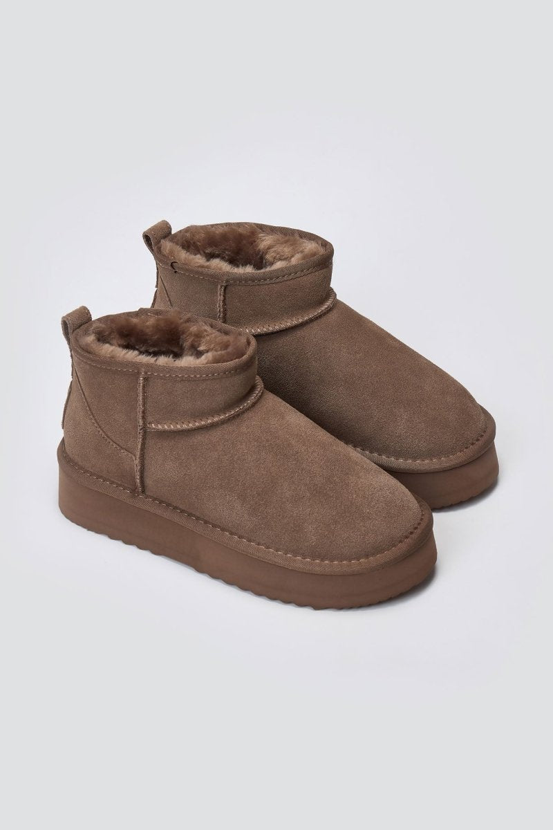 Καστόρινα μποτάκια αστραγάλου με συνθετική γούνα KELARA - Ταμπά Suede