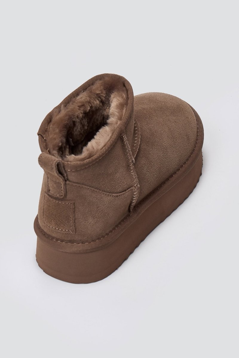 Μποτάκια αστραγάλου από γνήσιο δέρμα καστόρι KELARA. Επένδυση με συνθετική γούνα. Ελαφριά σόλα πλατφόρμα.